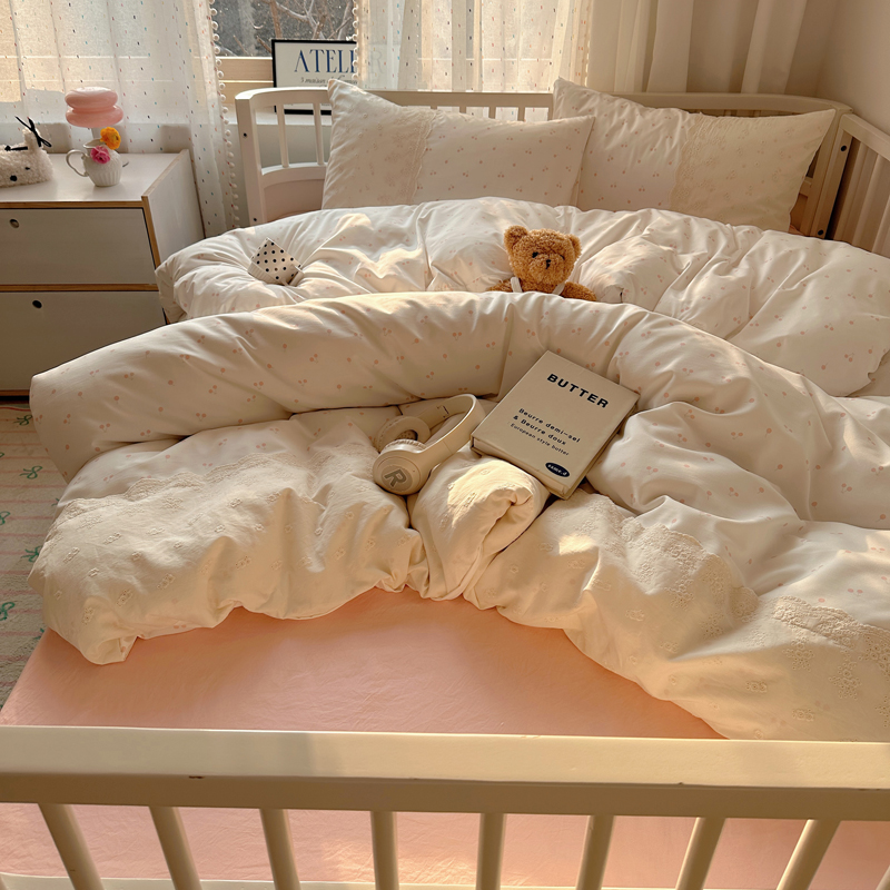 (总)顾里家纺 2026新款ins韩风刺绣云朵棉四件套,ins玫瑰,白桃少女,粉兔兔,蓝樱桃,圣诞树,线条狗,小桔梗,小蘑菇,小企鹅