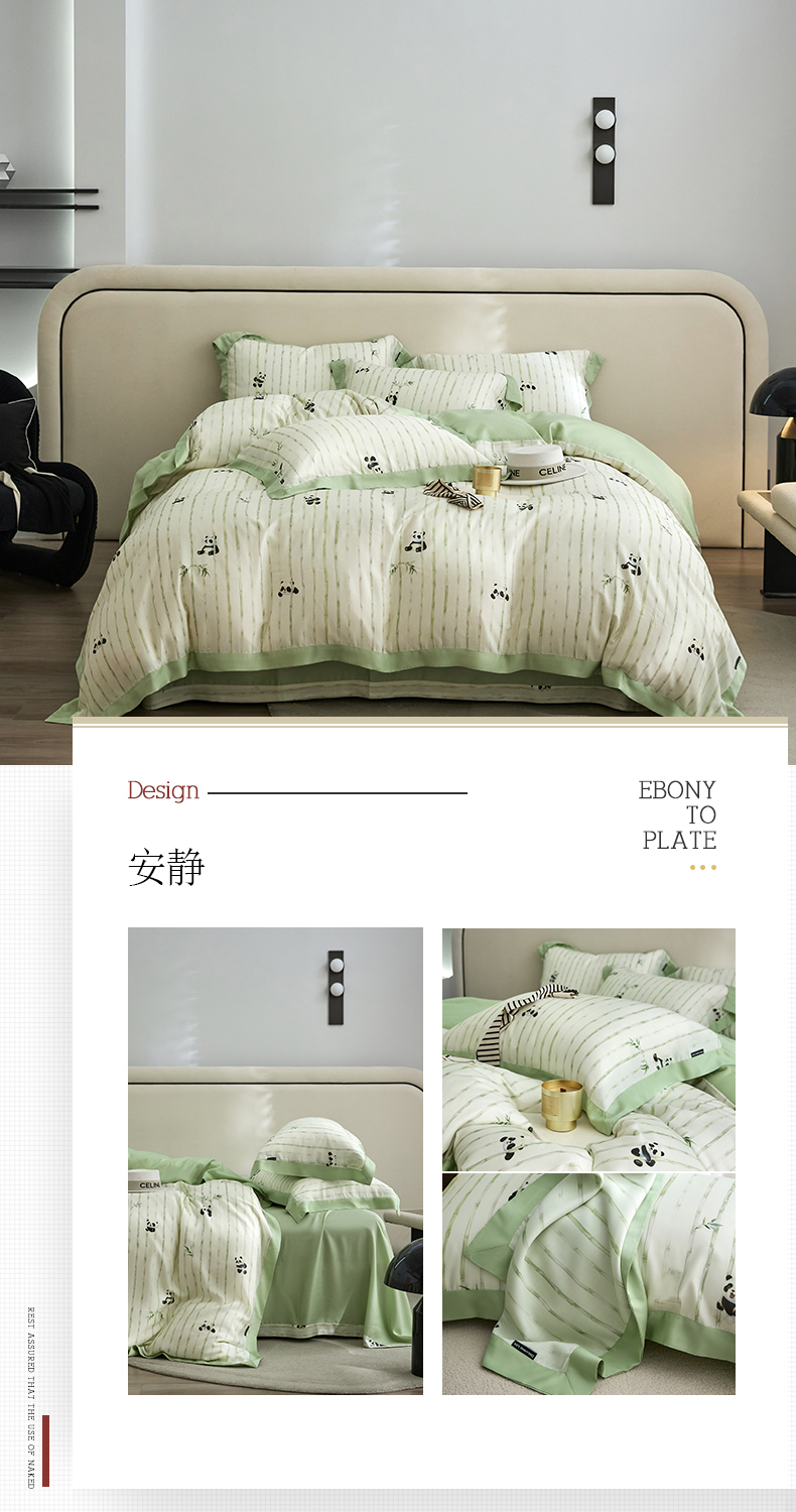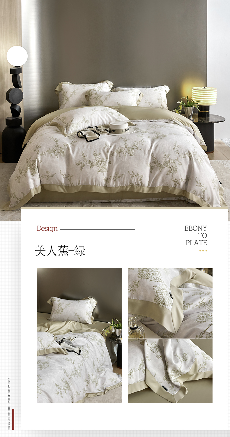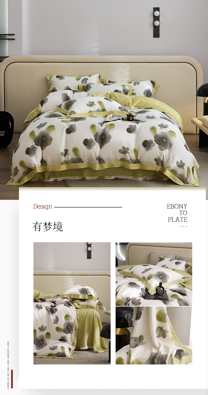 (总)薏思家纺 2025新款全棉100支数码印花生态磨毛轻奢款四件套-花边系列,橘子海,向云端,寻野-绿