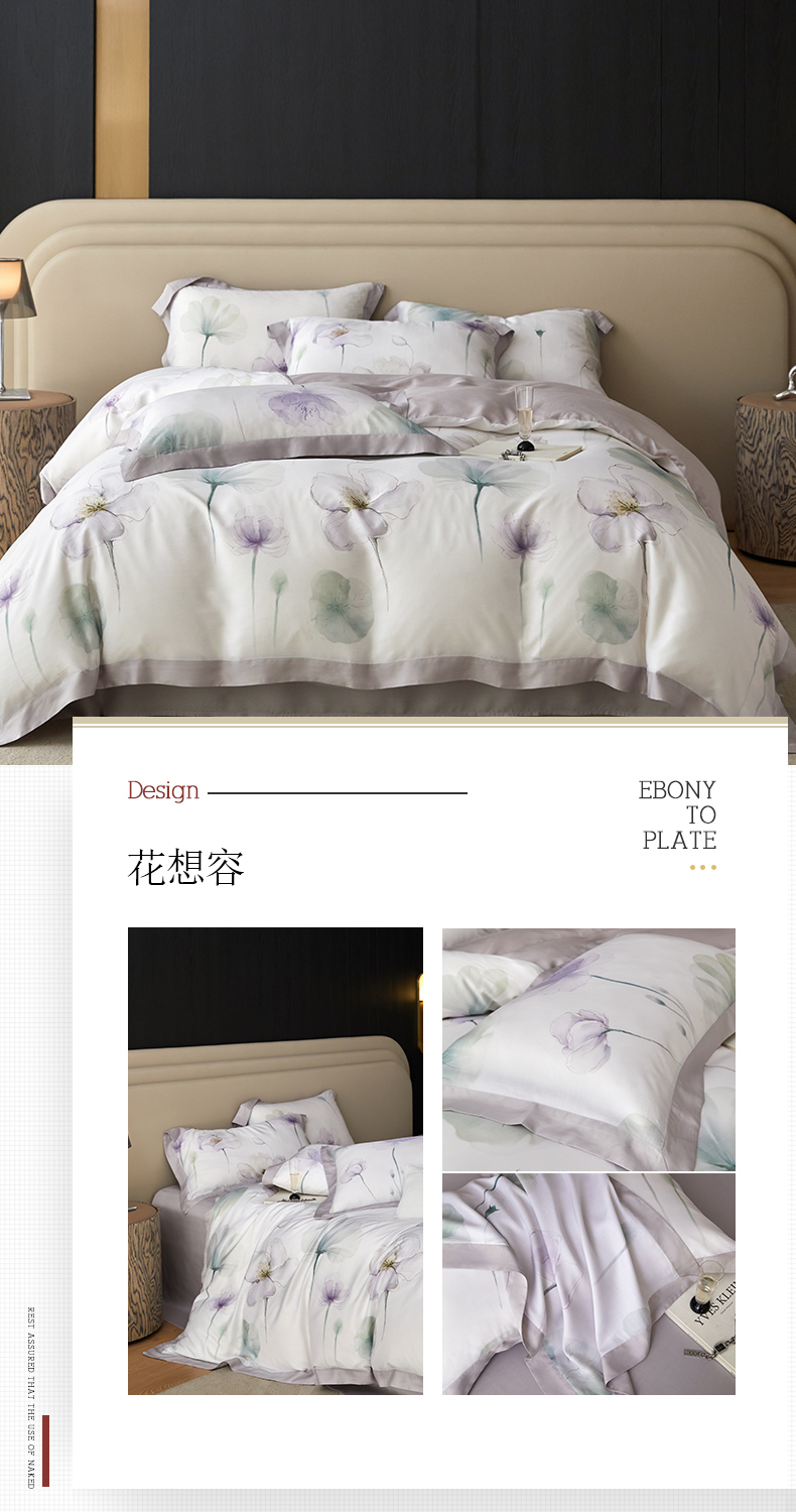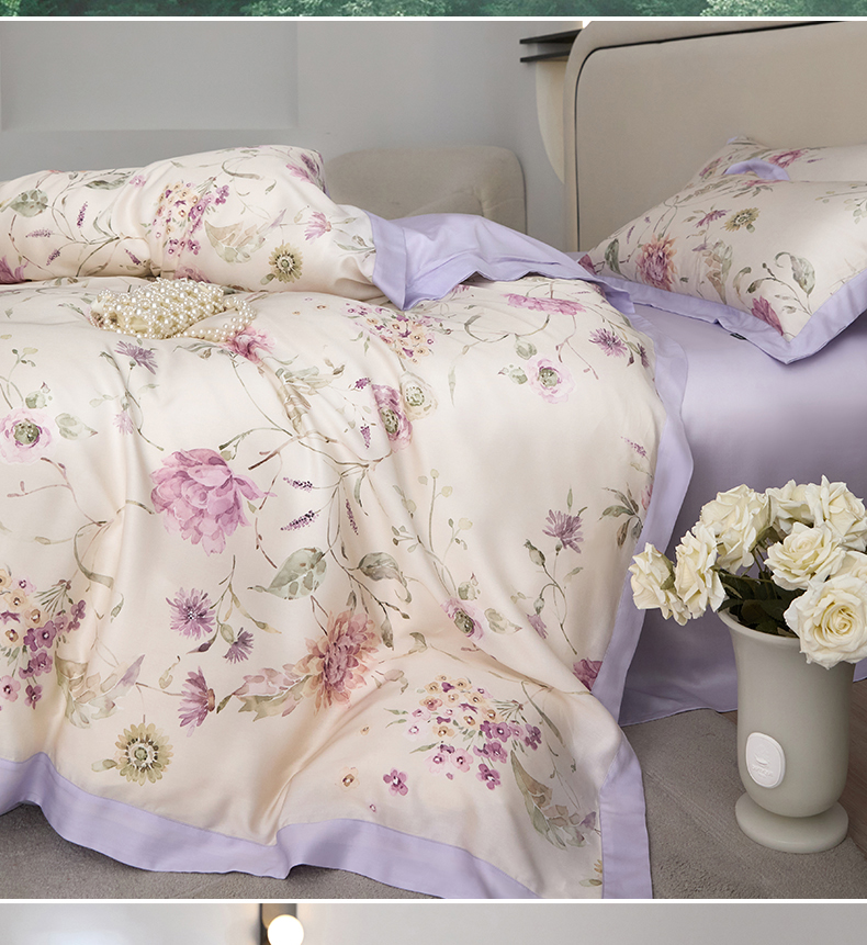 (总)薏思家纺 2025新款全棉100支数码印花生态磨毛轻奢款四件套-珍珠纽扣系列,花弄影-青,花弄影-玉,花弄影-紫,紫纱春日