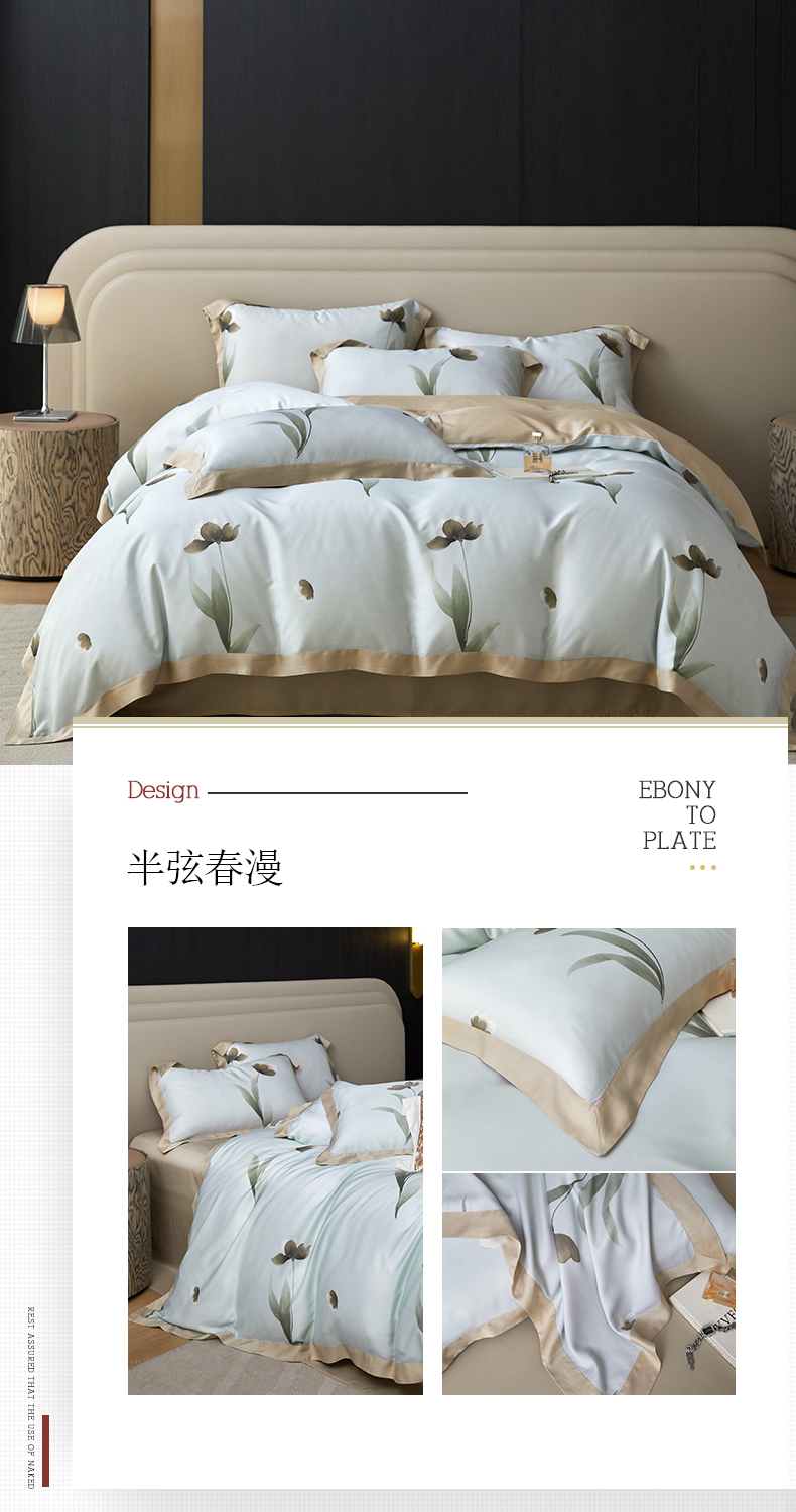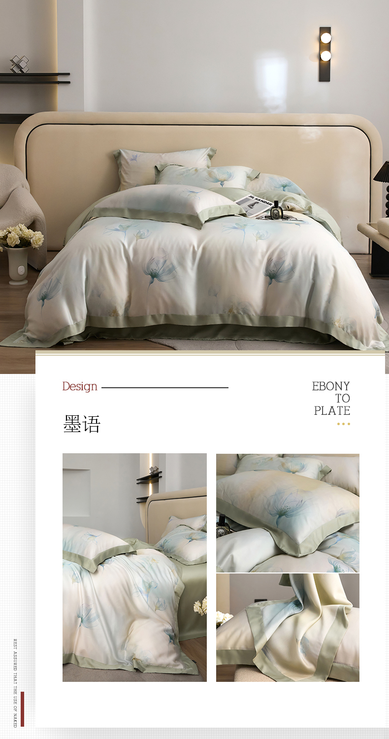 薏思家纺 2025新款50支莱赛尔天丝数码印花夏被+四件套(礼盒包装) 花晨月夕
