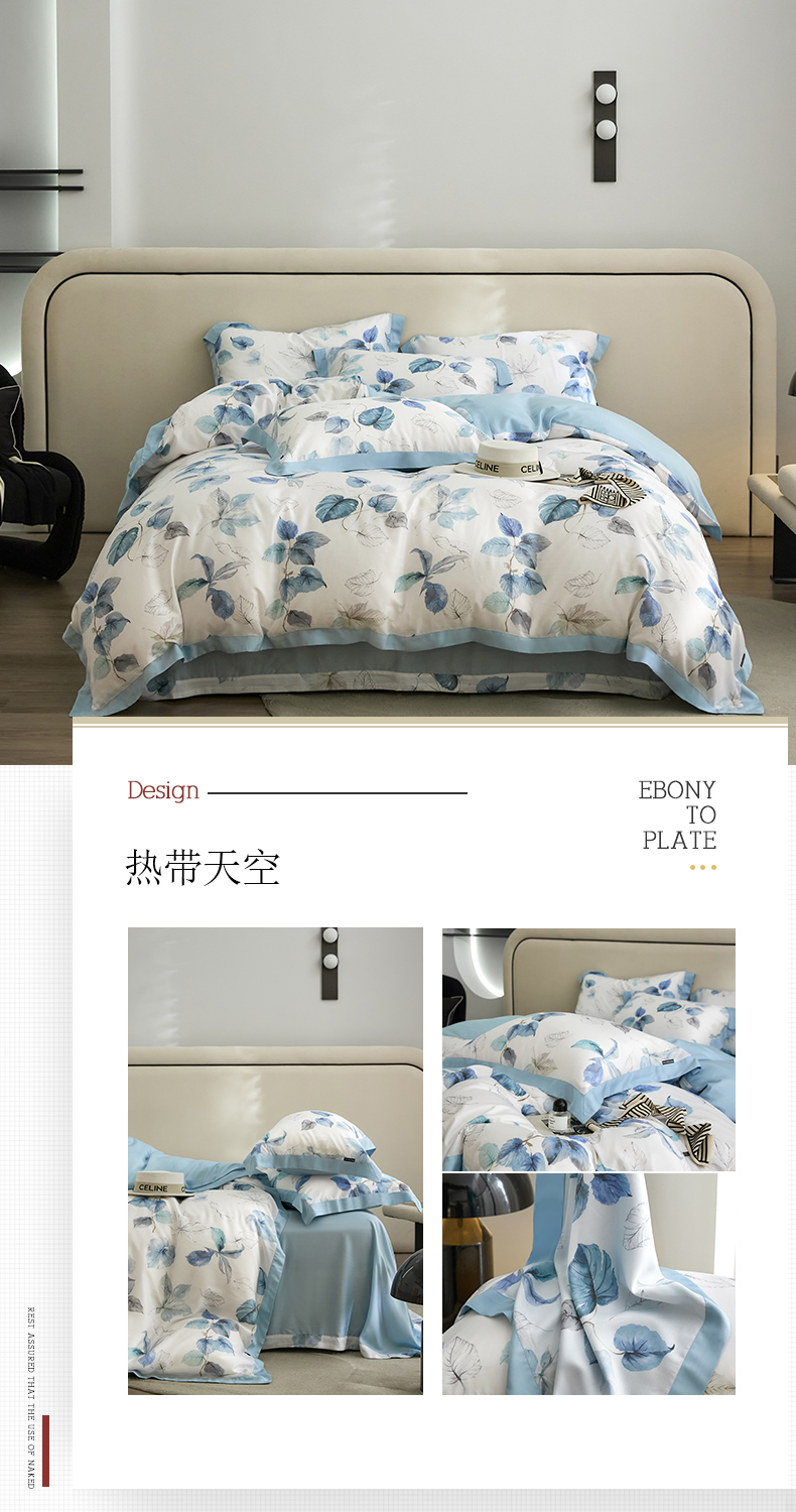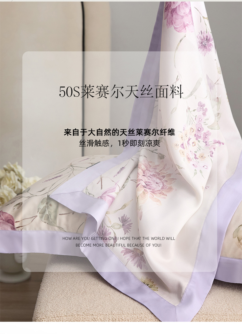 商品名称:薏思家纺 2025新款50支莱赛尔天丝数码印花夏被+四件套(礼盒包装) 花晨月夕