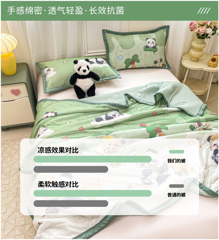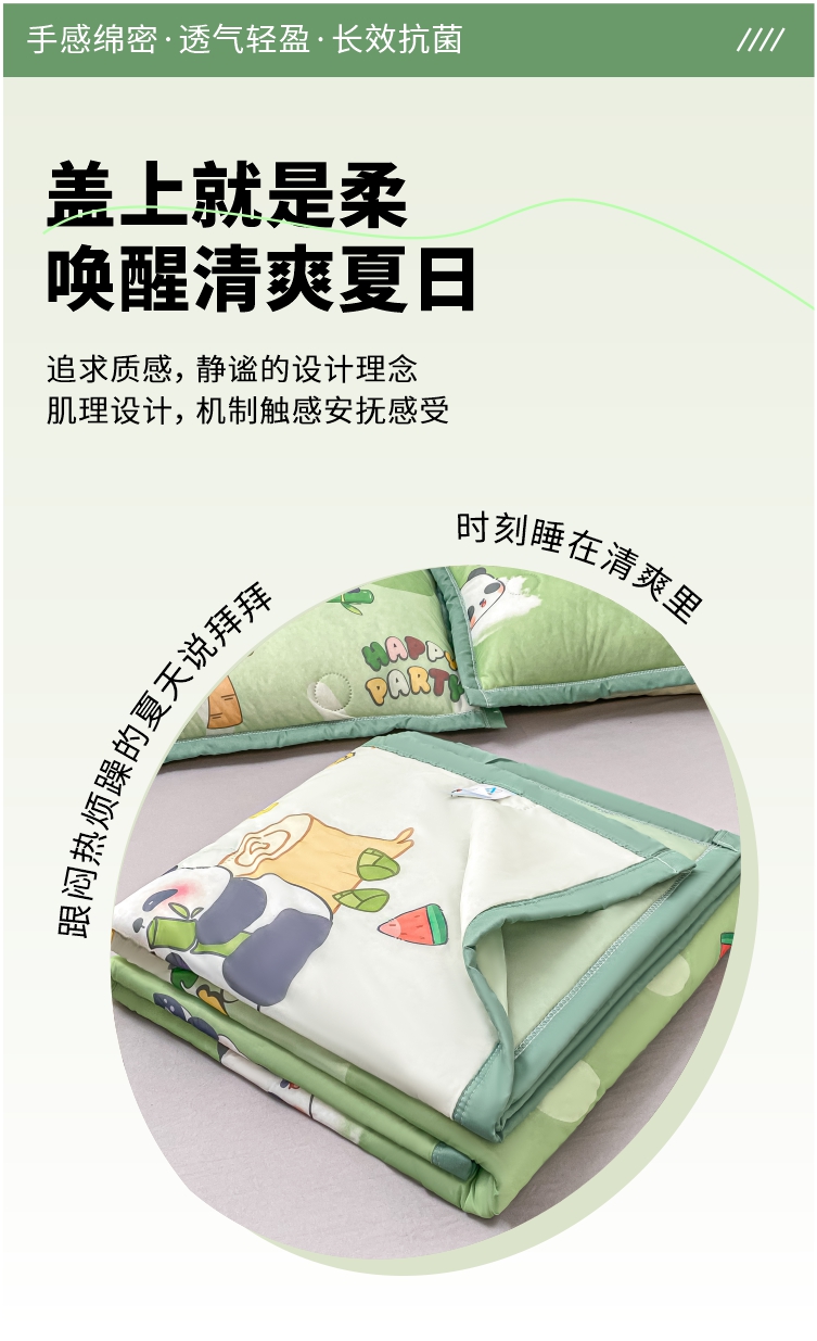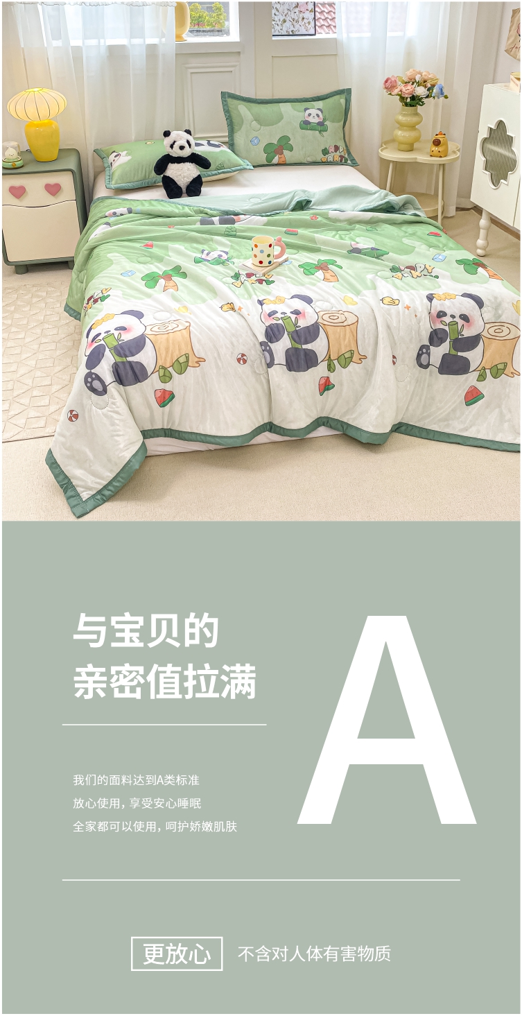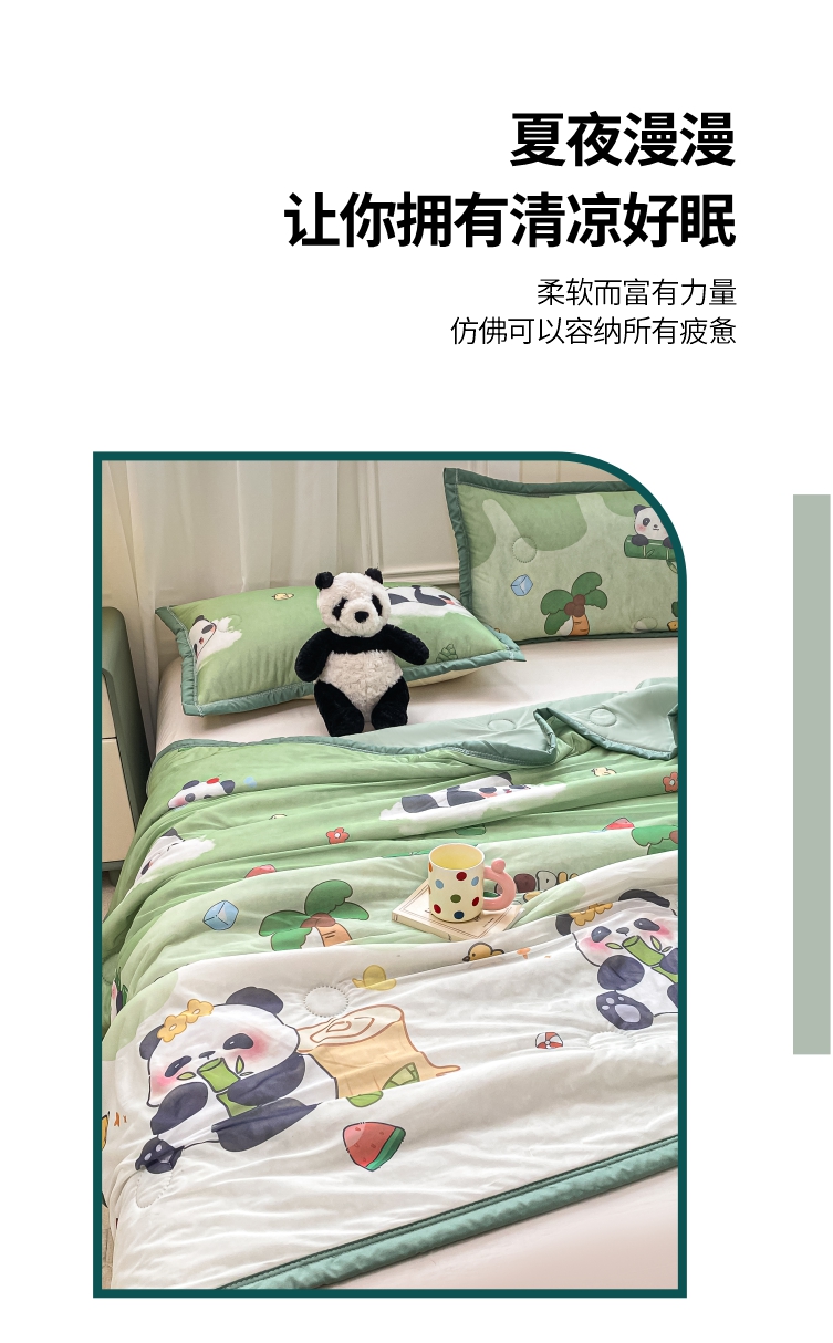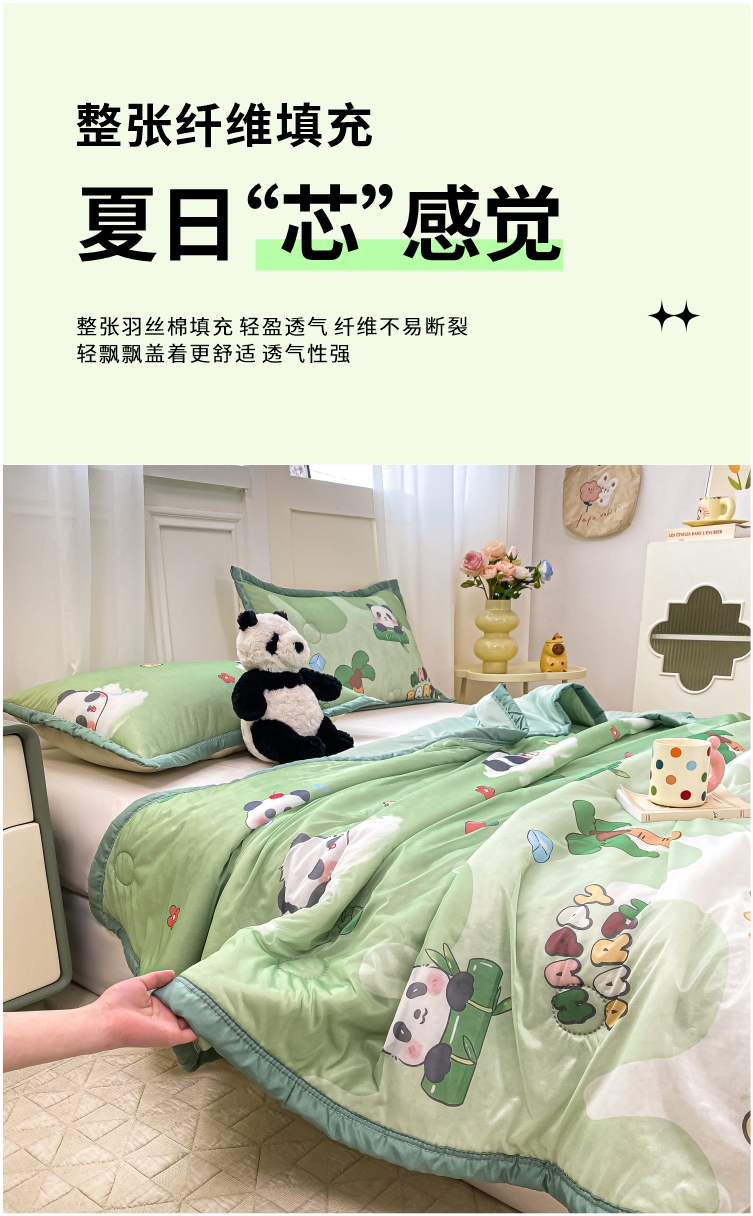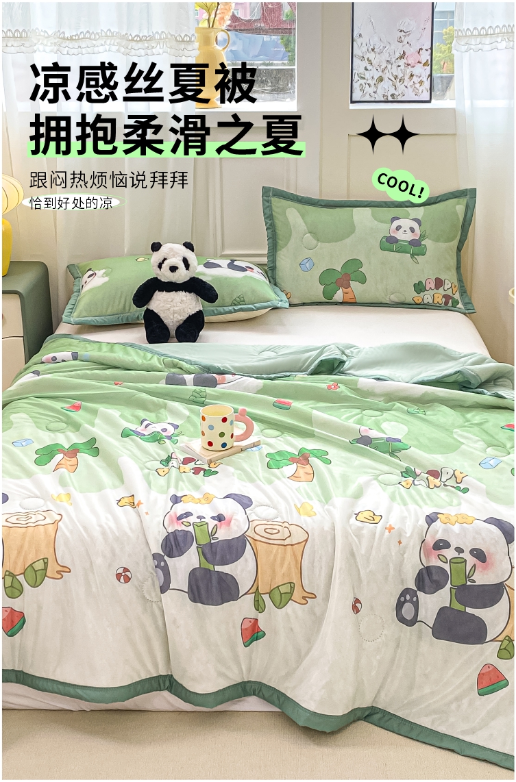 顺顺家纺 2025新款凉感丝印花夏被空调被 萌宝熊猫