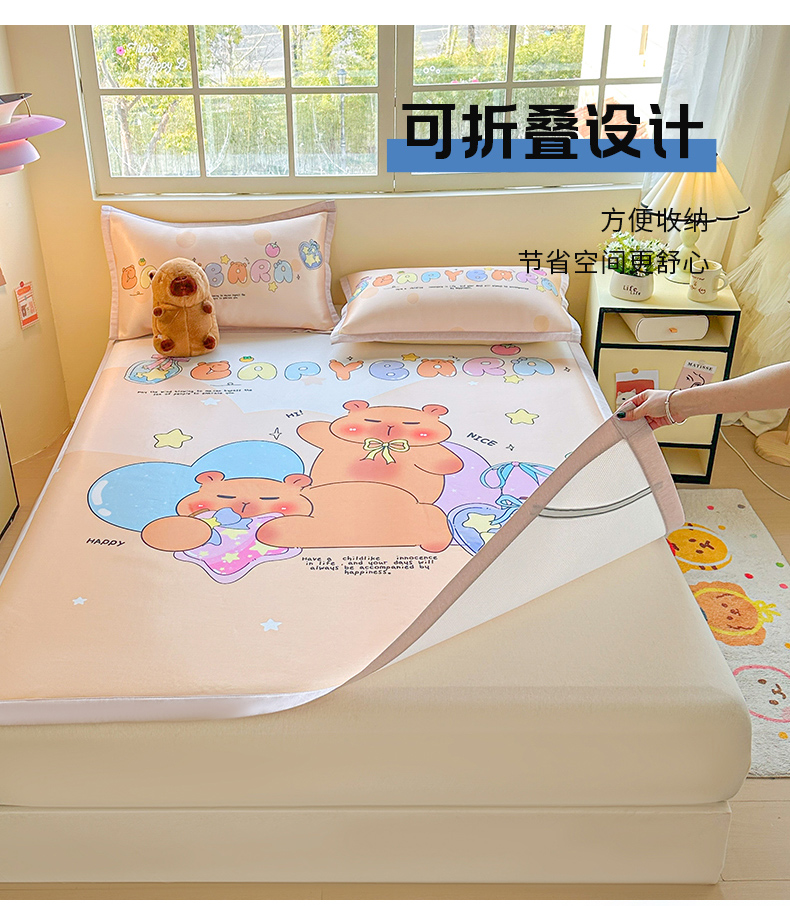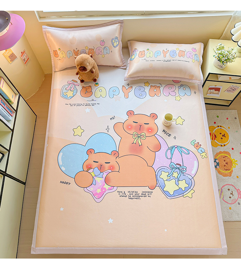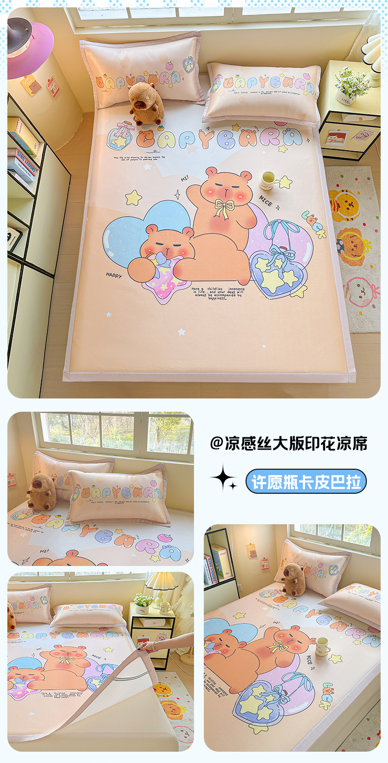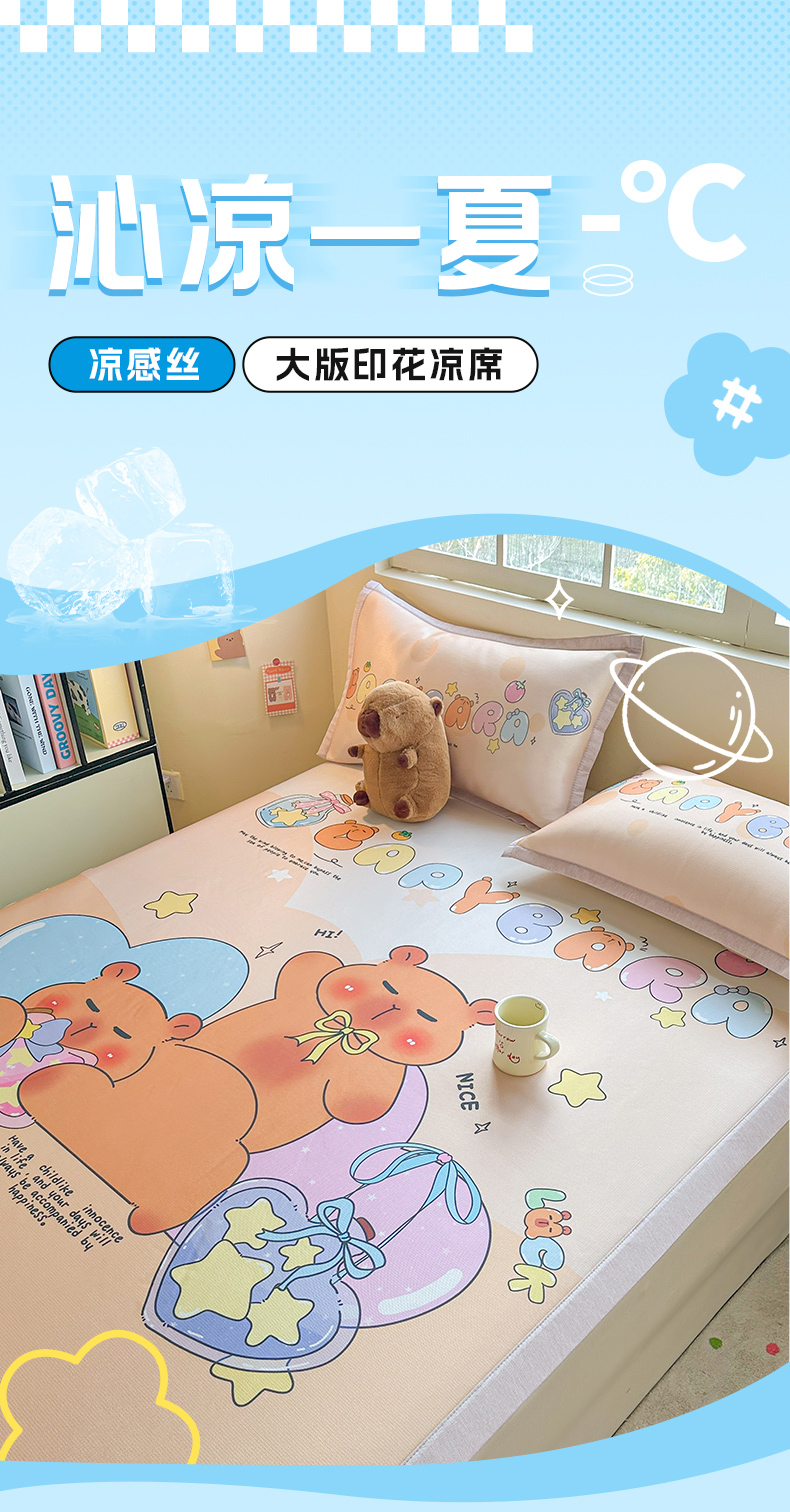 商品名称:博雅 2025新款独家版权A类大版数码印花1200D冰丝凉席 许愿瓶卡皮巴拉