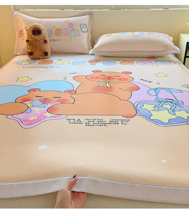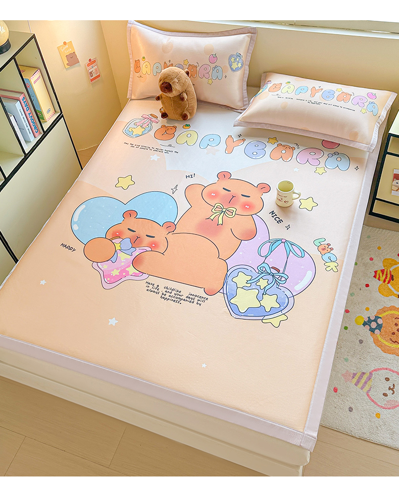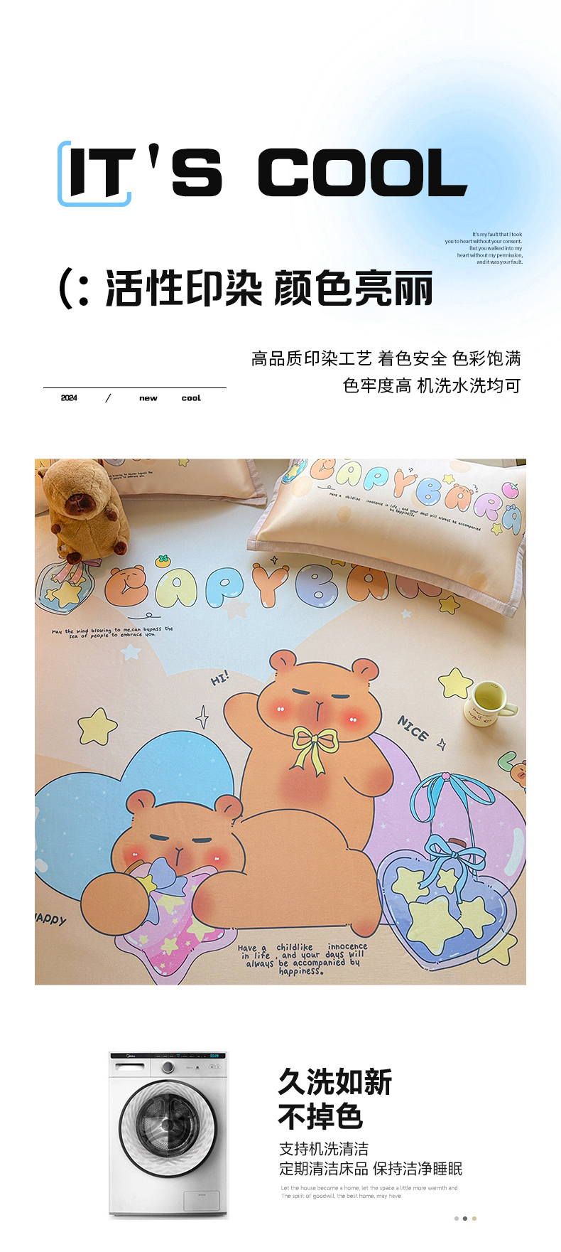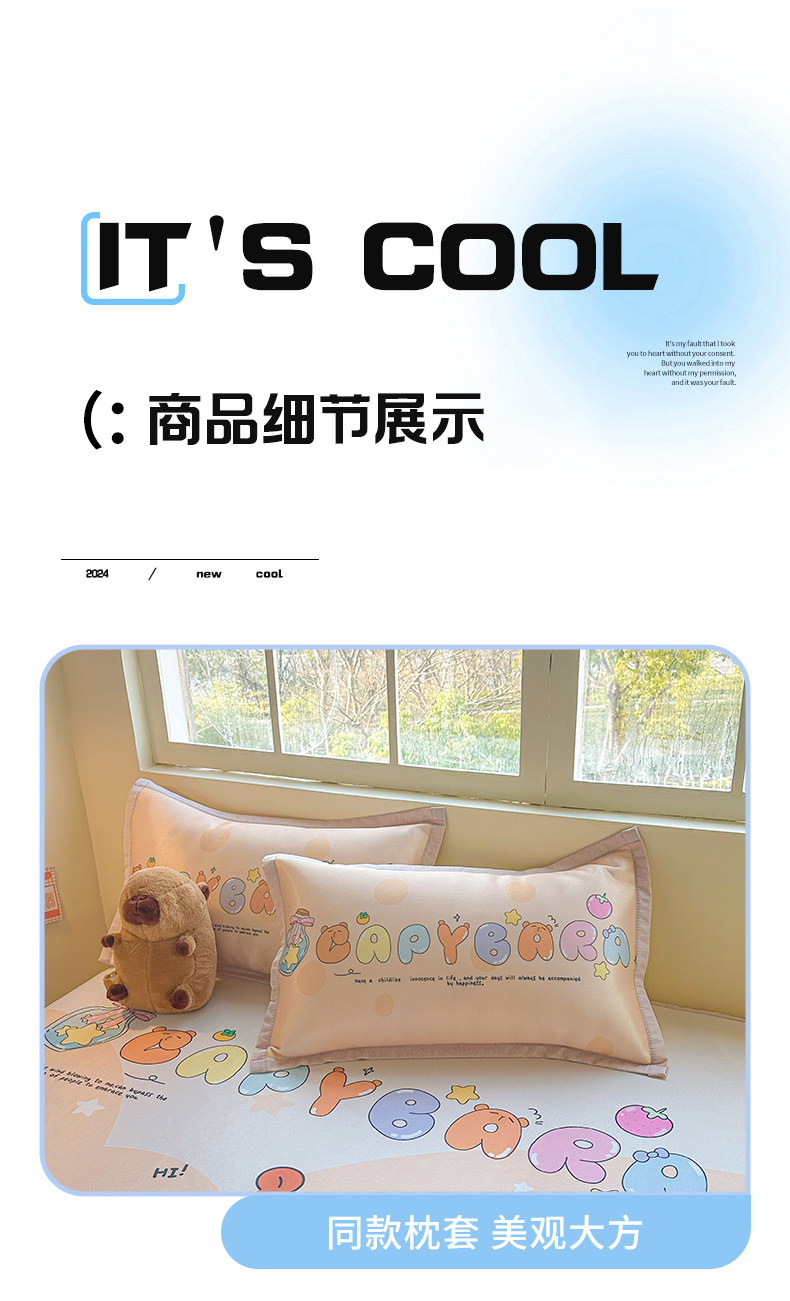 商品名称:博雅 2025新款独家版权A类大版数码印花1200D冰丝凉席 许愿瓶卡皮巴拉