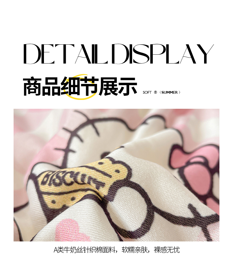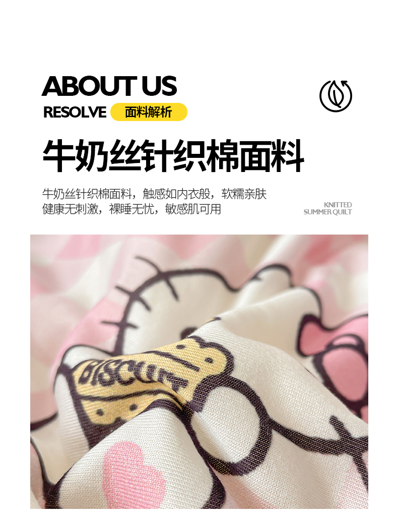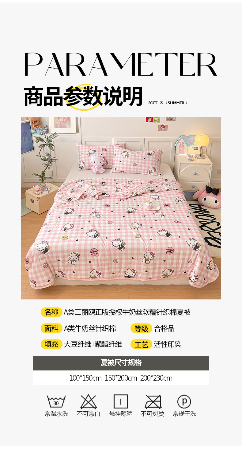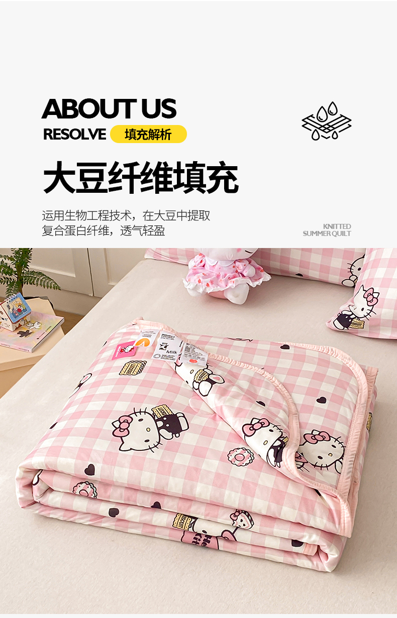 • 91家纺网 家纺一手货源 找家纺 桃子家居 2025新款A类三丽鸥正版授权高品质牛奶丝软糯针织棉大豆夏被系列 针织棉三丽鸥-粉格爱心kitty