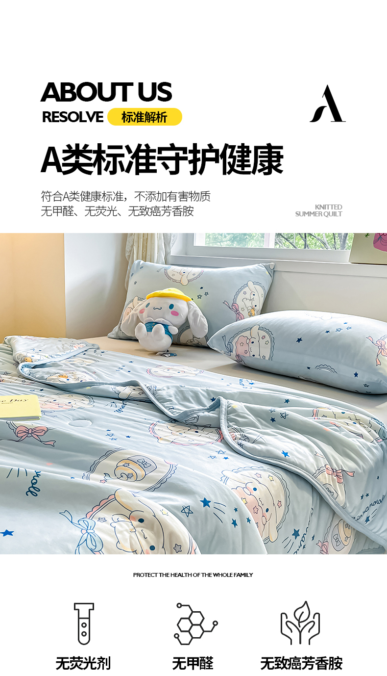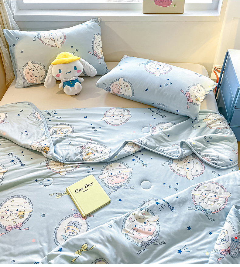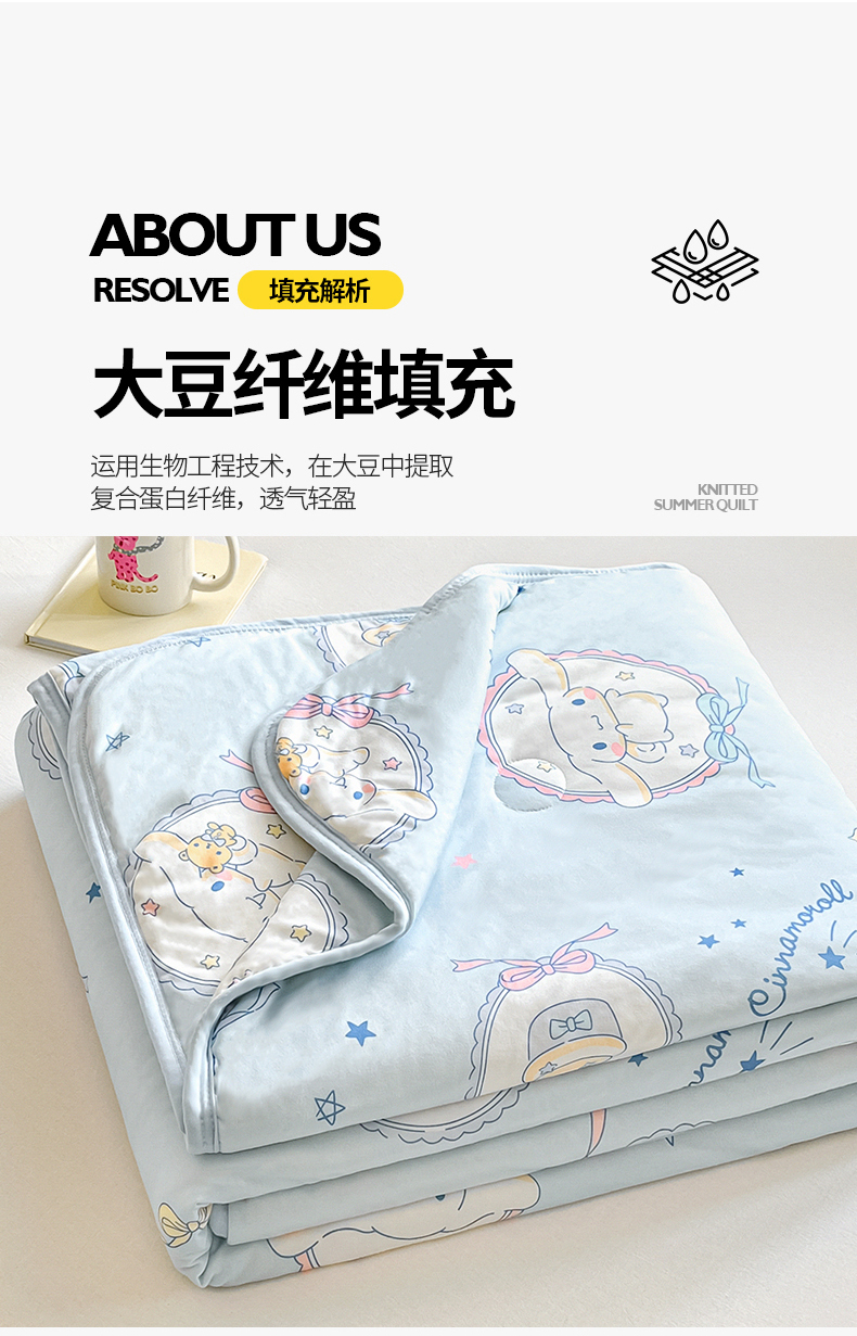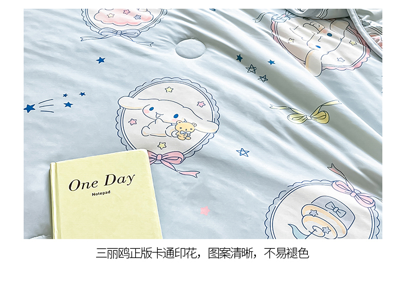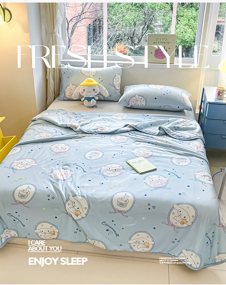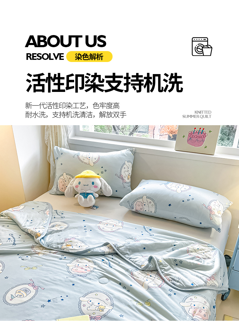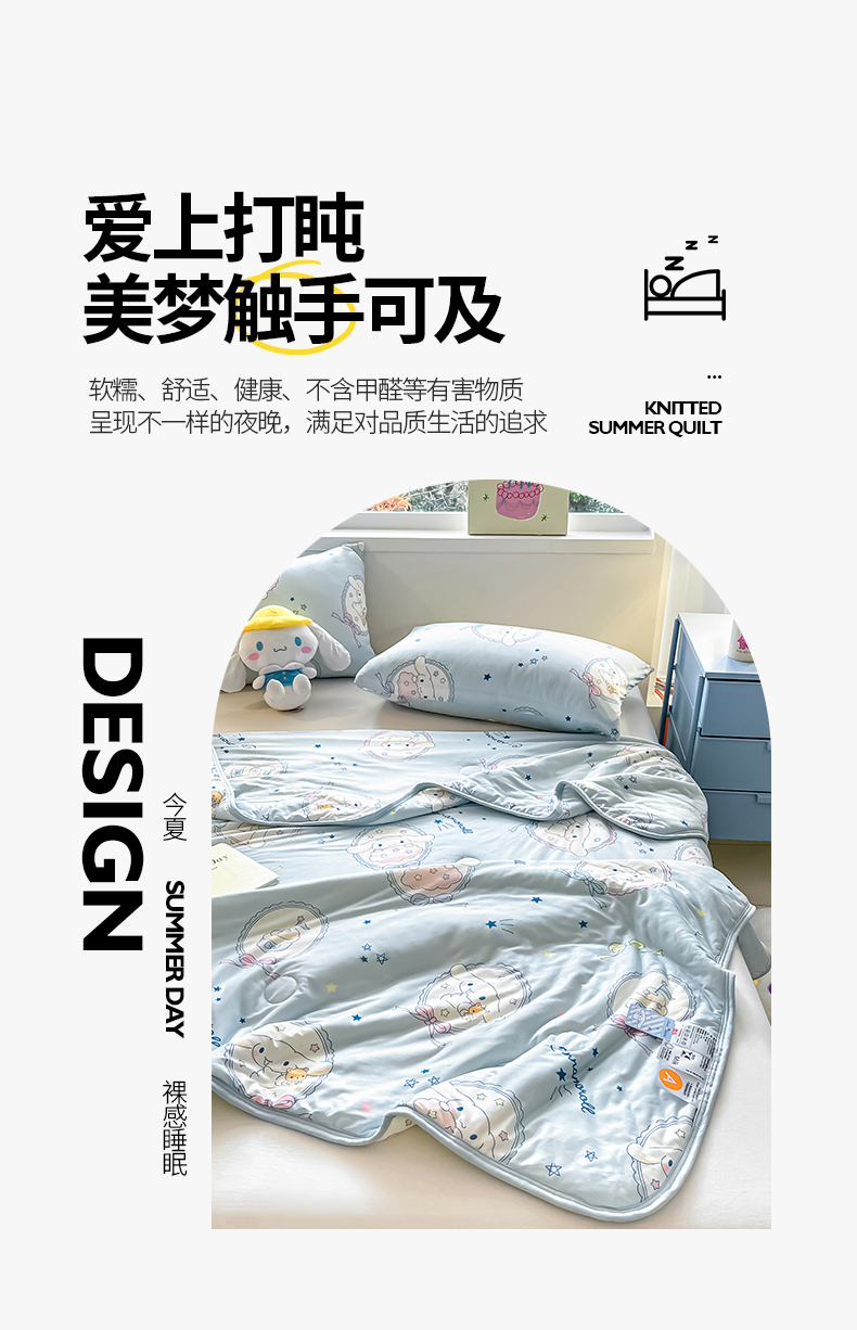 • 91家纺网 家纺一手货源 找家纺 桃子家居 2025新款A类三丽鸥正版授权高品质牛奶丝软糯针织棉大豆夏被系列 针织棉三丽鸥-蓝甜玉桂狗