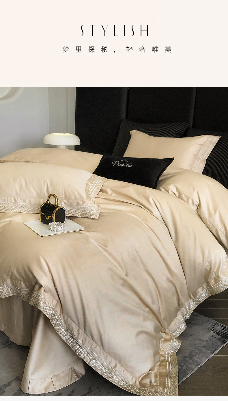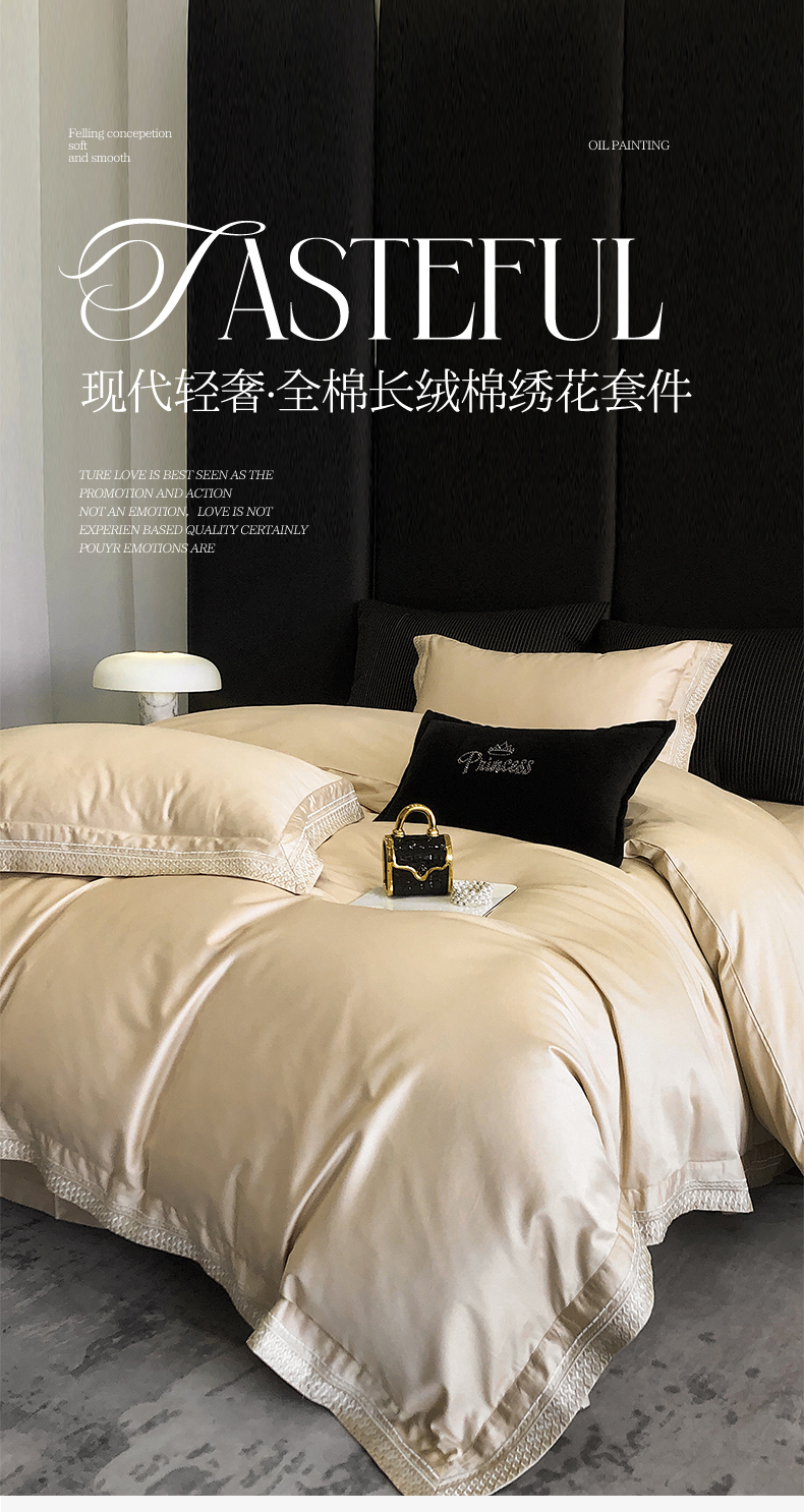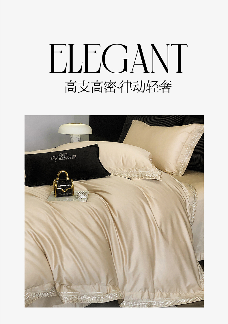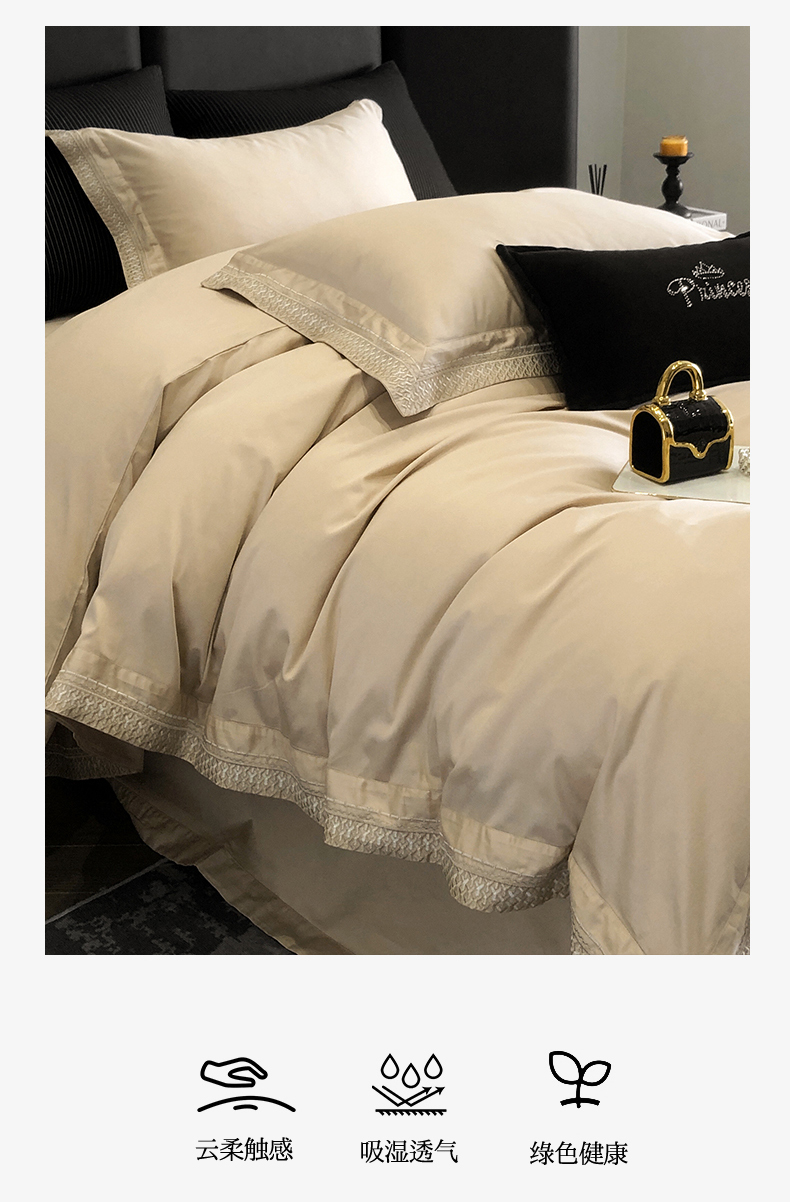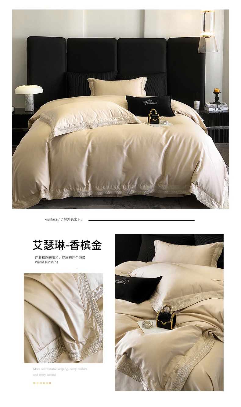 商品名称:保罗圣迪奥 2025新款50双股全棉长绒棉四件套-艾瑟琳系列 艾瑟琳-香槟金