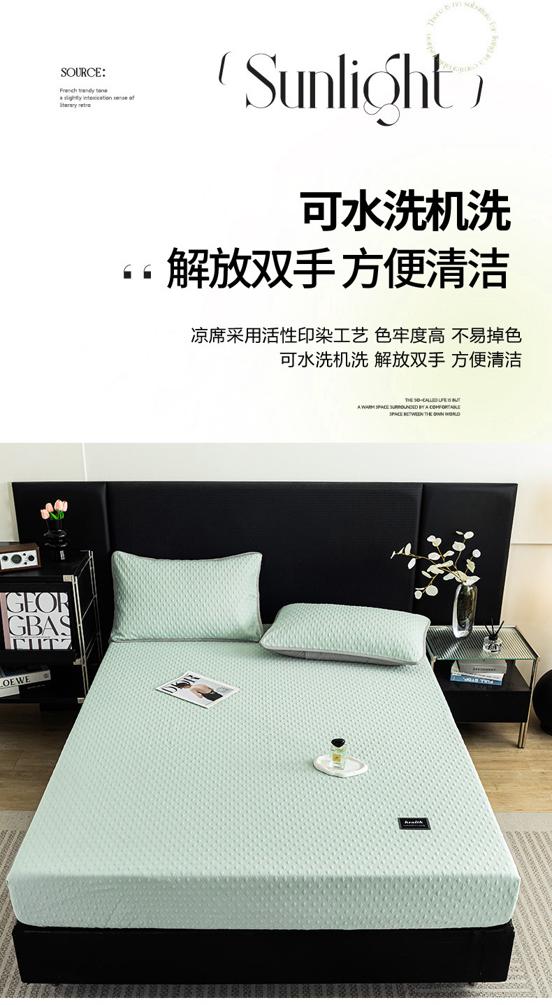 • 91家纺网 家纺一手货源 找家纺 倾慕家纺 2025新款PE大泡泡凉感床笠款凉席 菱形泡绿