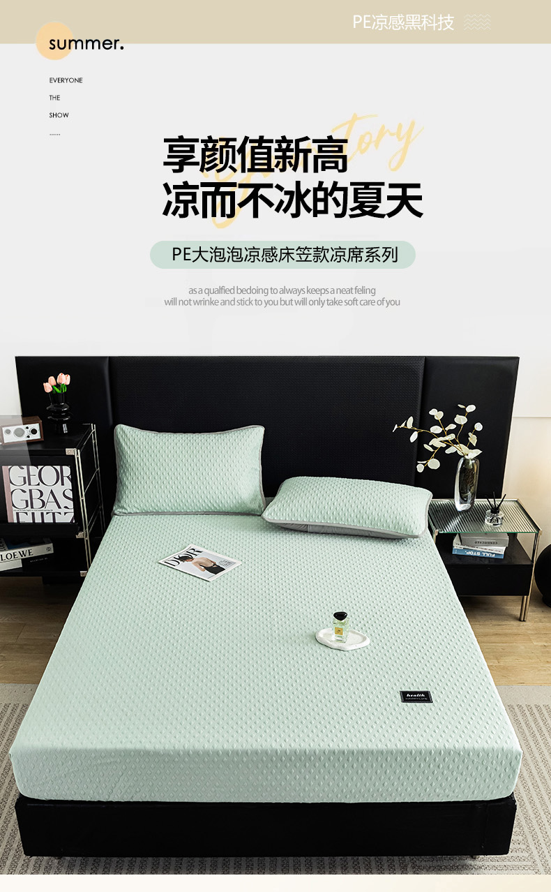 倾慕家纺 2025新款PE大泡泡凉感床笠款凉席 菱形泡绿