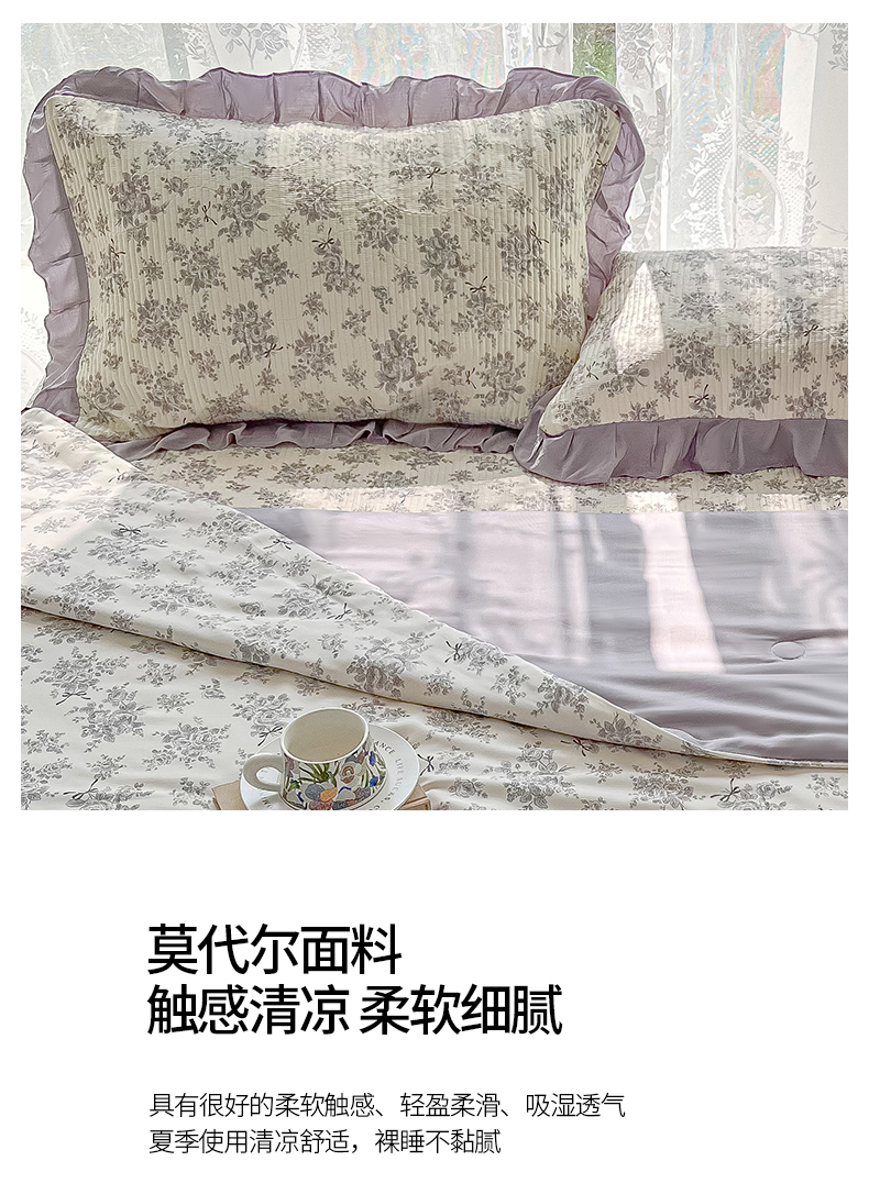 商品名称:慕晨 2025新品天丝莫代尔夏被床盖四件套天丝夏凉被直播热款夏被四件套 醒春集