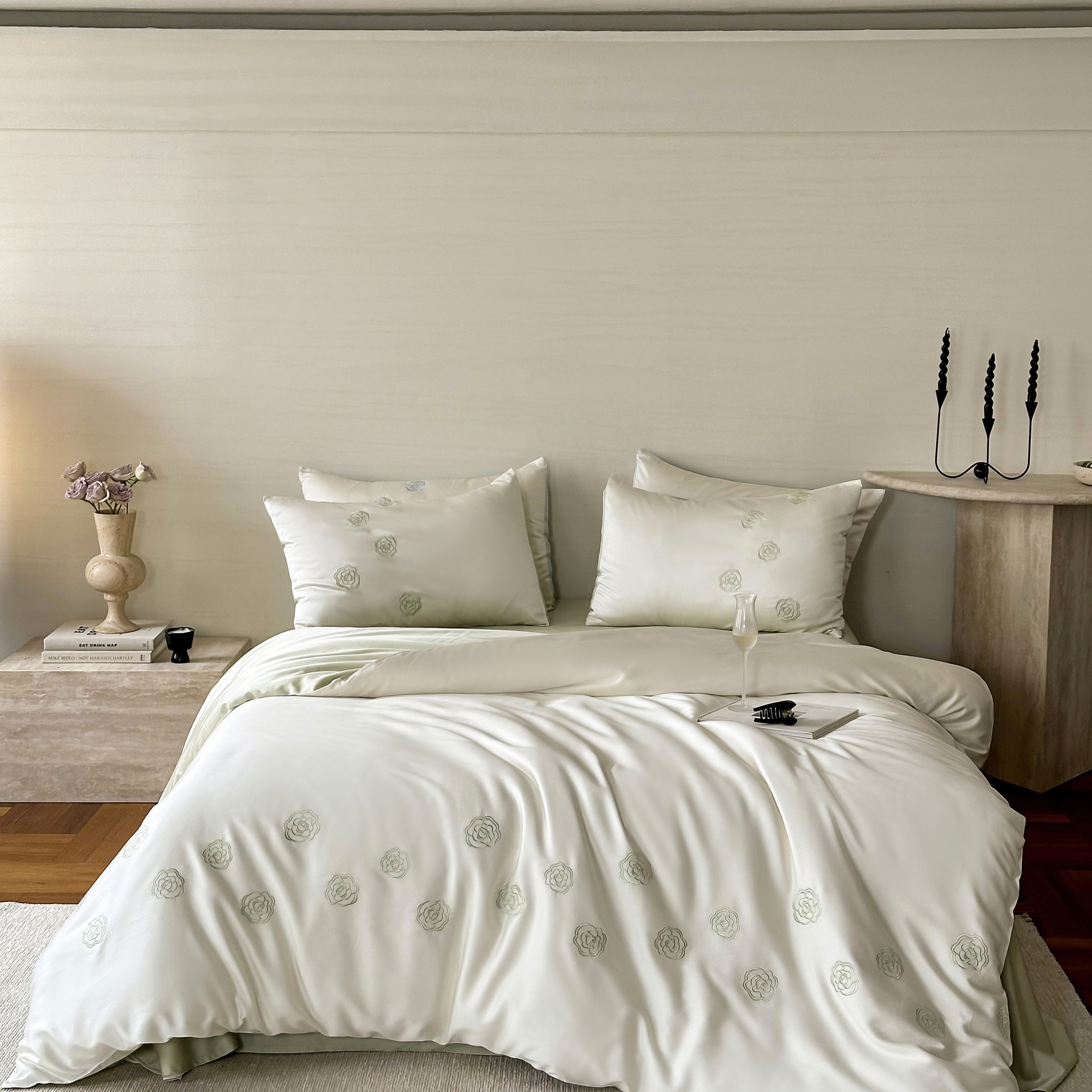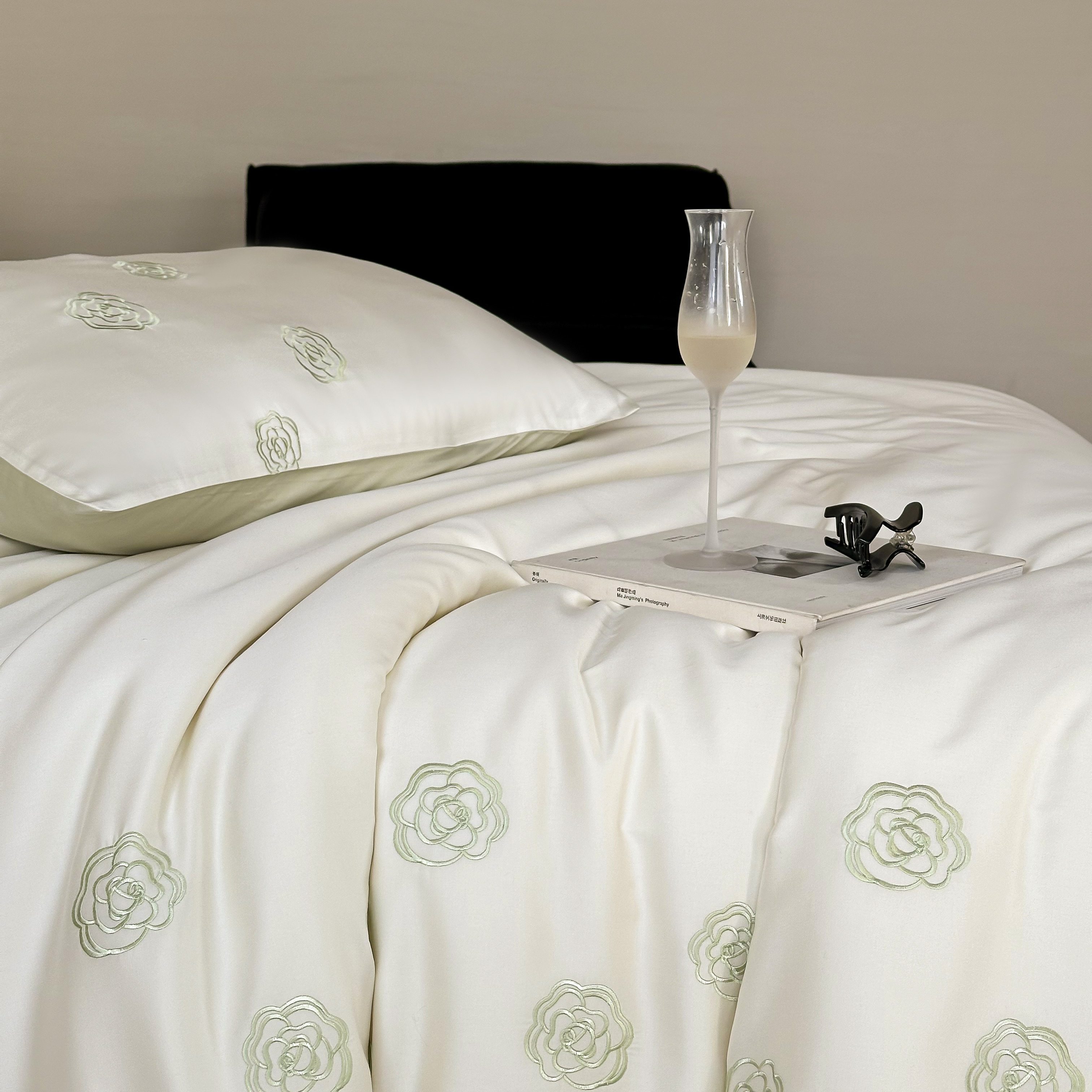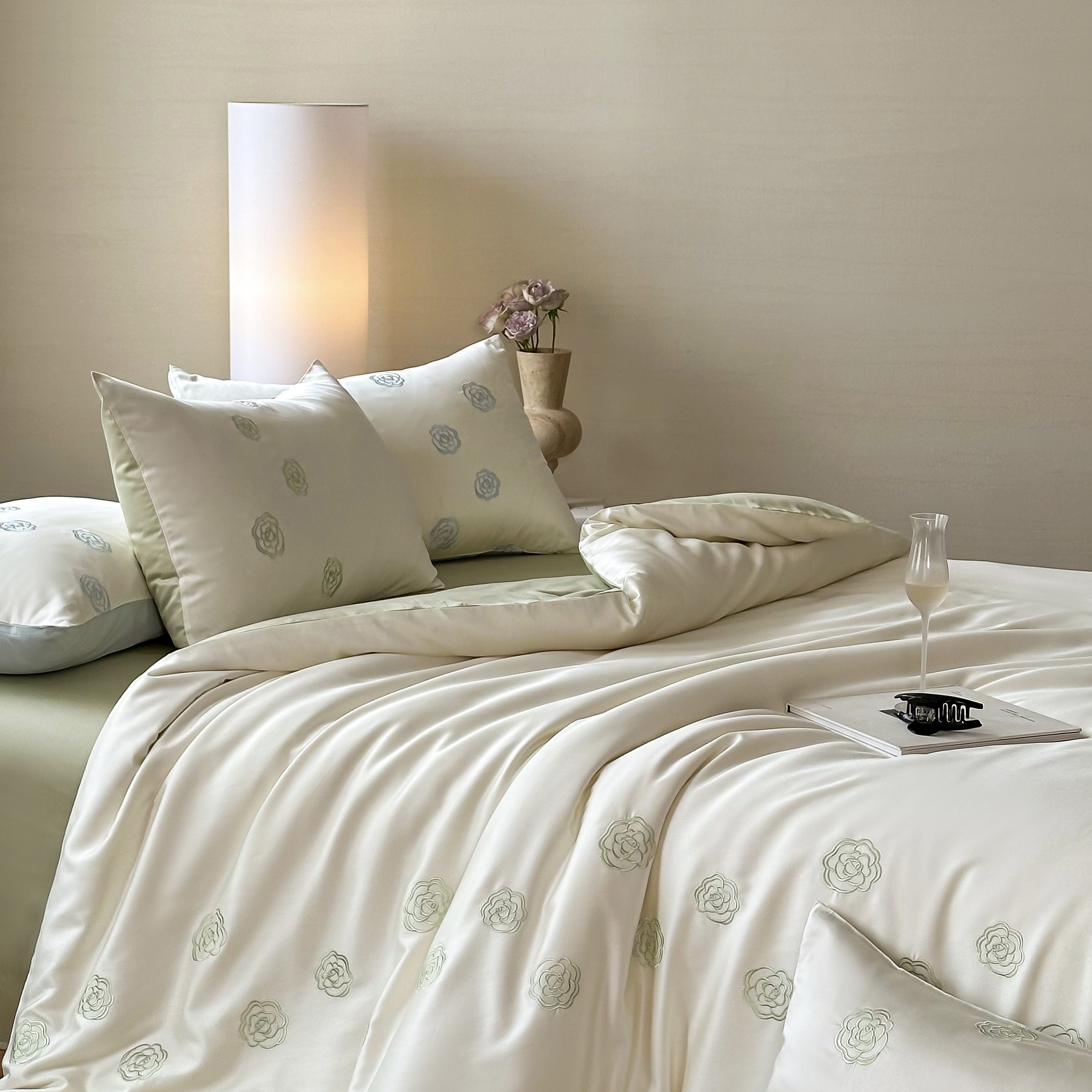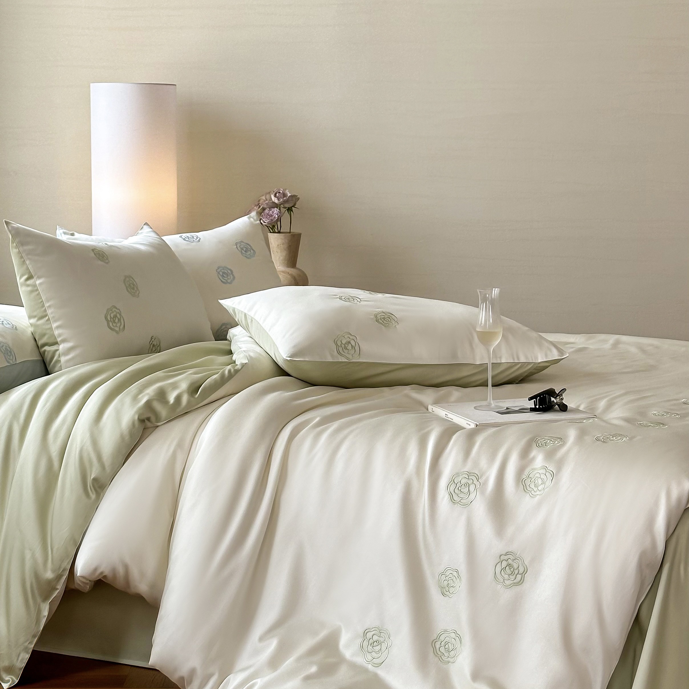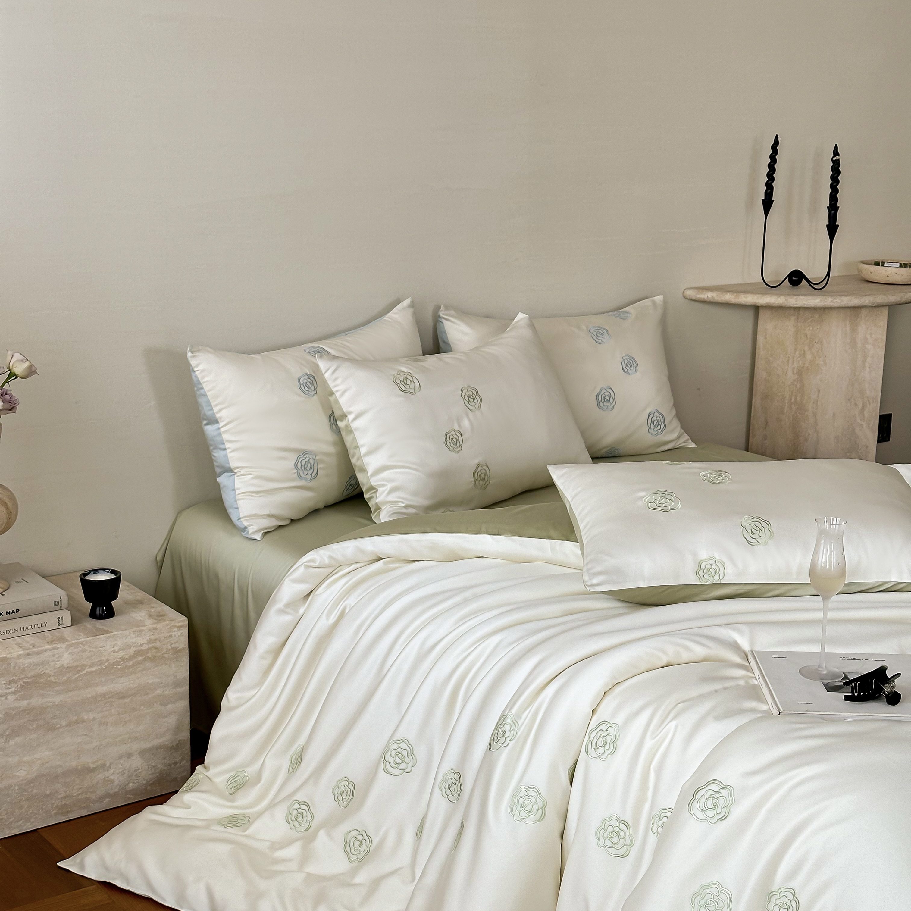 佳汐蓝家纺 2025春夏新款60S兰精天丝绣花四件套-玉茗系列 玉茗·珍珠绿