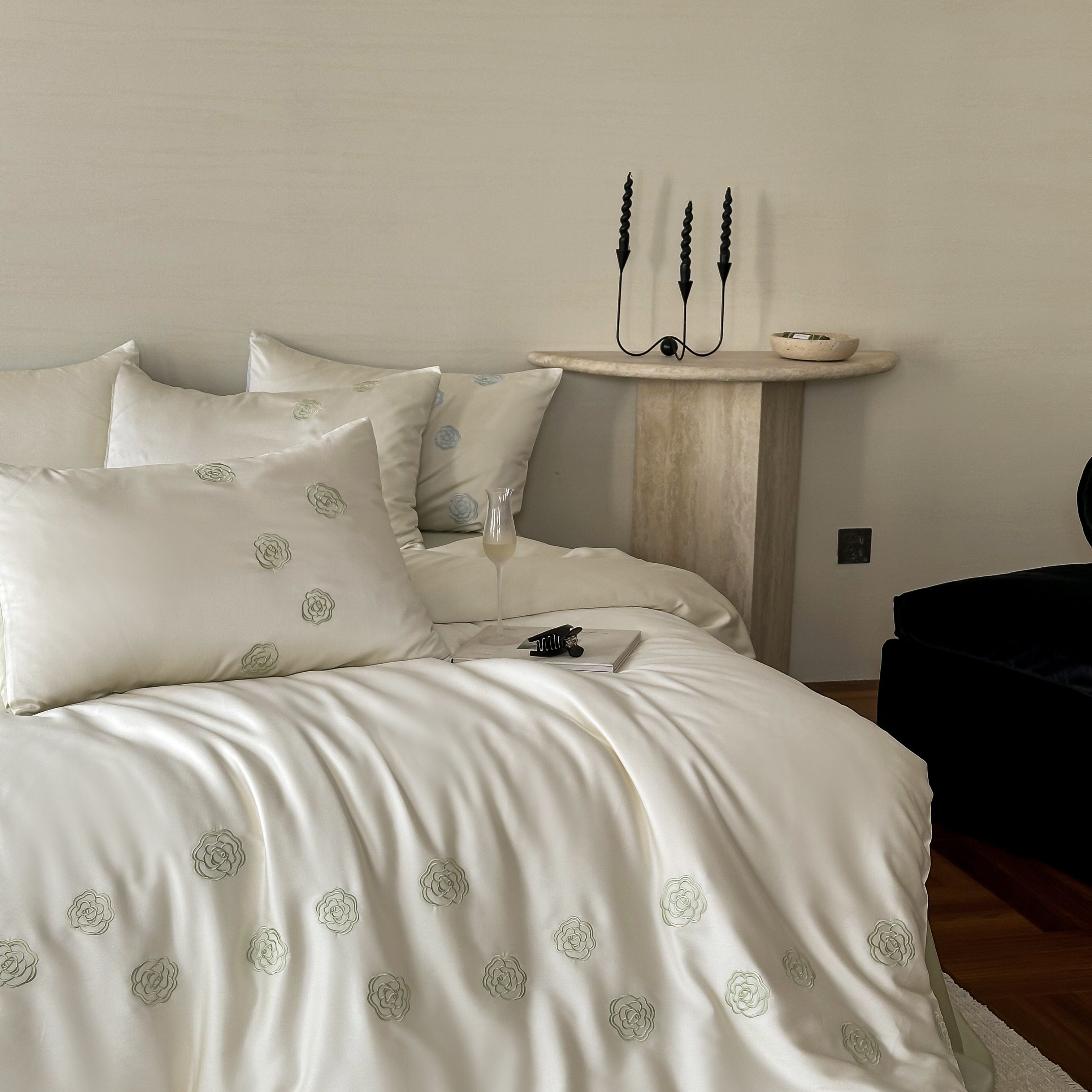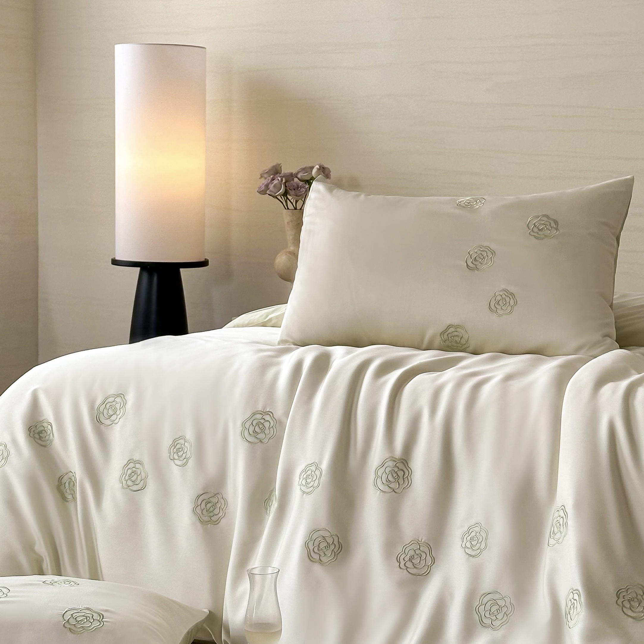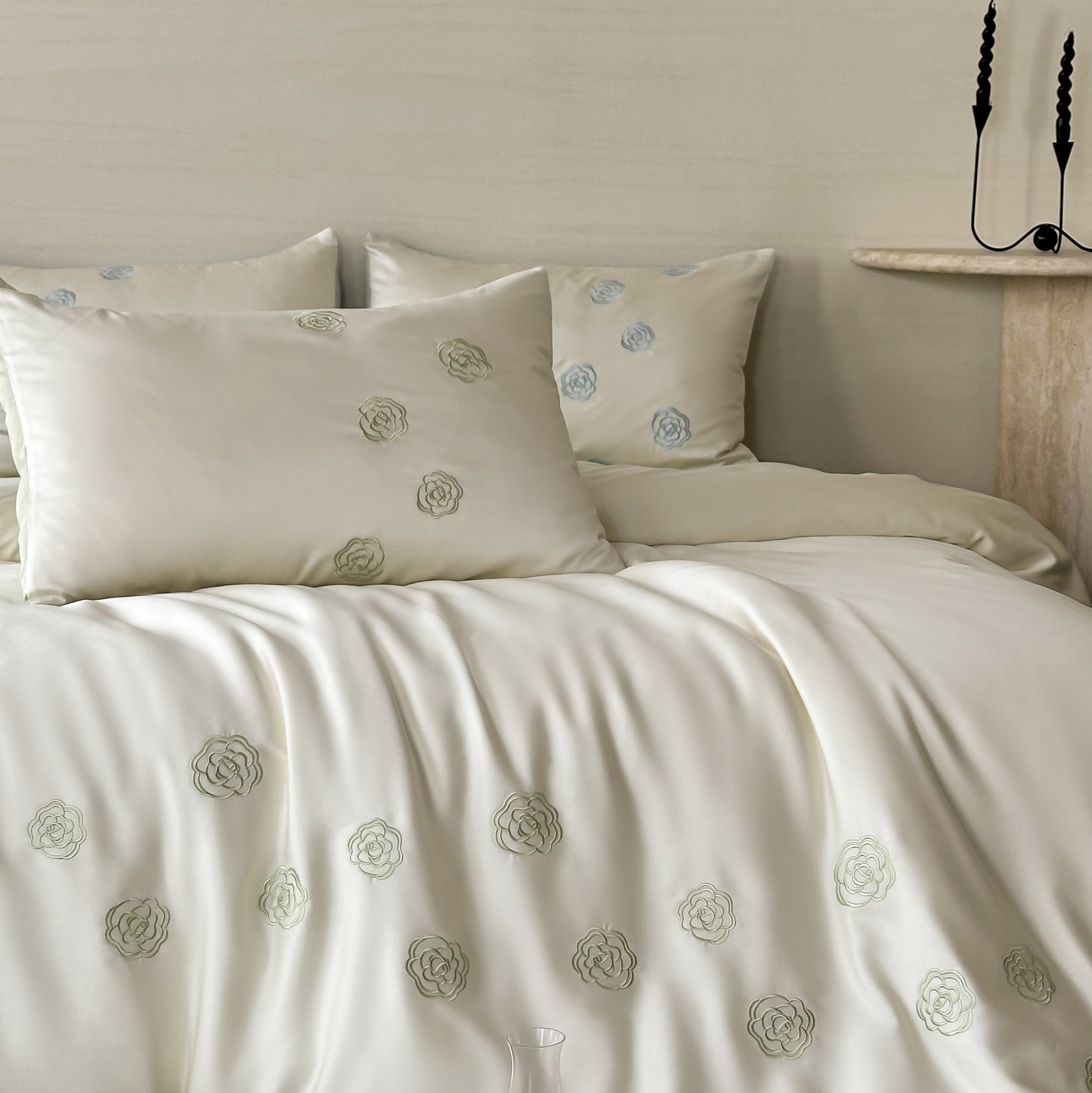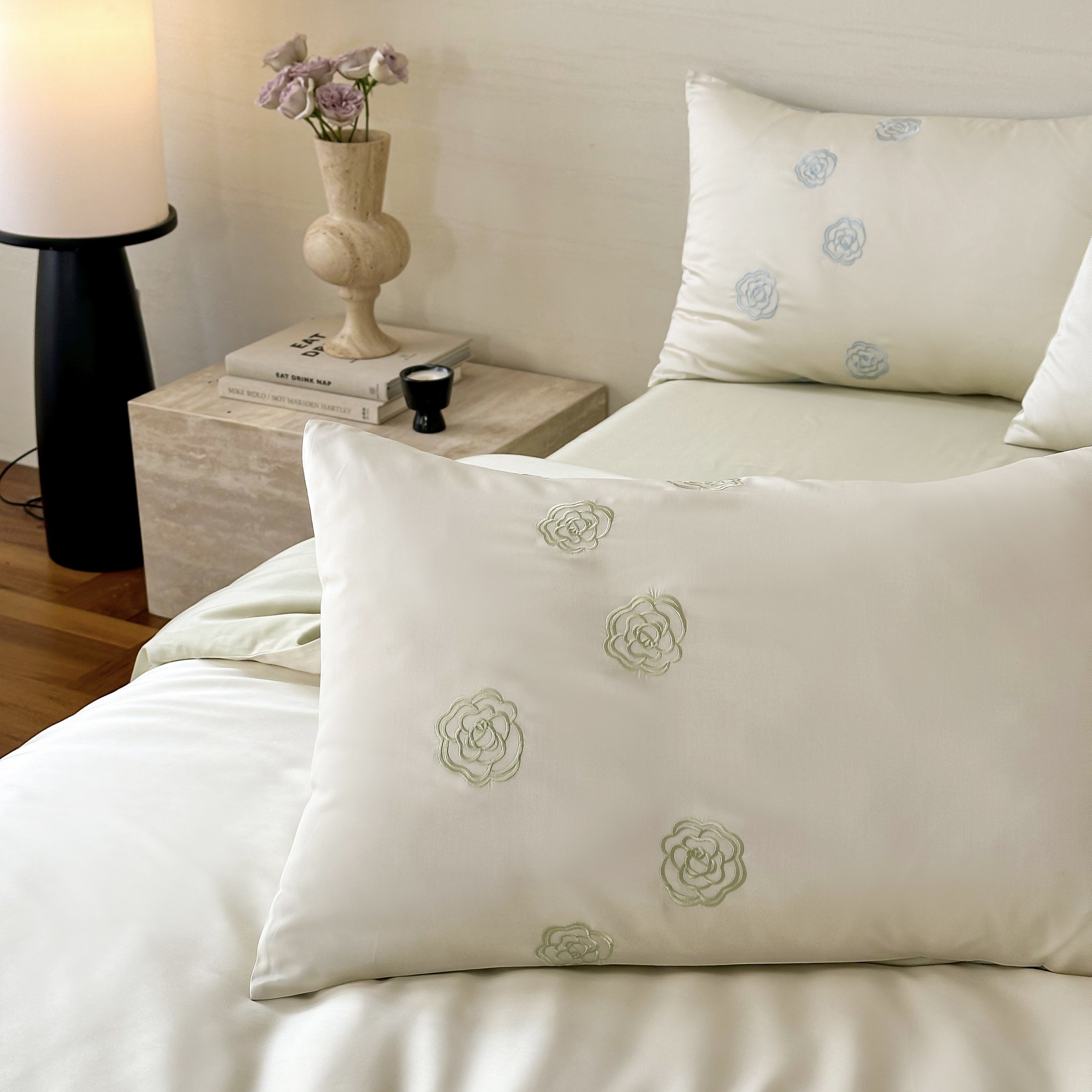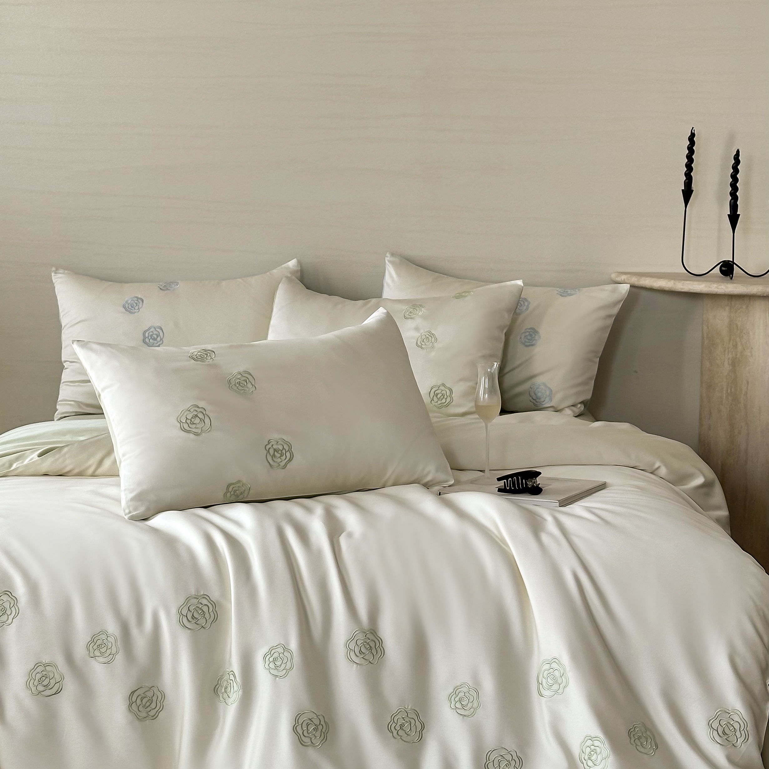 佳汐蓝家纺 2025春夏新款60S兰精天丝绣花四件套-玉茗系列 玉茗·珍珠绿