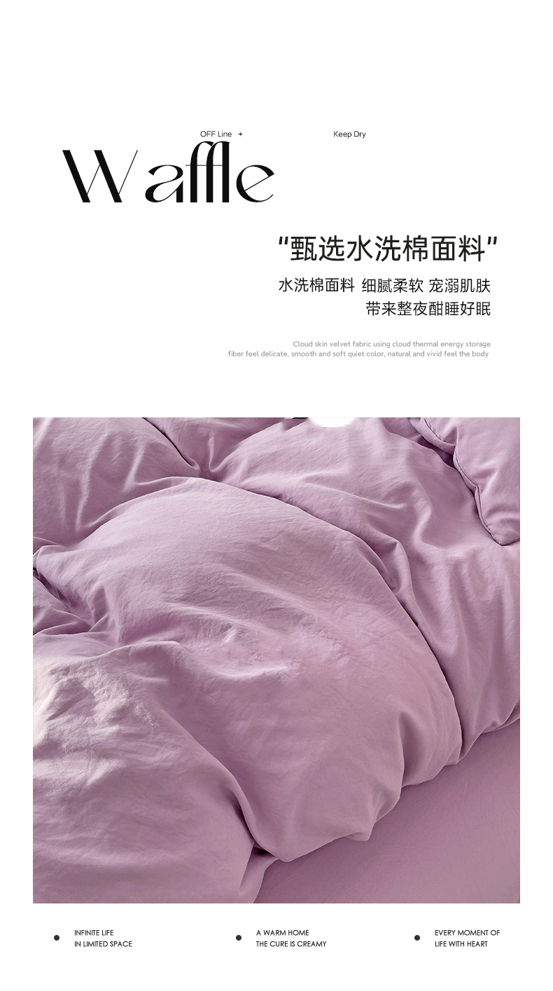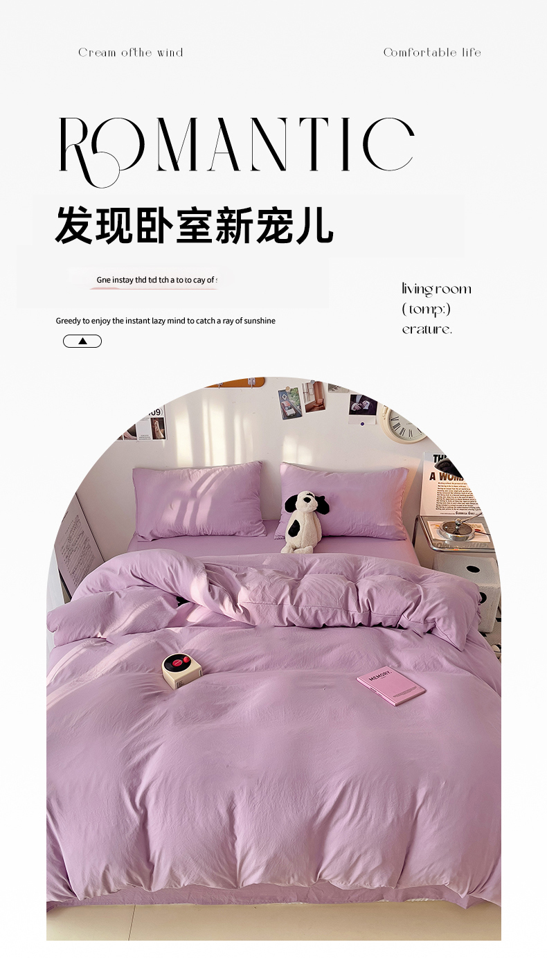 当前位置: 91家纺网 > 商品网购 > 床品套件 > 四件套 > 水洗棉四件套 > 艾特你 2025新款简约纯色水洗棉四件套 时尚简约-紫