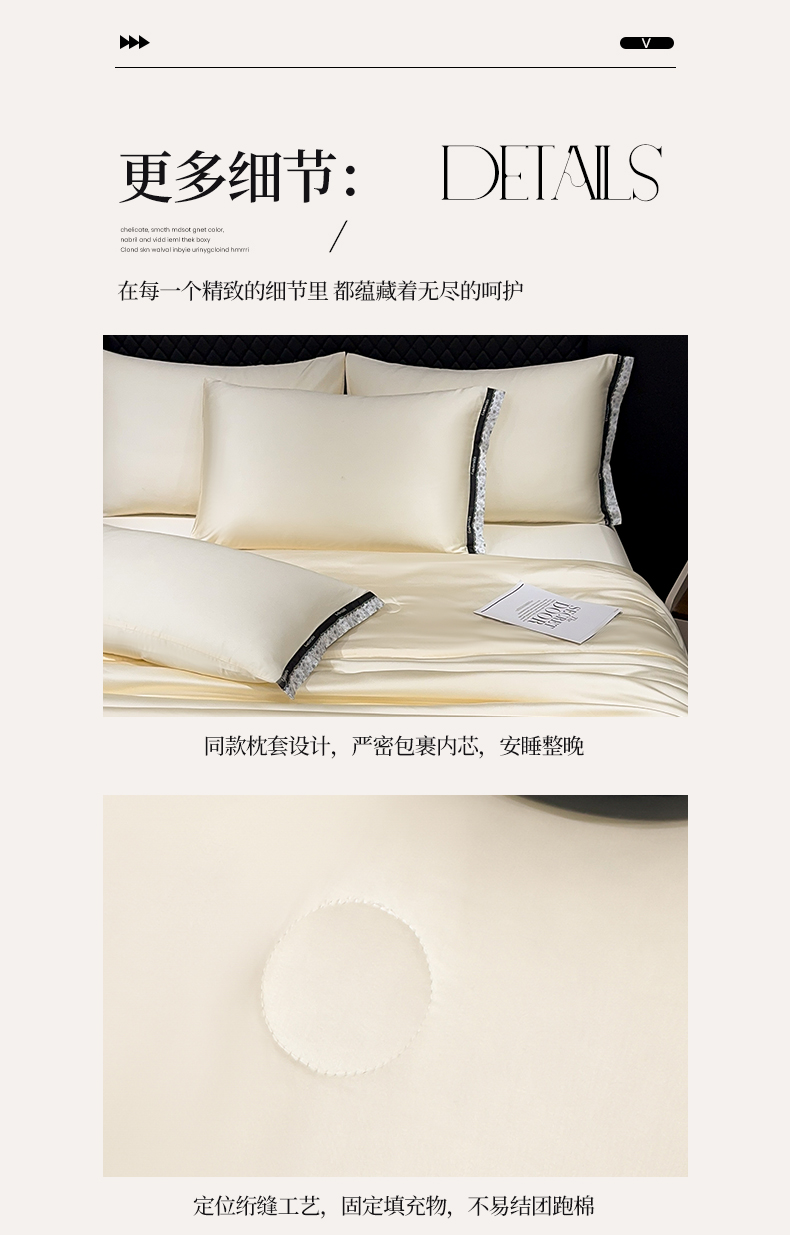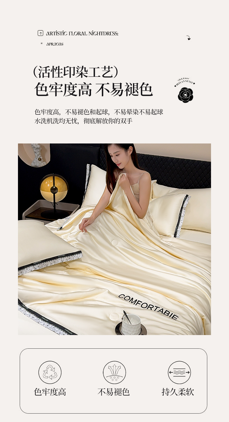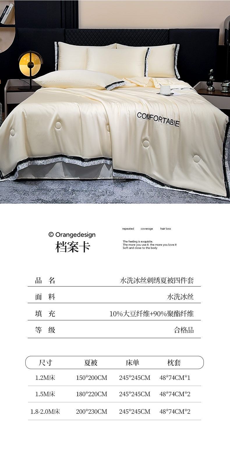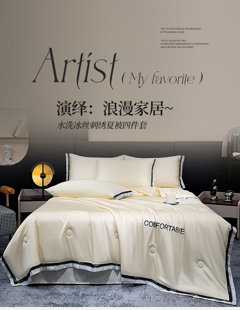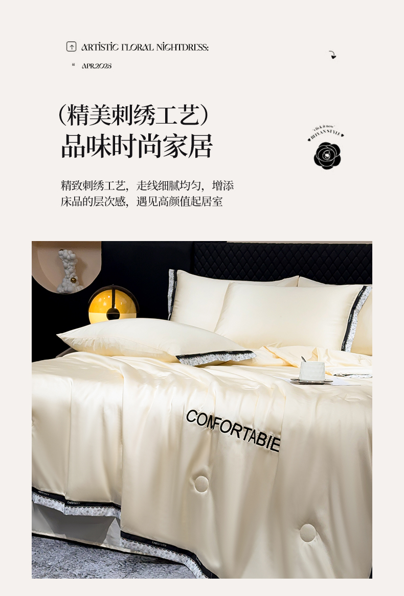 商品名称:2025新款清凉舒适水洗冰丝刺绣夏被四件套 迷境-奶白