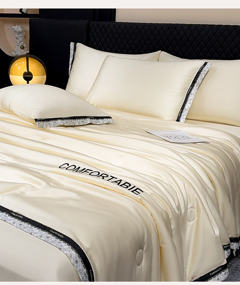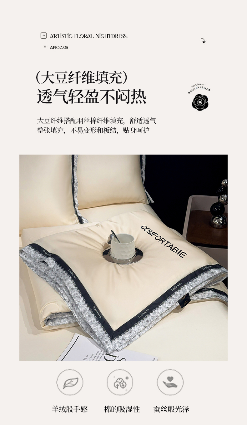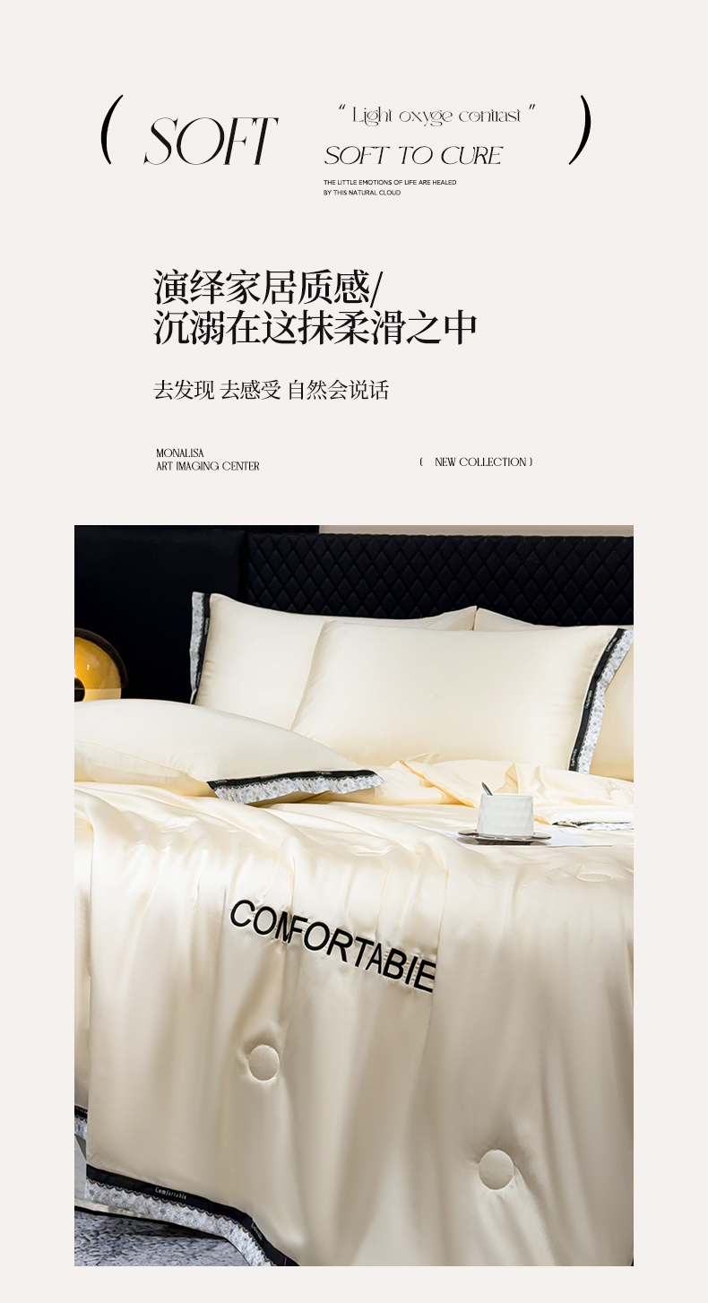 2025新款清凉舒适水洗冰丝刺绣夏被四件套 迷境-奶白