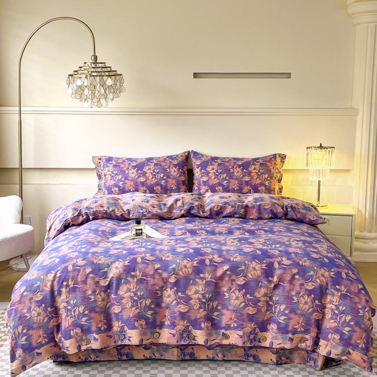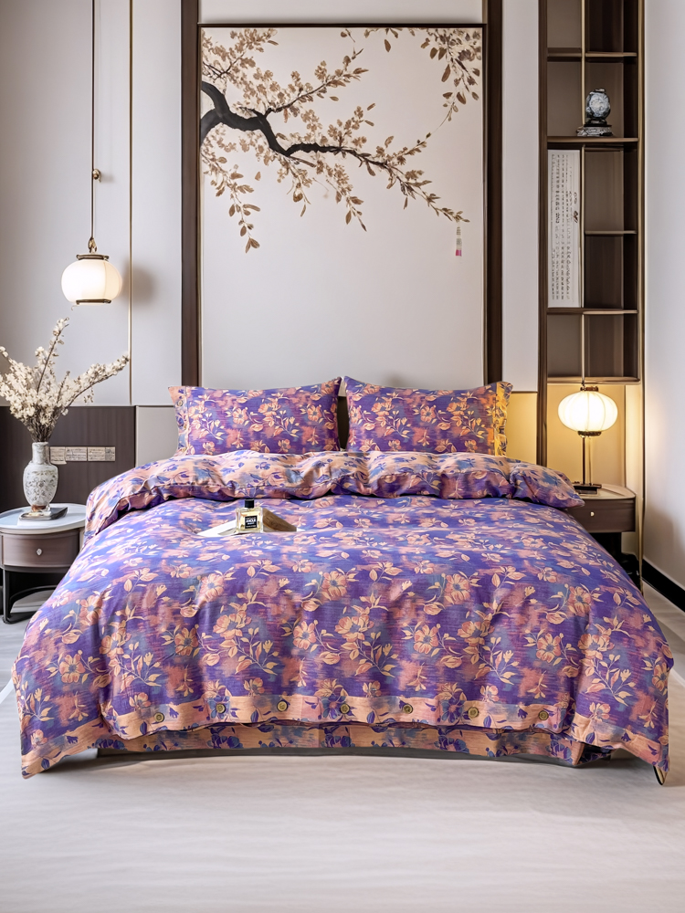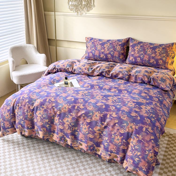 商品名称:2025新款全棉色织双层纱纽扣款四件套 花海-紫罗兰