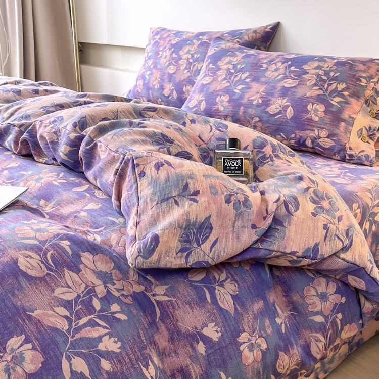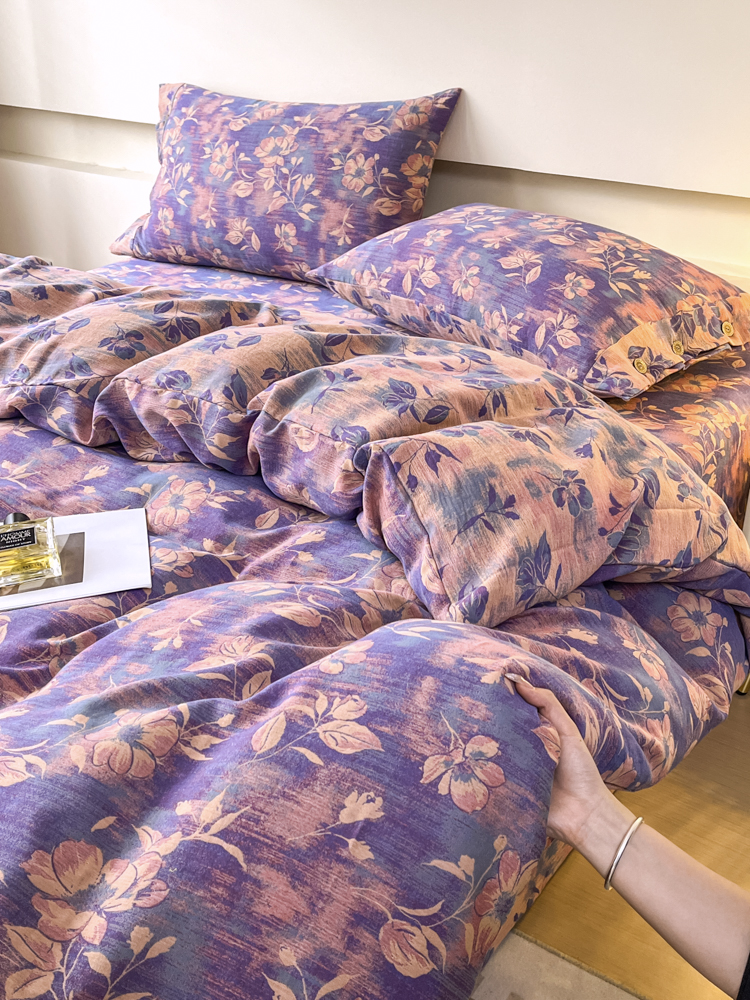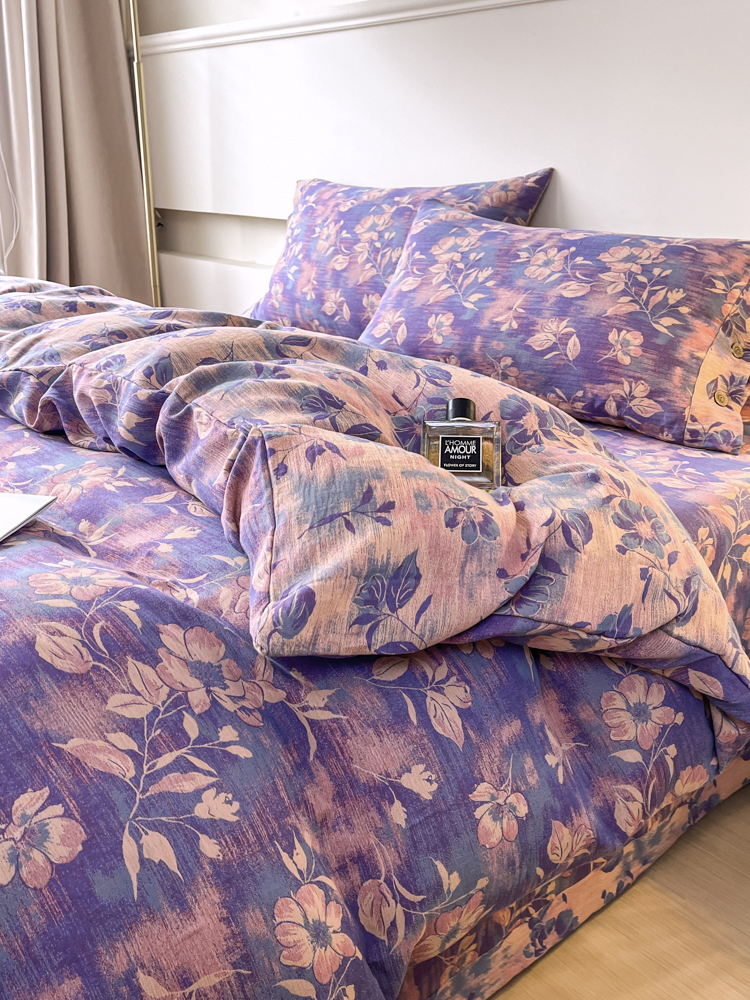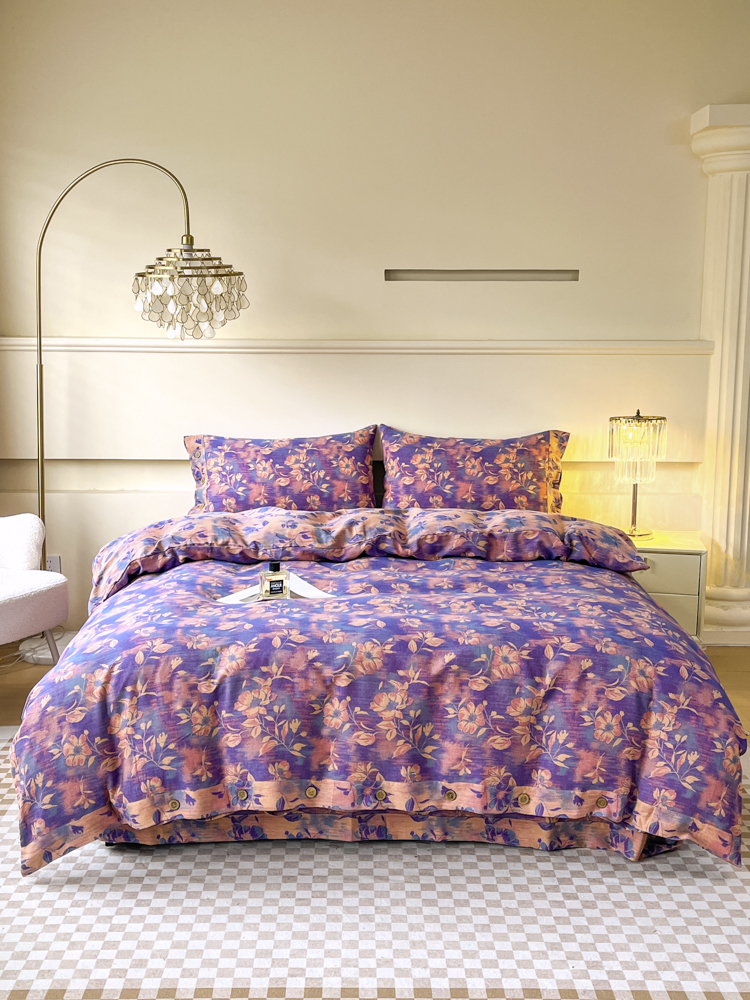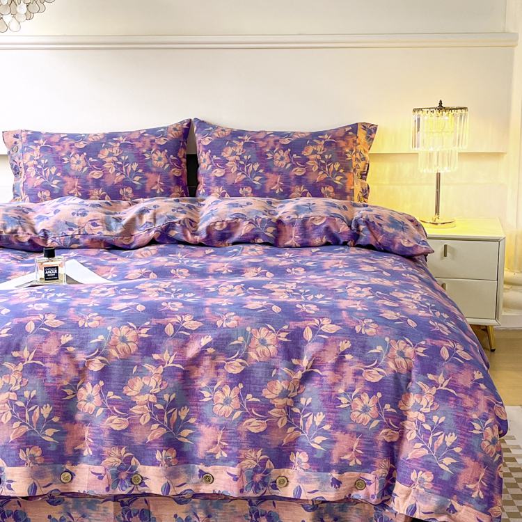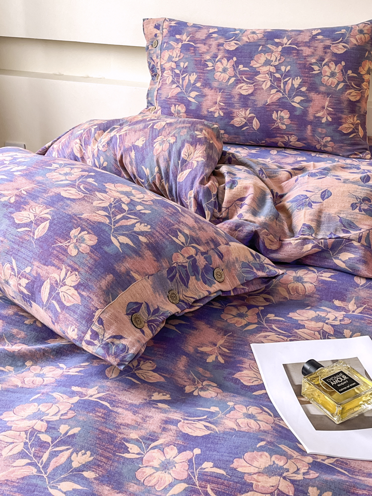 2025新款全棉色织双层纱纽扣款四件套 花海-紫罗兰