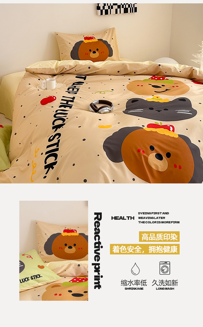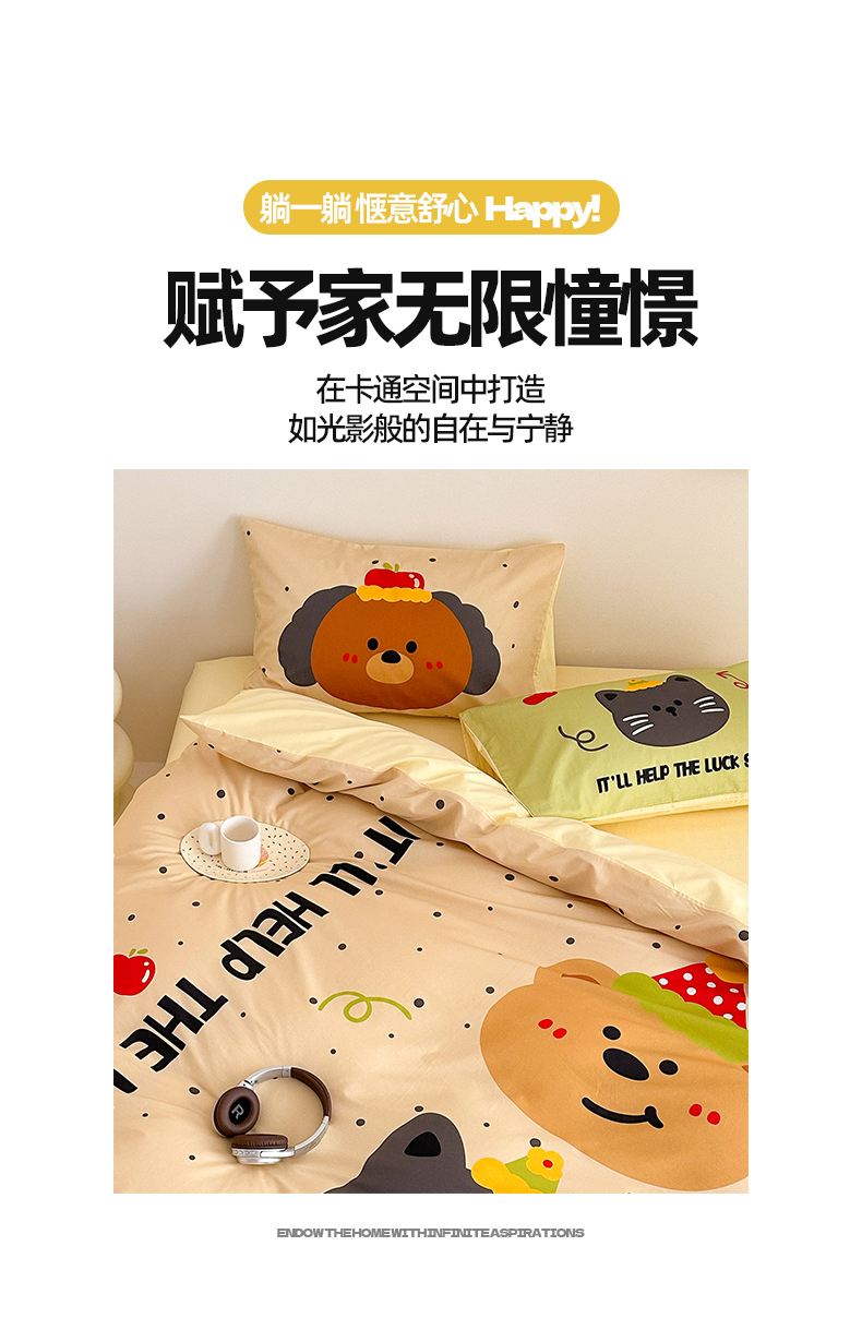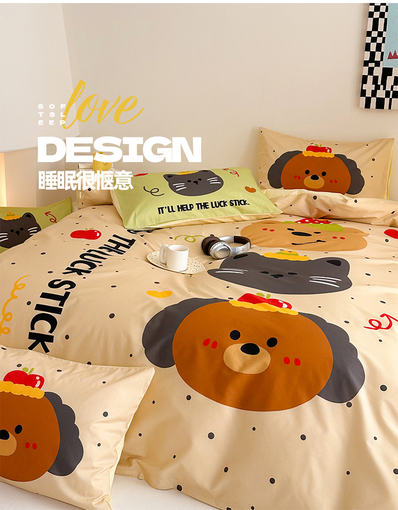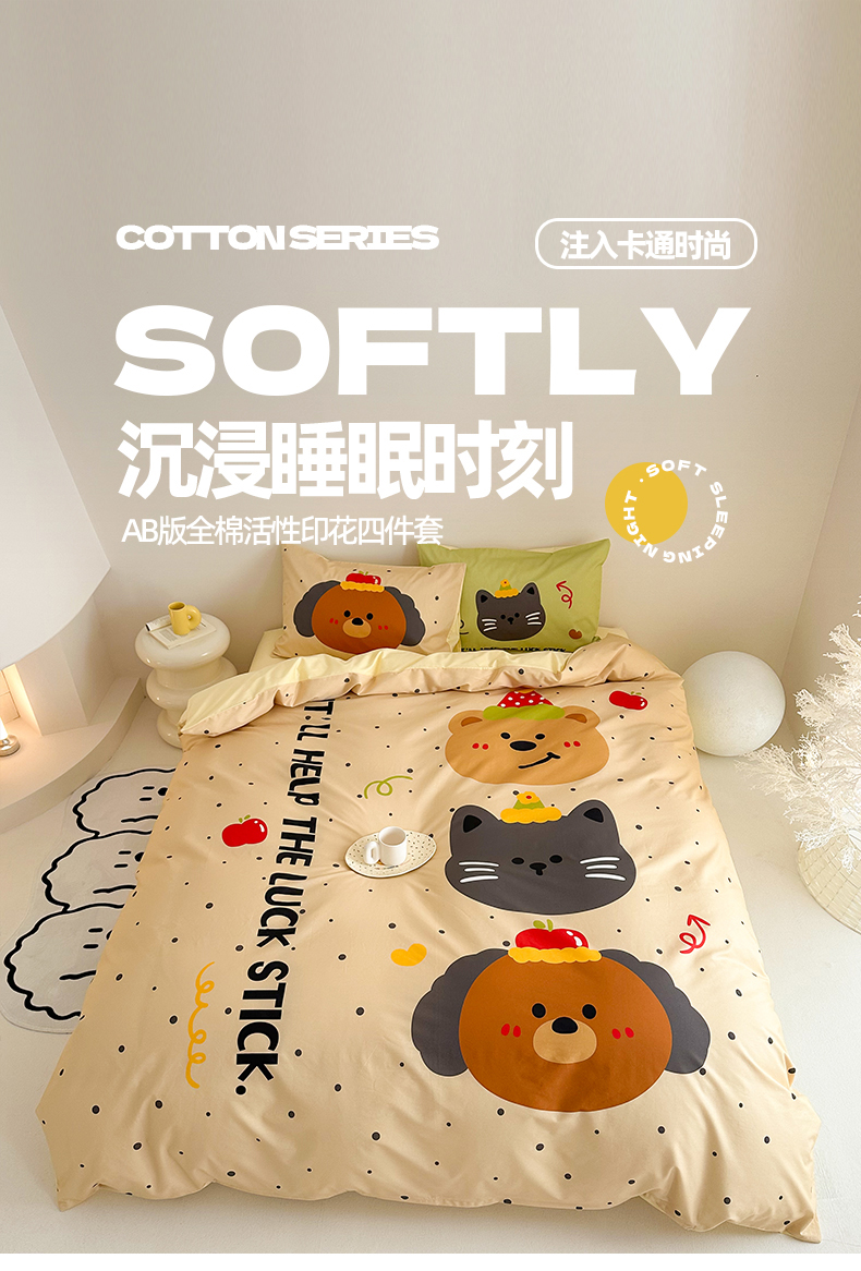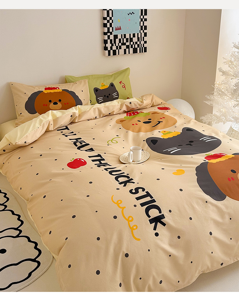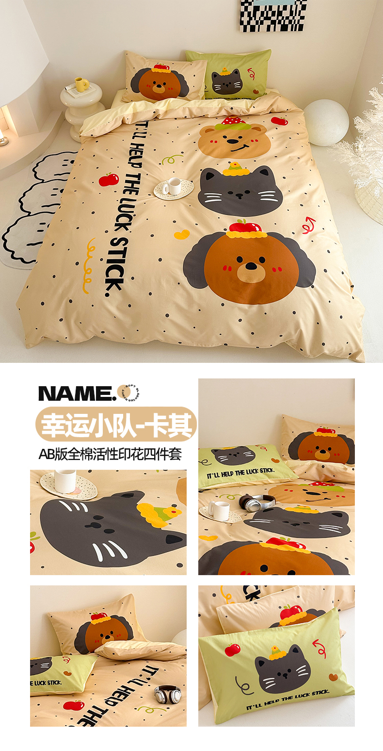 当前位置: 91家纺网 > 商品网购 > 床品套件 > 四件套 > 全棉普通四件套 > 2025新款全棉大版卡通数码印花纯棉四件套 幸运小队(卡其)