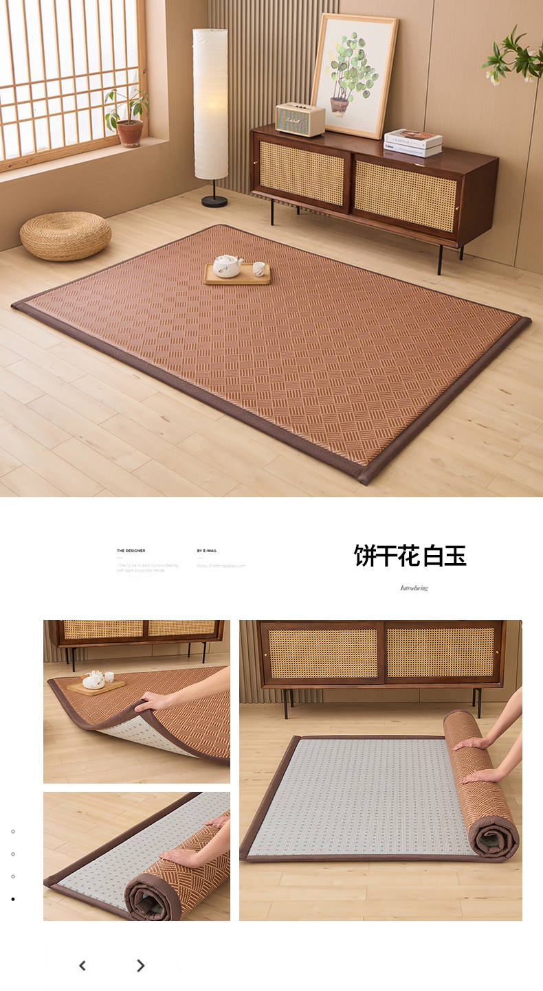 牵梦萦 2025款PE冰藤席凉席款地垫(支持定制 46元每平方) 饼干花 白玉