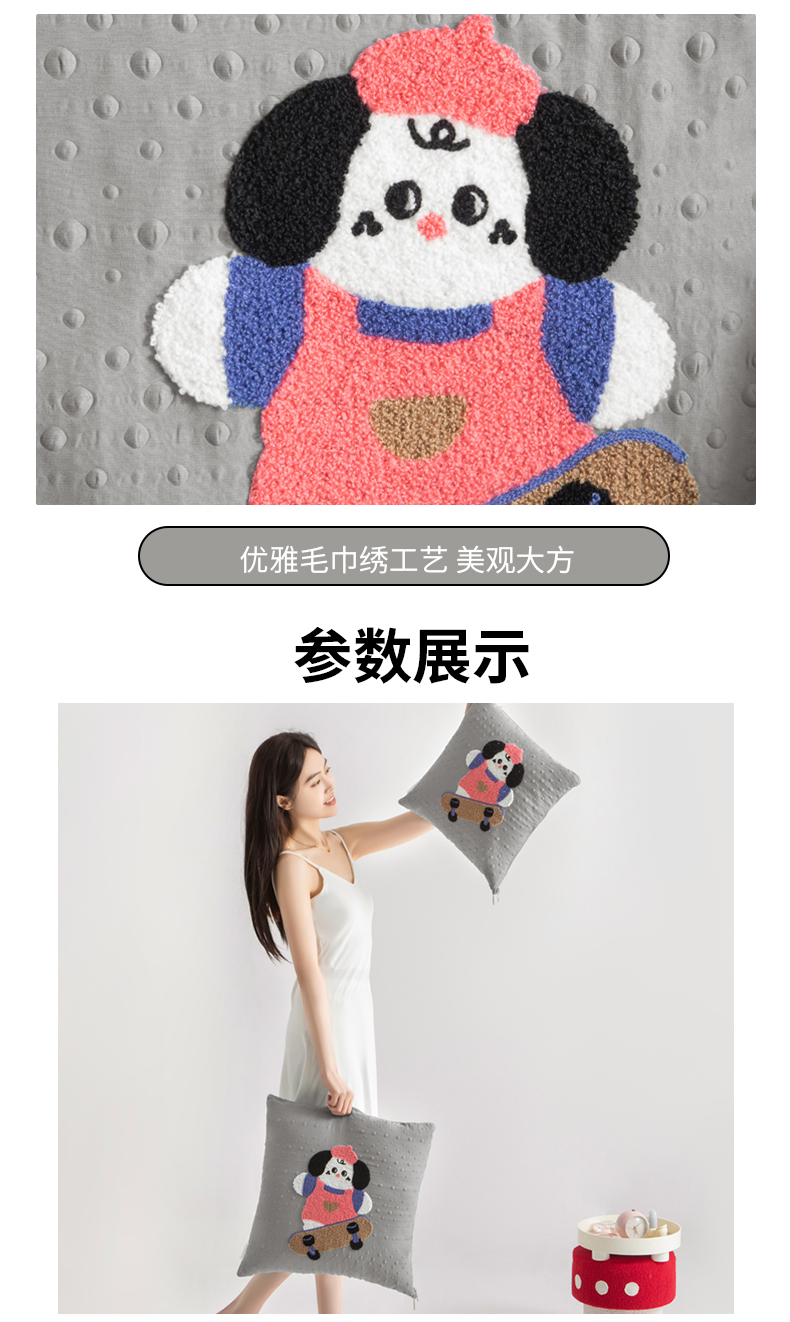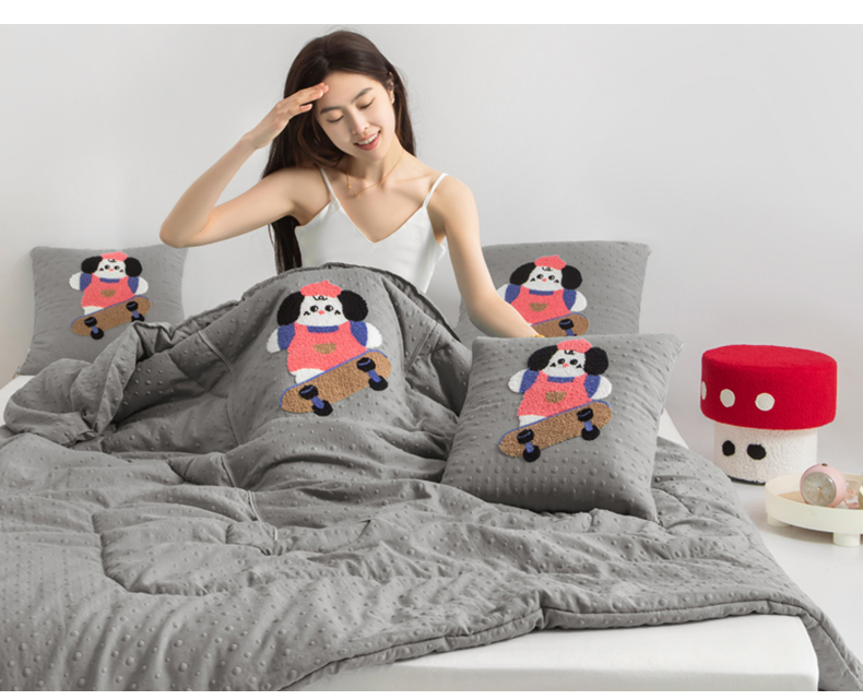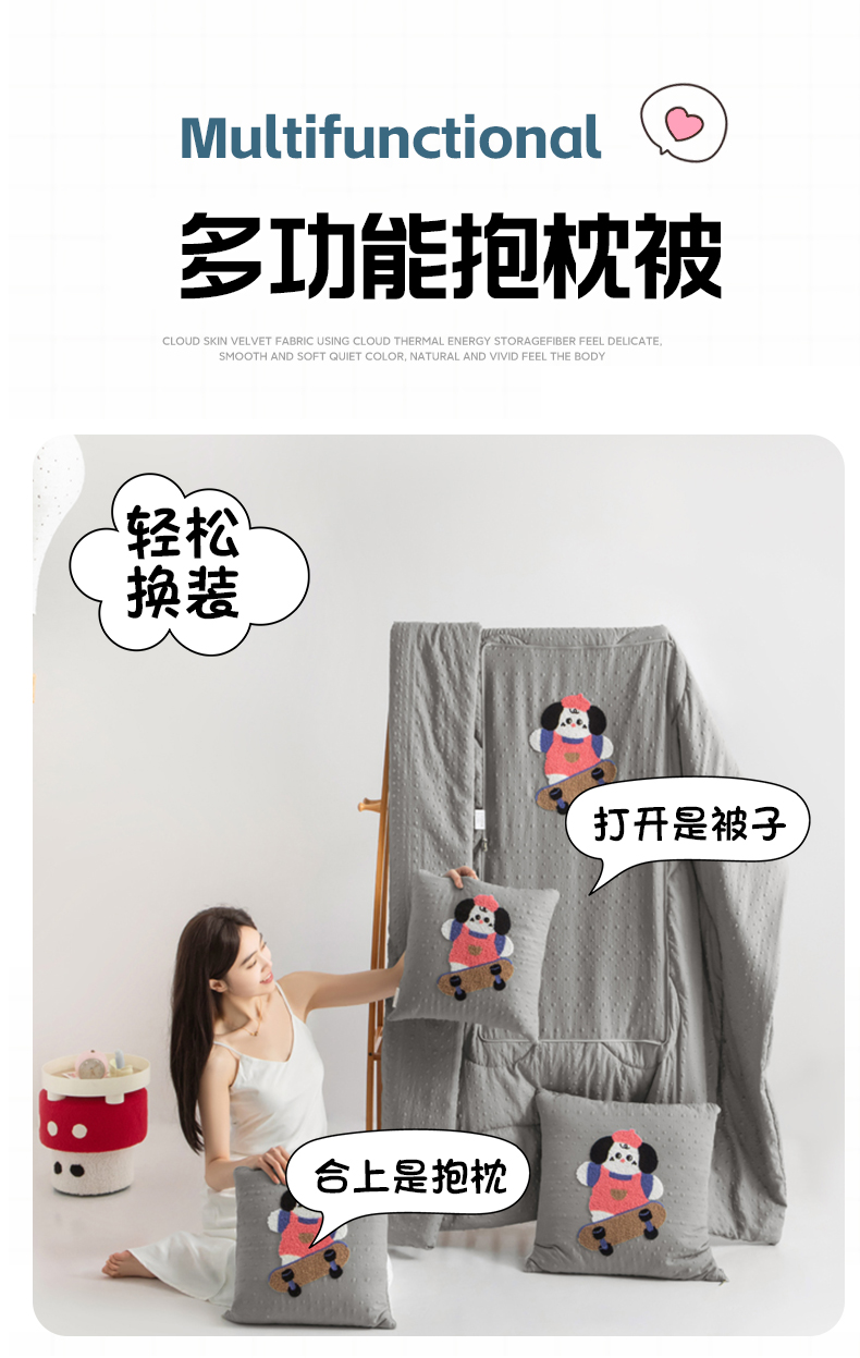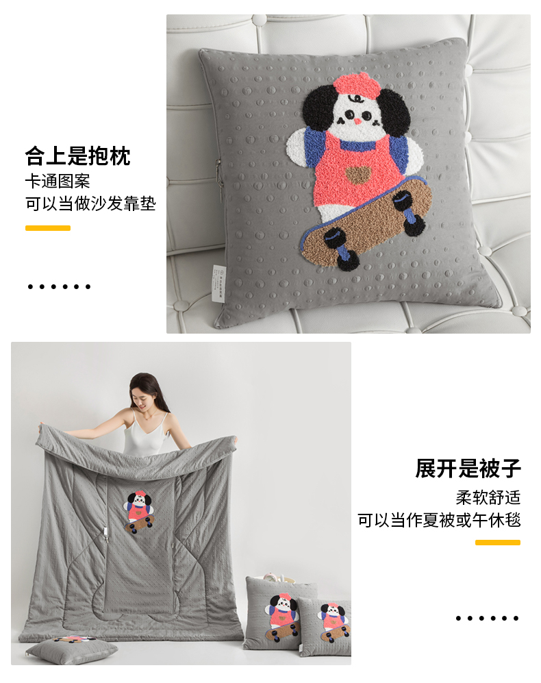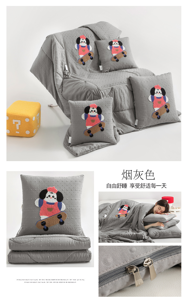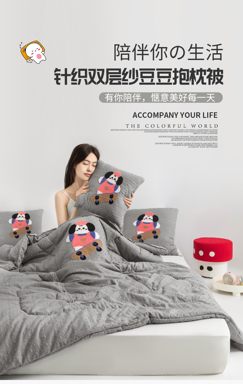 商品名称:雷娜家居 2025新款针织双层纱系列豆豆抱枕被-滑板狗 烟灰色