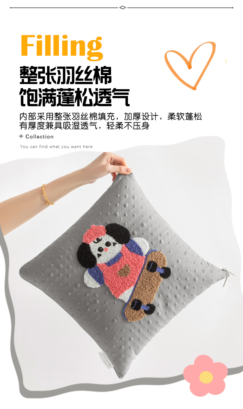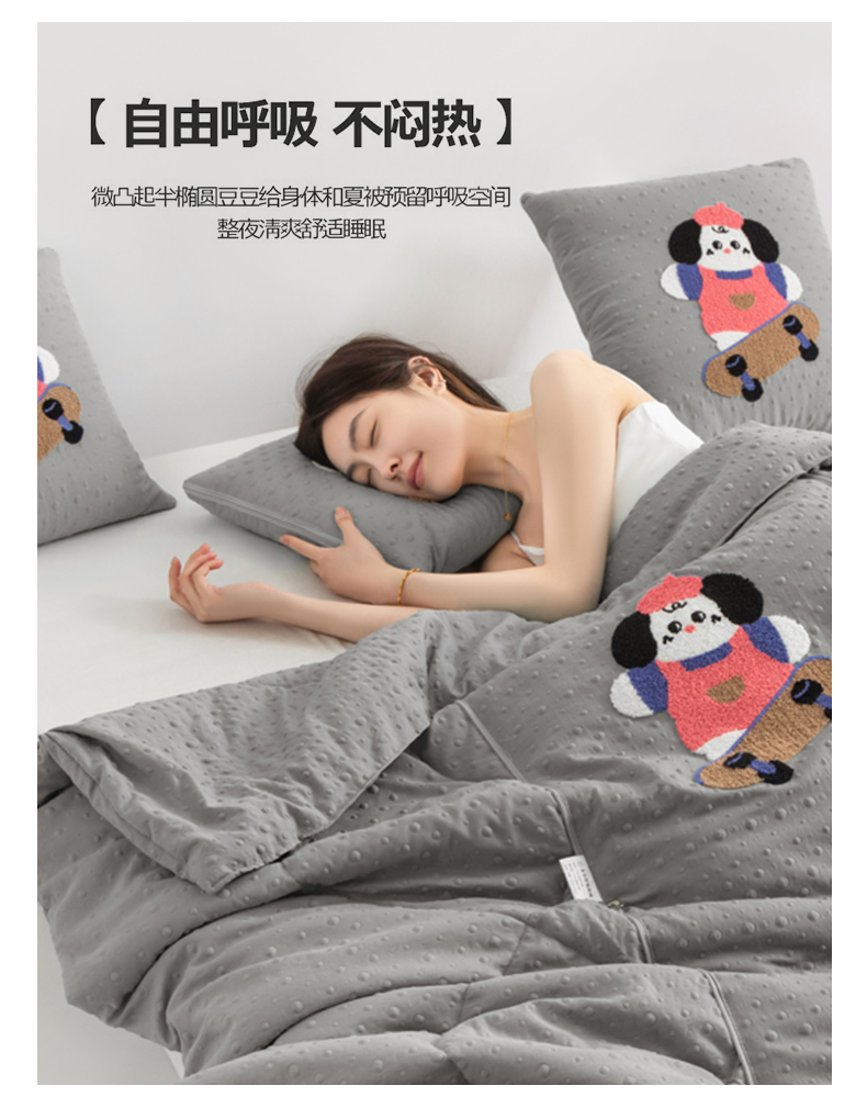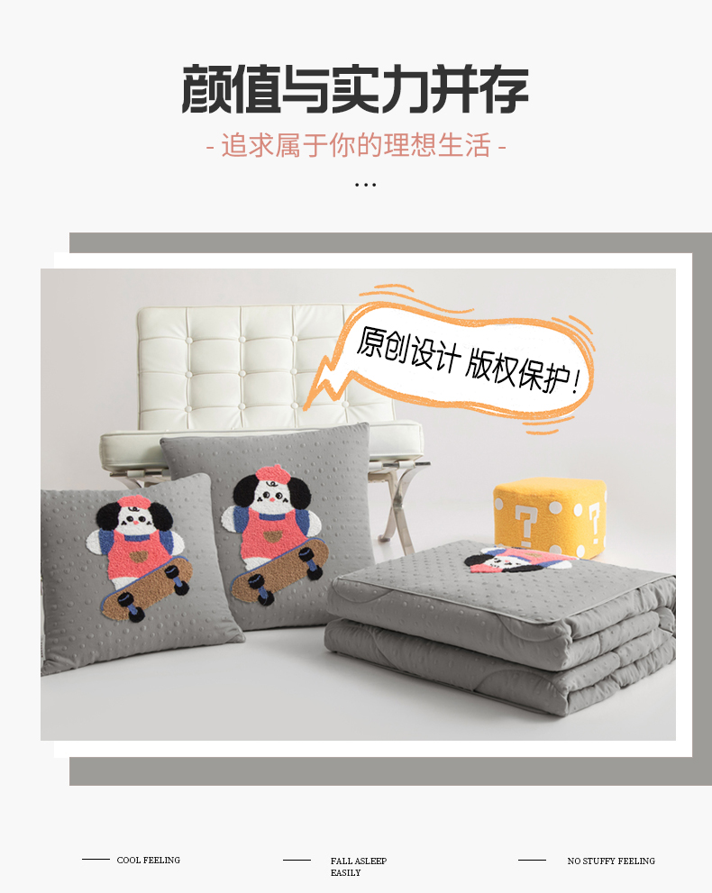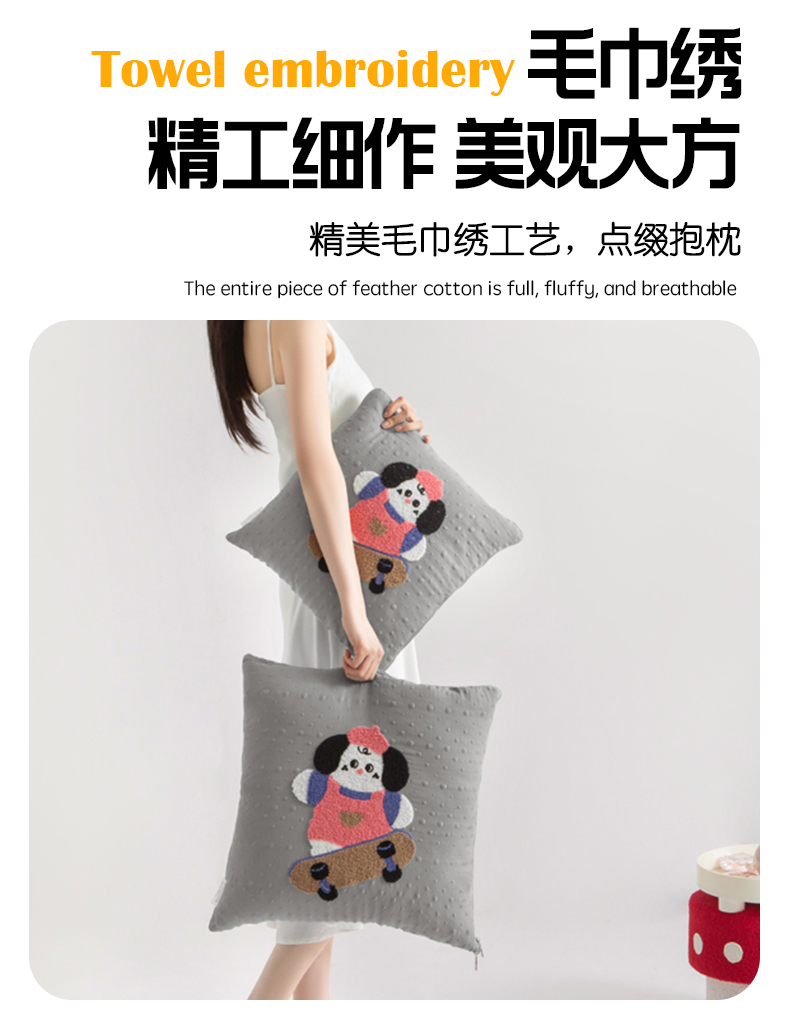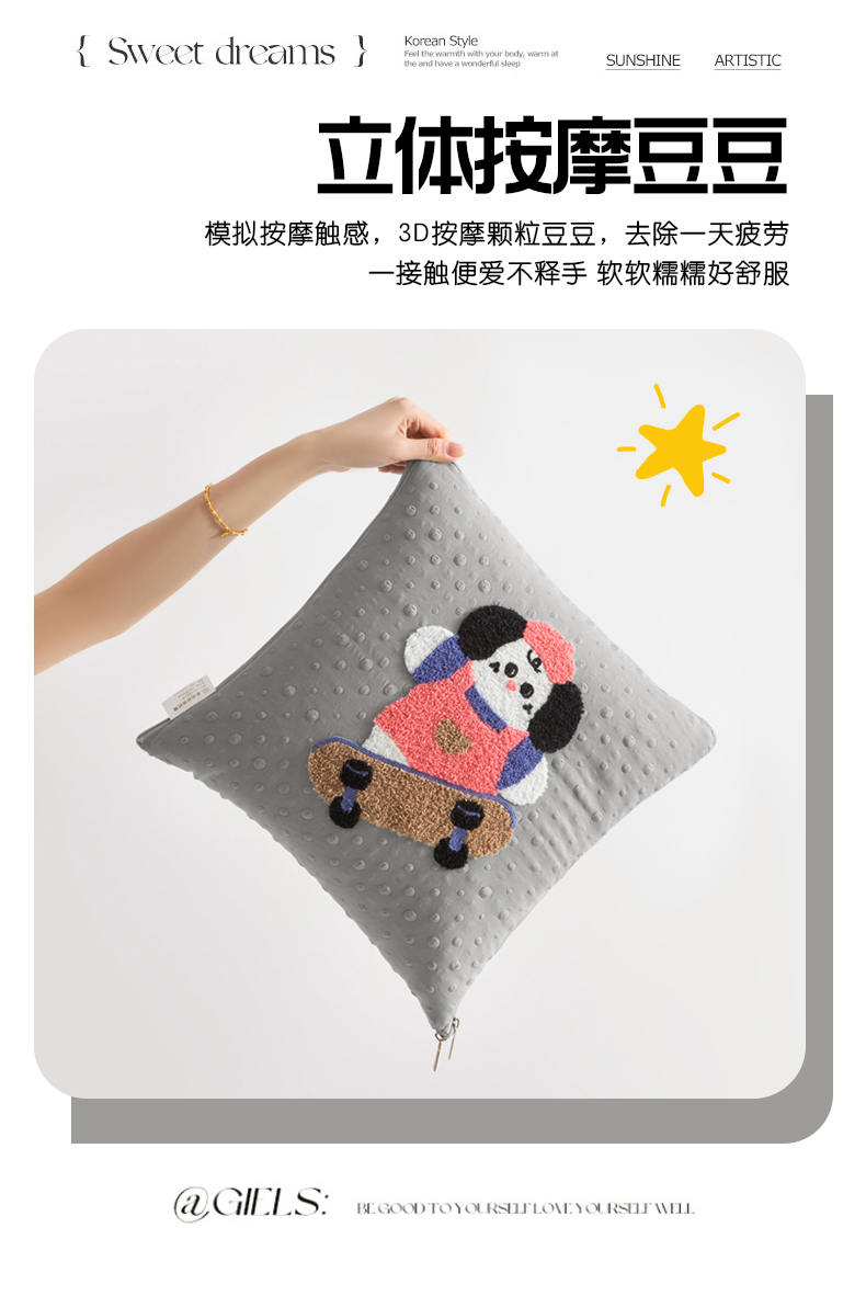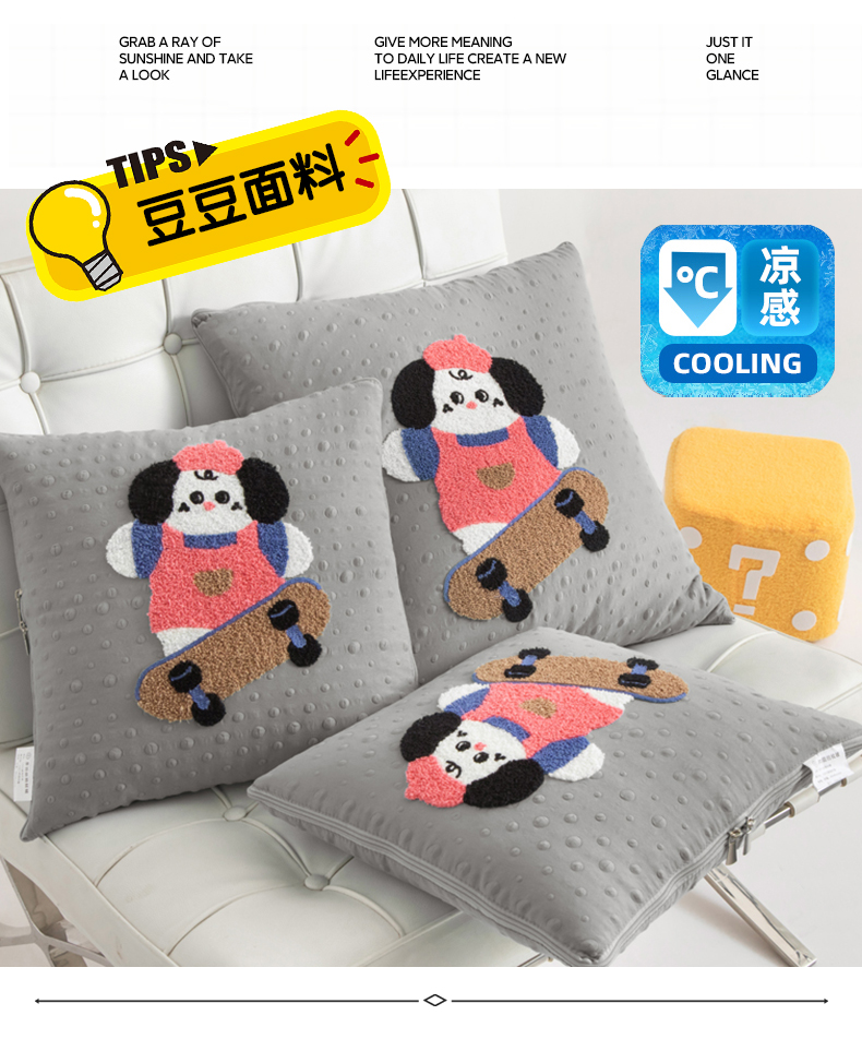 商品名称:雷娜家居 2025新款针织双层纱系列豆豆抱枕被-滑板狗 烟灰色