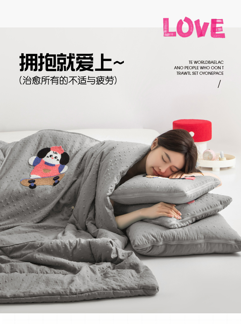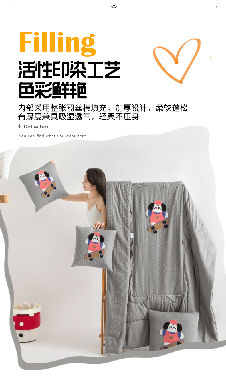 雷娜家居 2025新款针织双层纱系列豆豆抱枕被-滑板狗 烟灰色