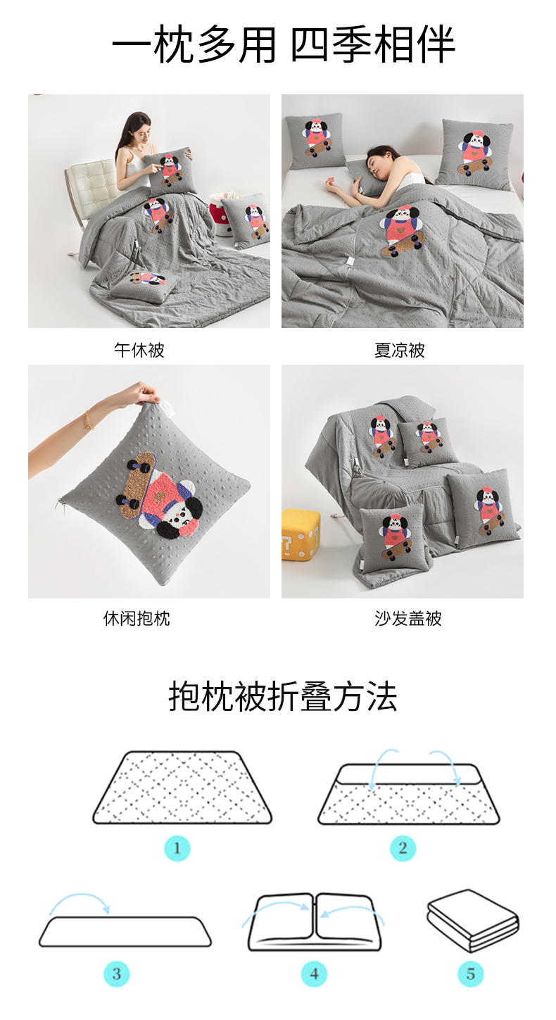 (总)雷娜家居 特色手提款帆布面料卡通绣花抱枕被,手提大眼萌,手提小怪鱼,熊猫艾草绿