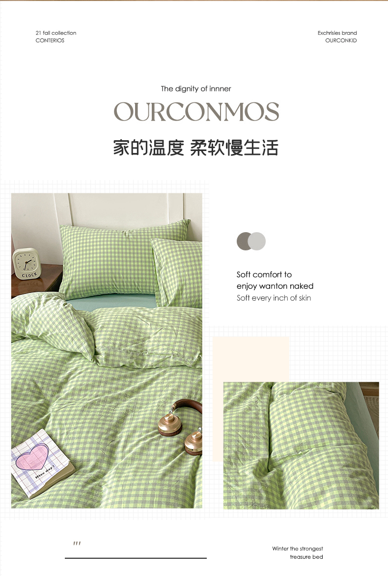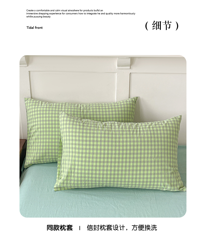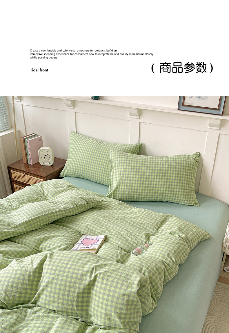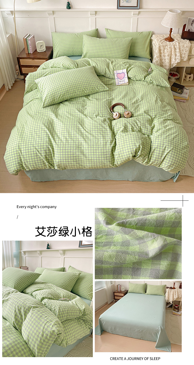当前位置: 91家纺网 > 商品网购 > 床品套件 > 四件套 > 水洗棉四件套 > 大柏树 2025新款全棉水洗棉套件-床笠四件套 艾莎绿小格