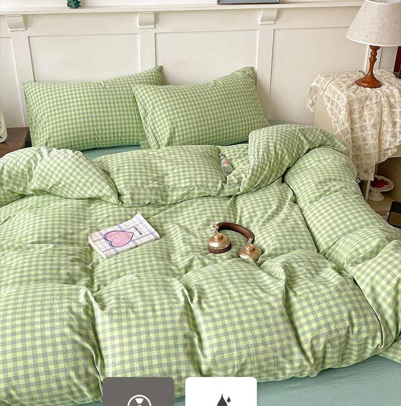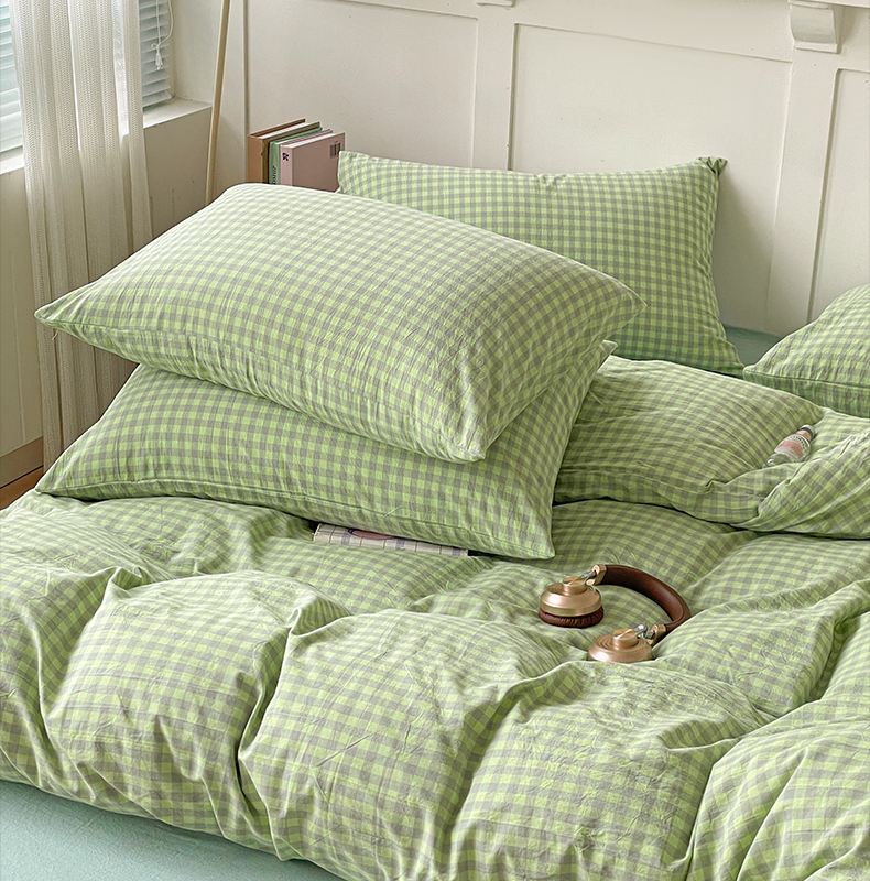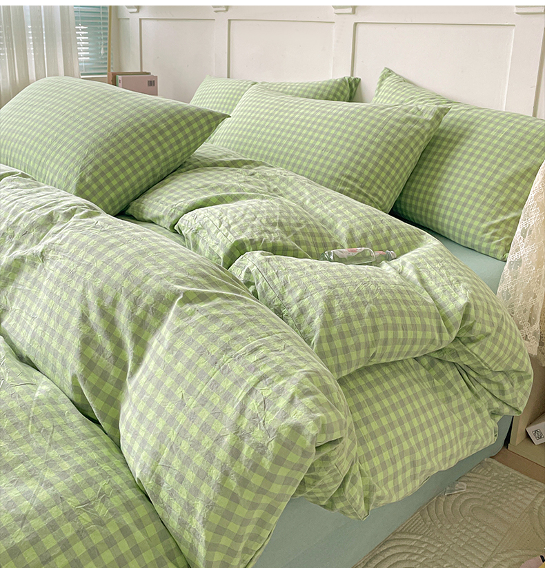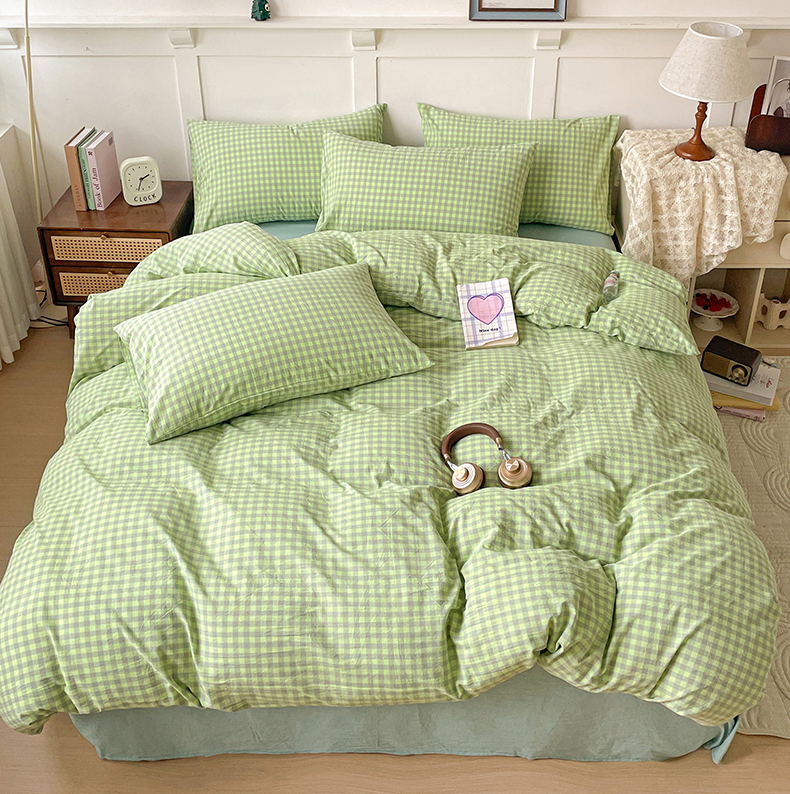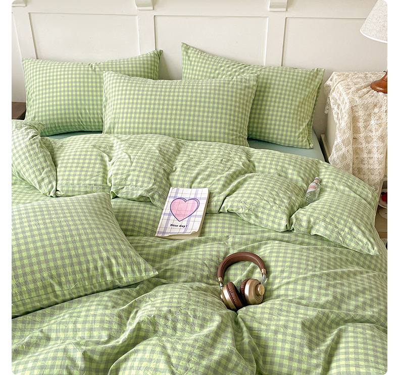 当前位置: 91家纺网 > 商品网购 > 床品套件 > 四件套 > 水洗棉四件套 > 大柏树 2025新款全棉水洗棉套件-床笠四件套 艾莎绿小格