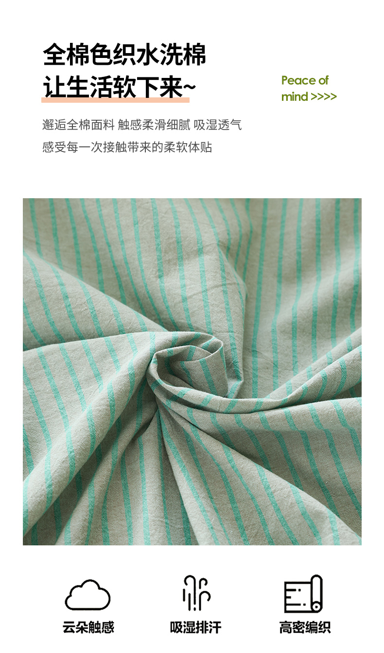 当前位置: 91家纺网 > 商品网购 > 床品套件 > 四件套 > 全棉普通四件套 > 柠萌家居 2025年新款色织条纹水洗棉全棉四件套 绿紫条