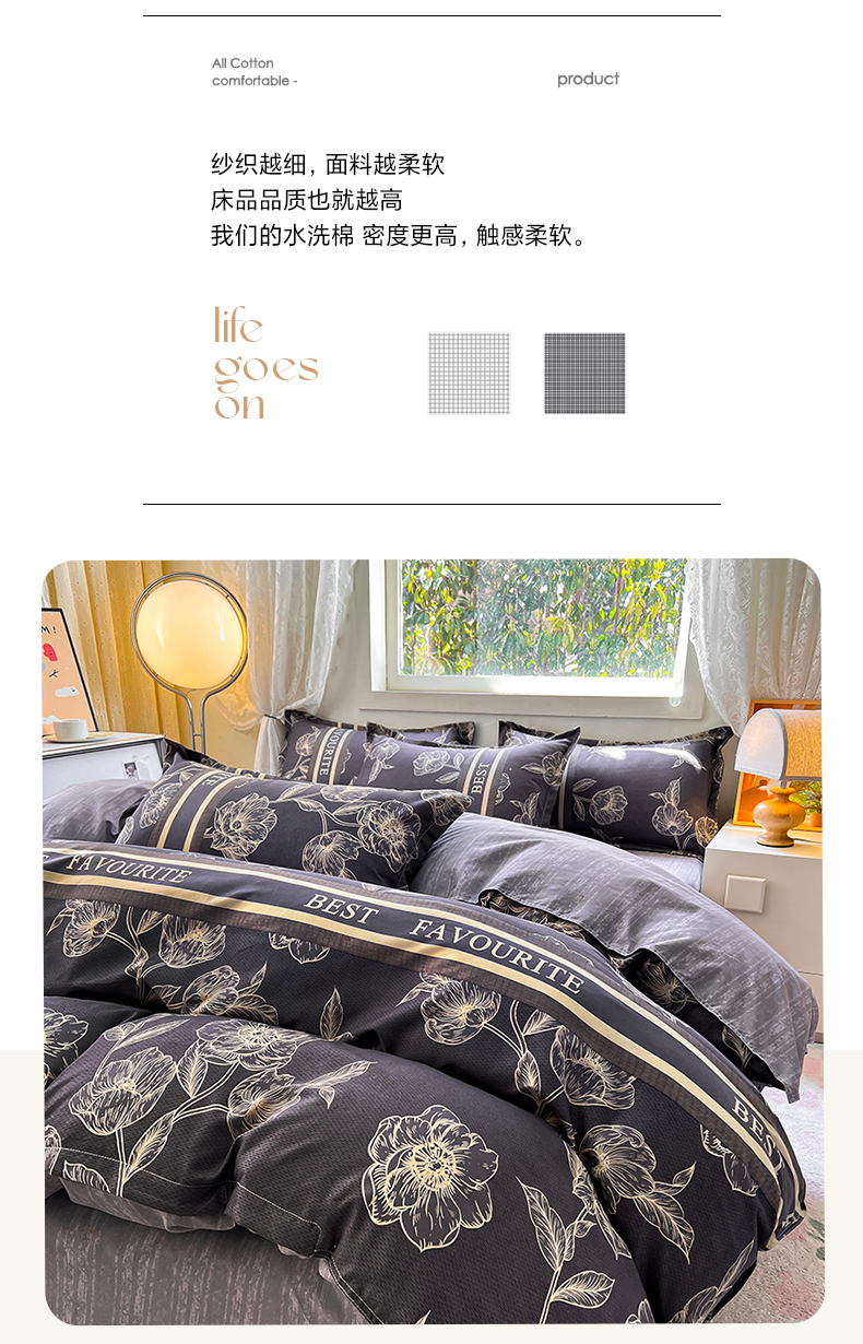 (总)曼璐家纺 2025新款小清新芦荟棉印花四件套,朝花夕拾,初夏,可可西里,喵星人,叶雨,初夏