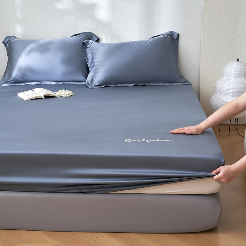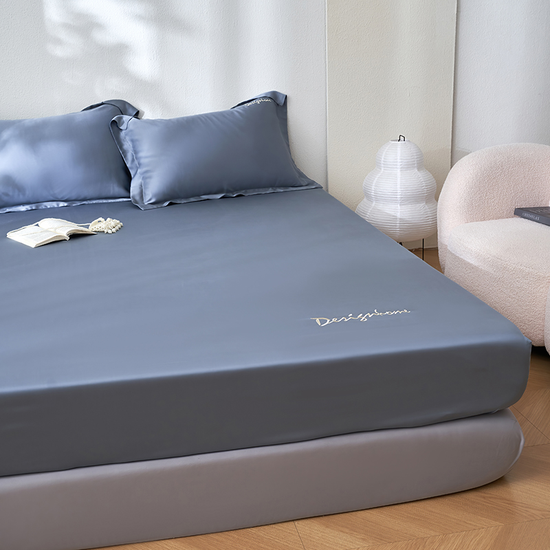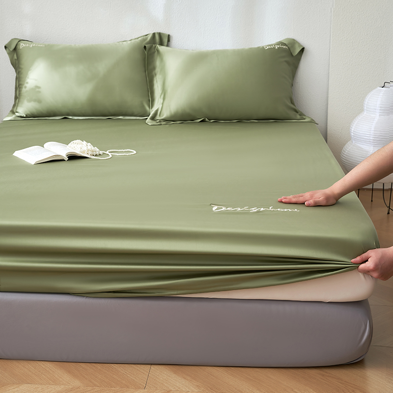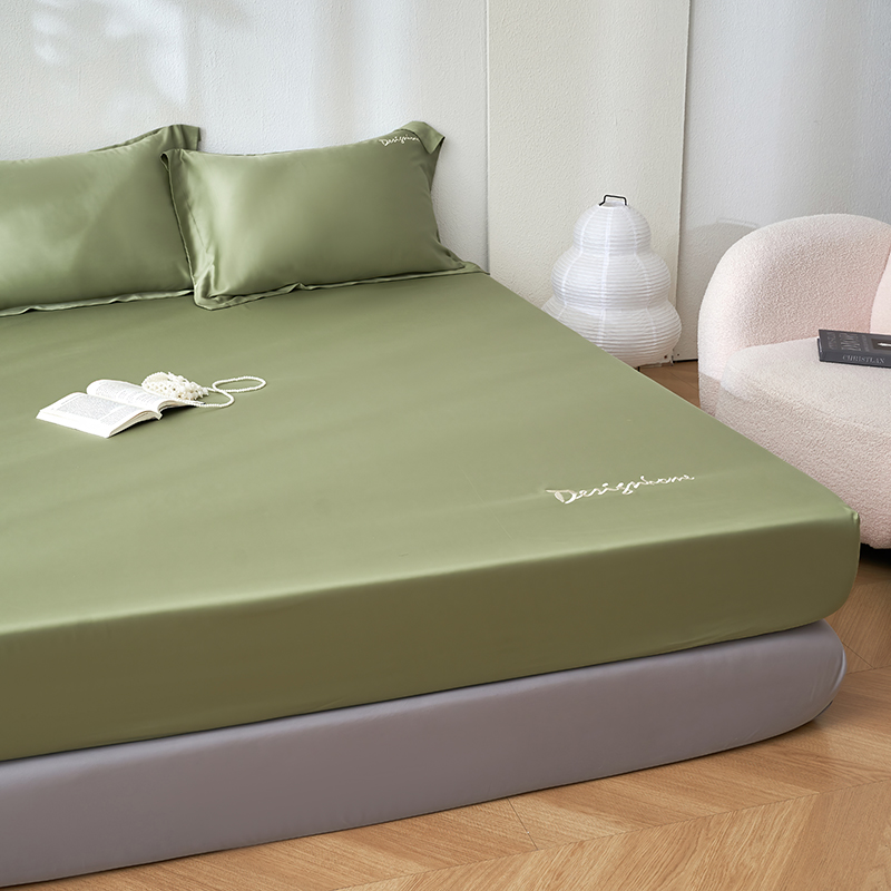 黛舒家居 2025新款60S兰精天丝纯色简绣单床笠 松绿