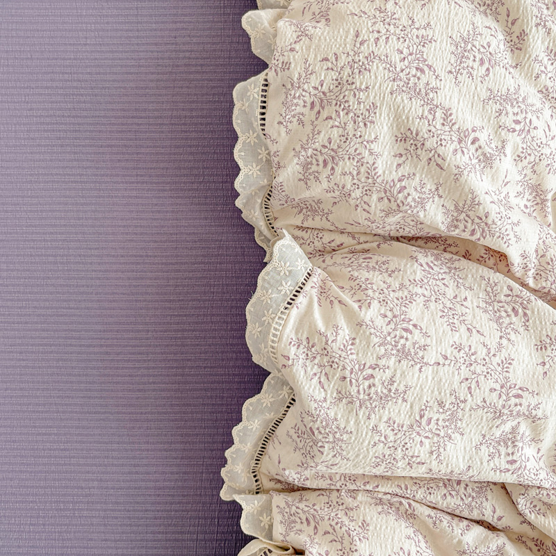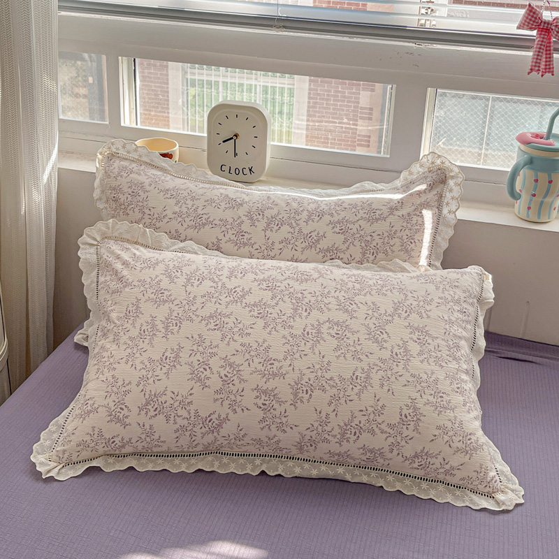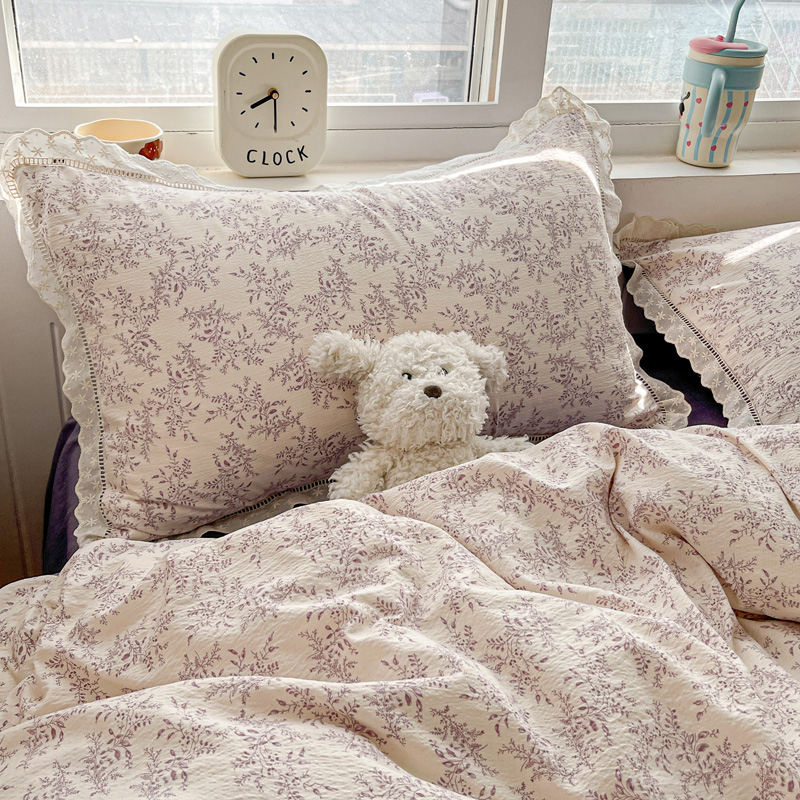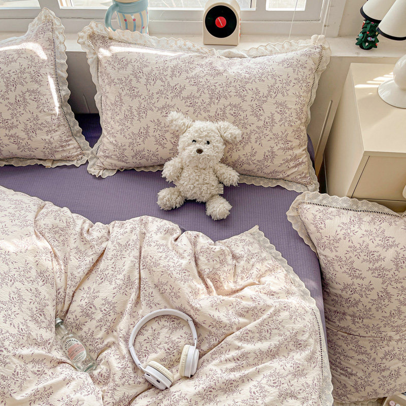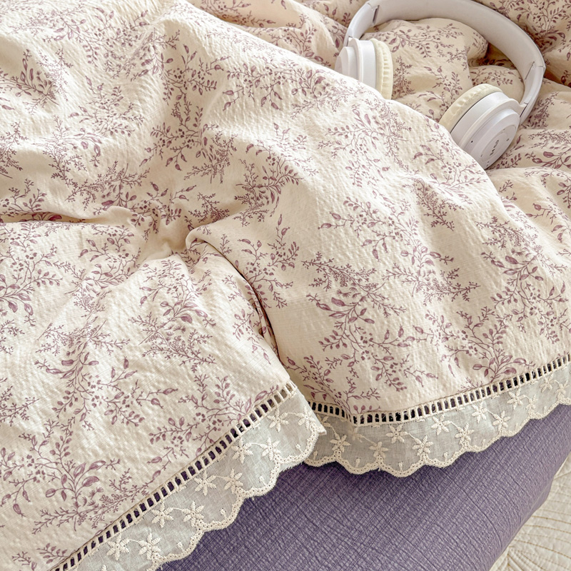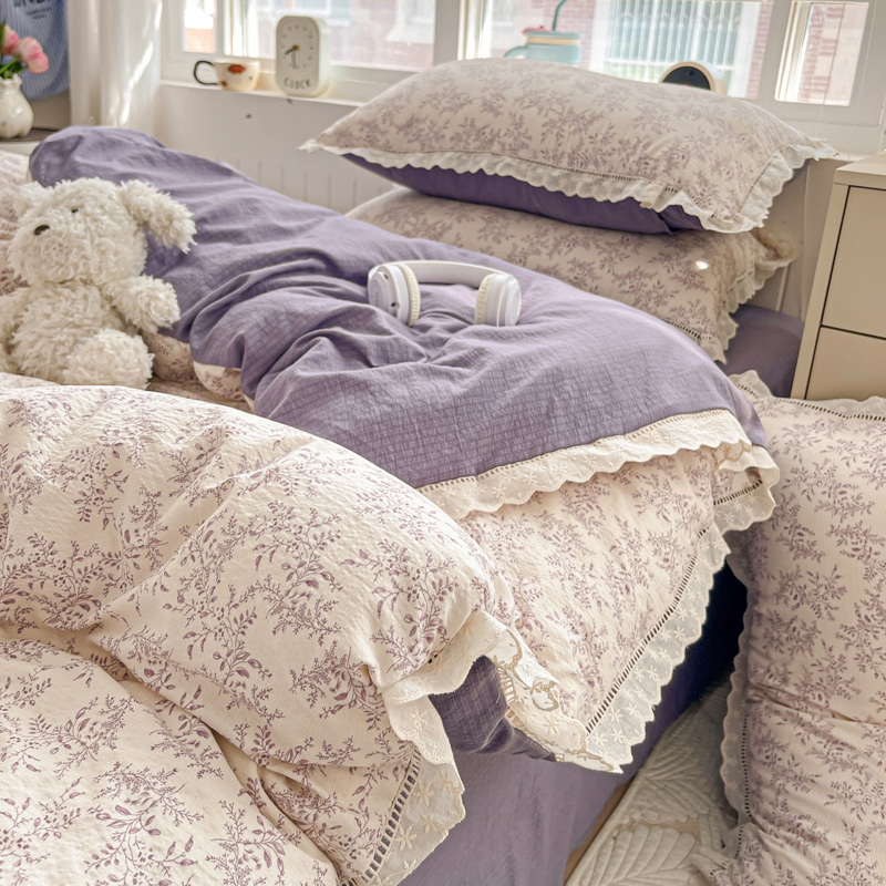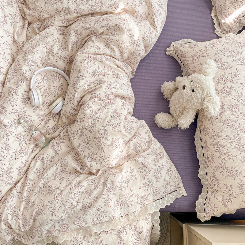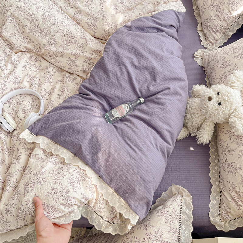 仟网汇 2025新款云感皱皱双层纱全棉花边四件套 紫苏