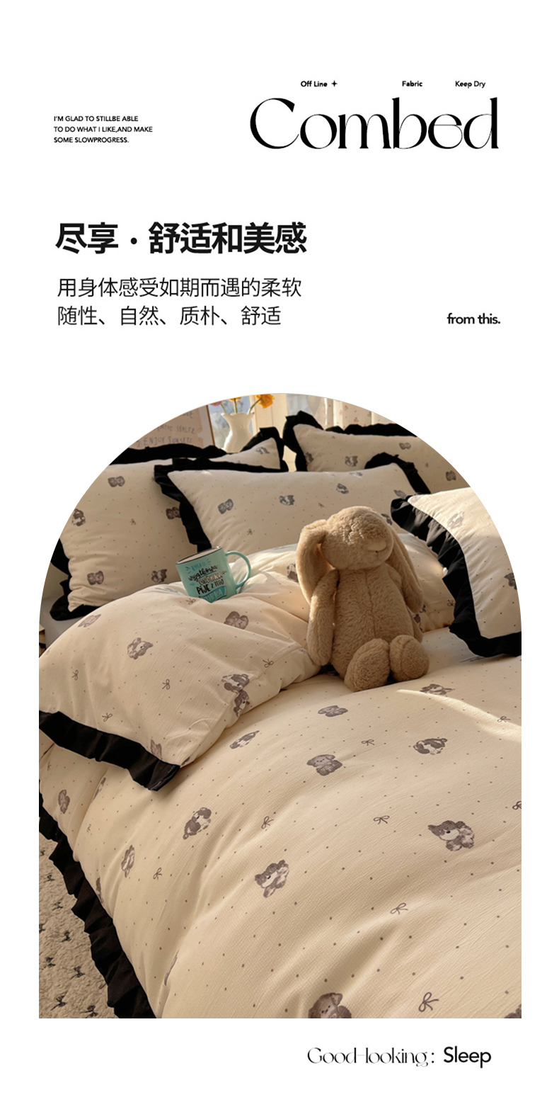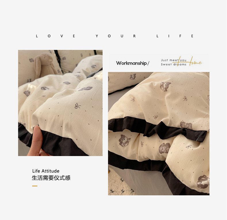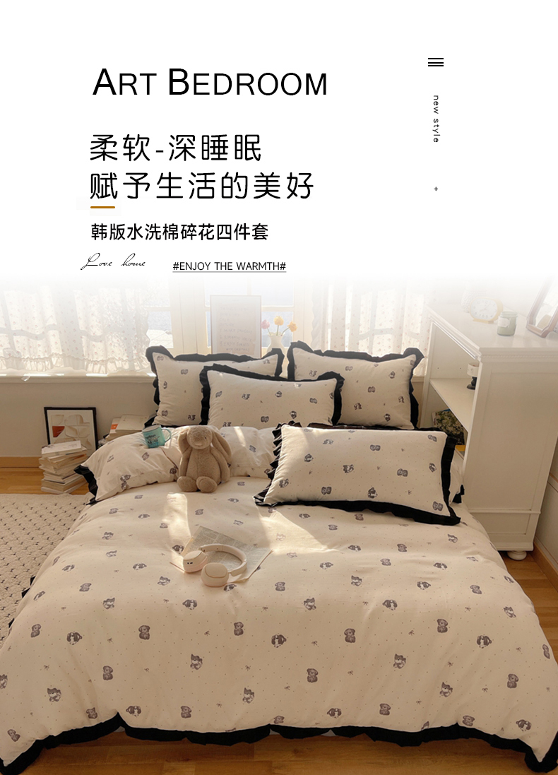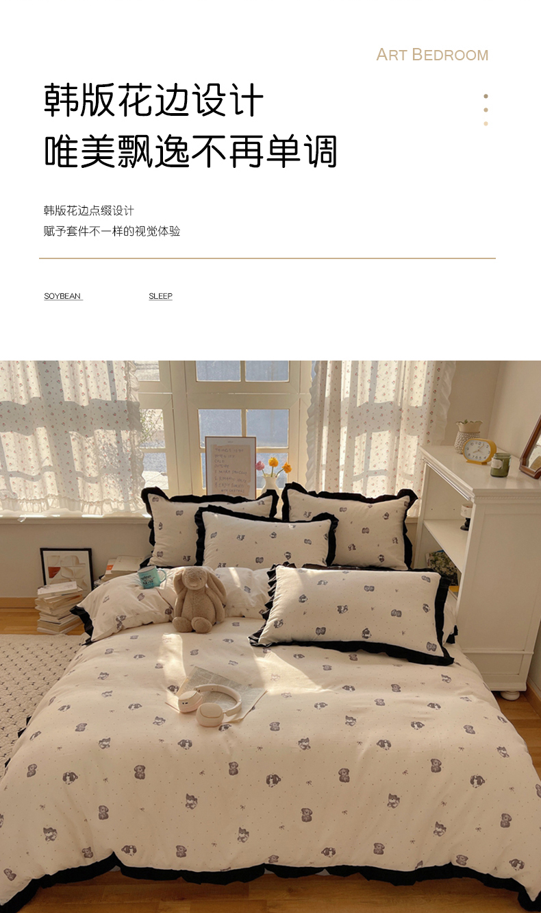商品名称:红嘴企鹅 2025新款双层纱水洗棉赫本风四件套 赫本风-哈基米