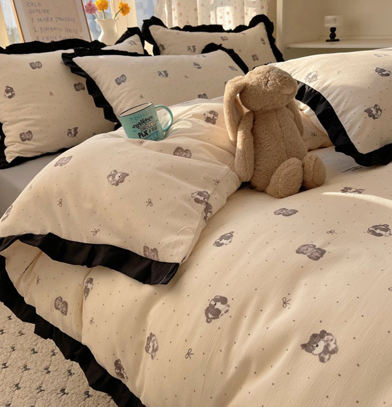 红嘴企鹅 2025新款双层纱水洗棉赫本风四件套 赫本风-哈基米