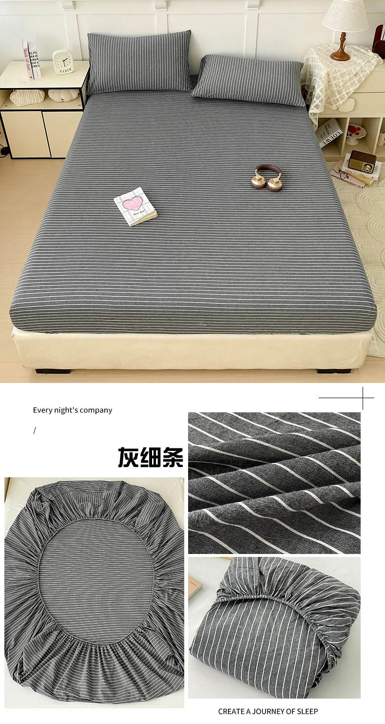 2025新款全棉水洗棉套件-单床笠 灰细条