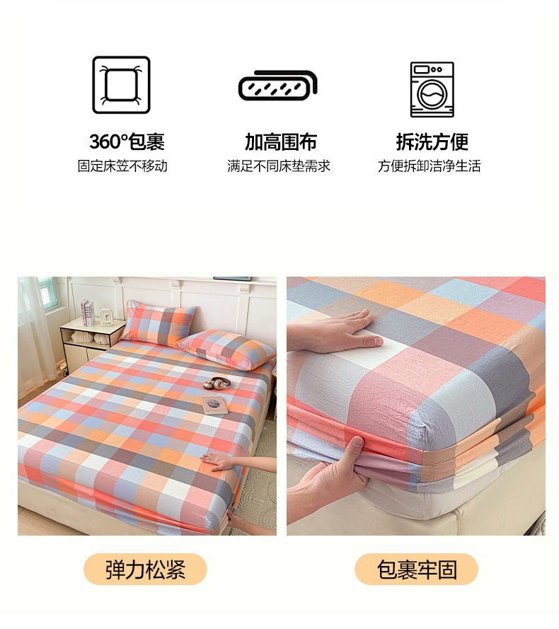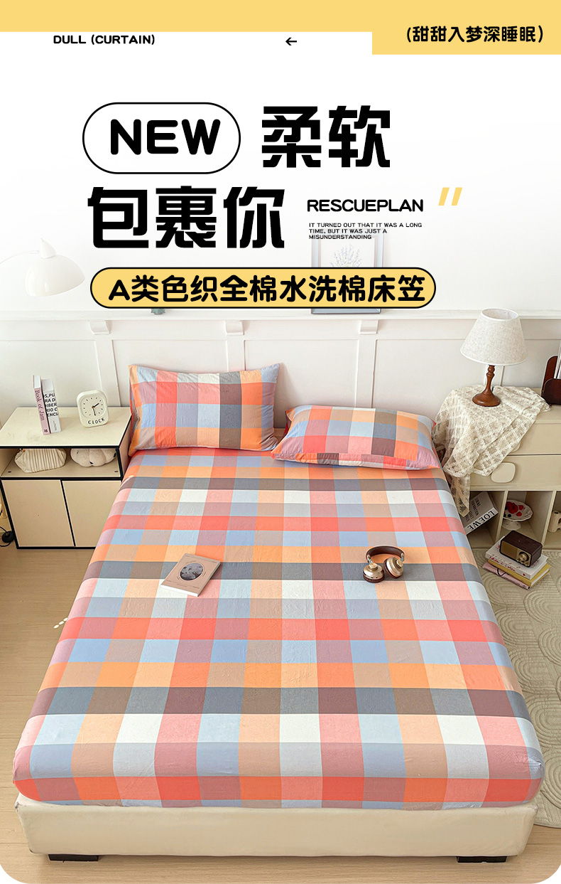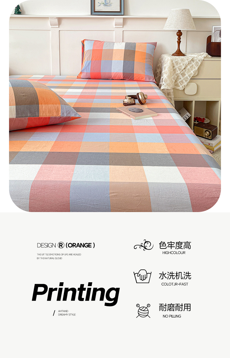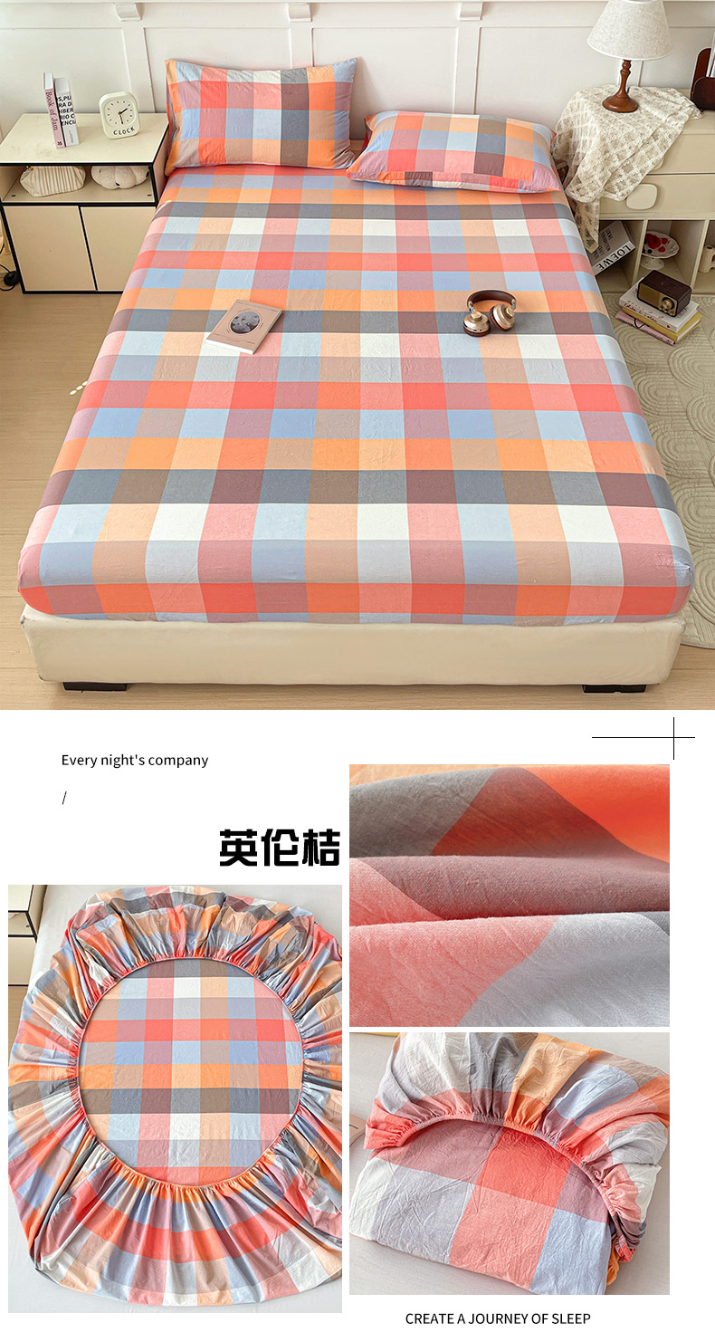 商品名称:2025新款全棉水洗棉套件-单床笠 英伦桔