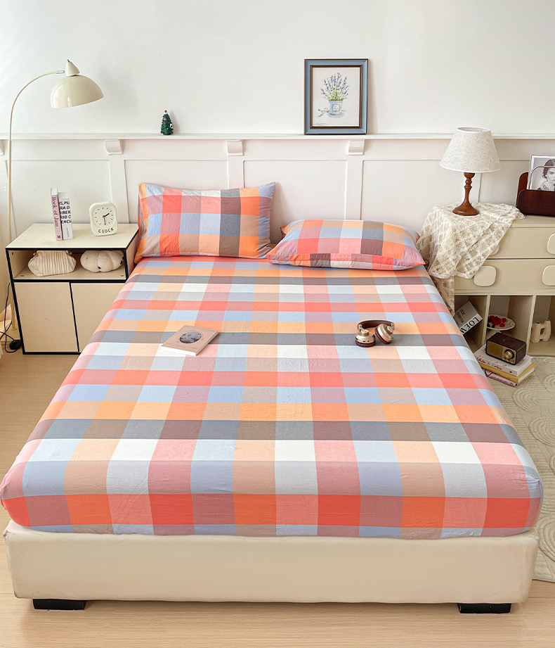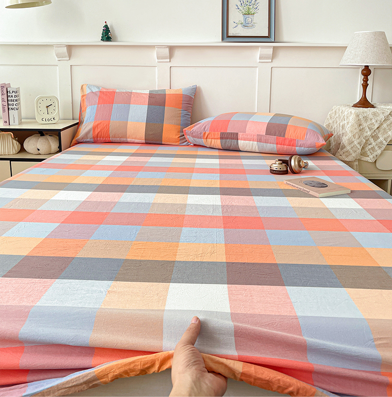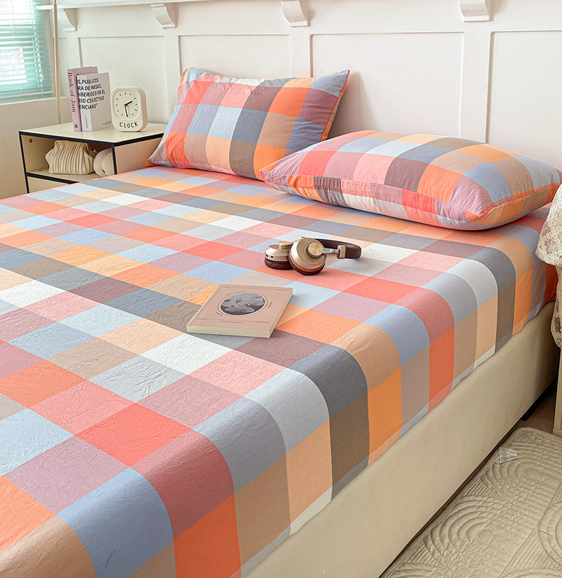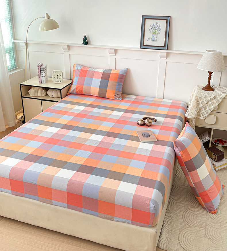 2025新款全棉水洗棉套件-单床笠 英伦桔