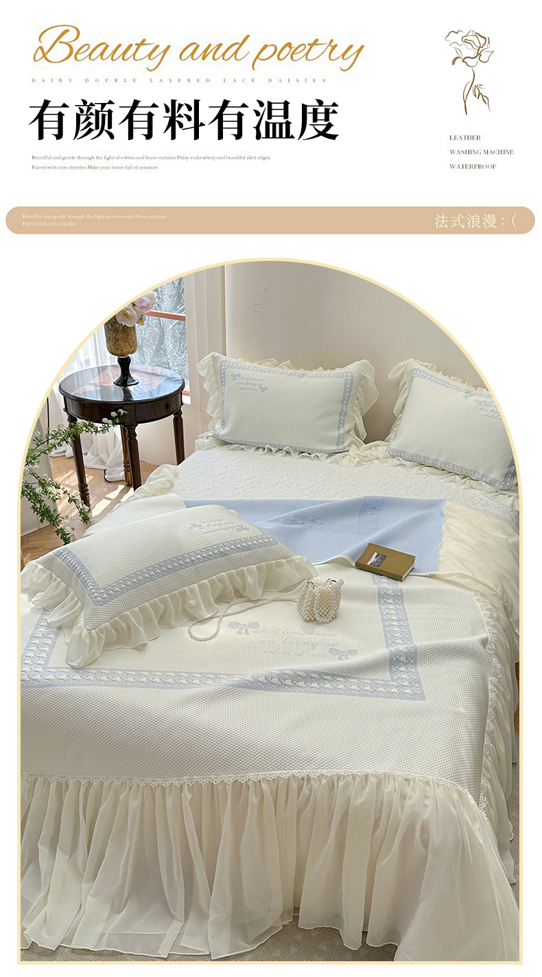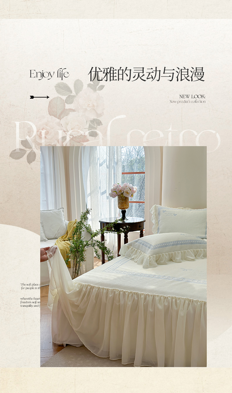 (总)婳庭家居 2025新款双层纱褶皱花边款四件套,春野来信,繁梦,玫瑰故事,清秋,云上,紫萱