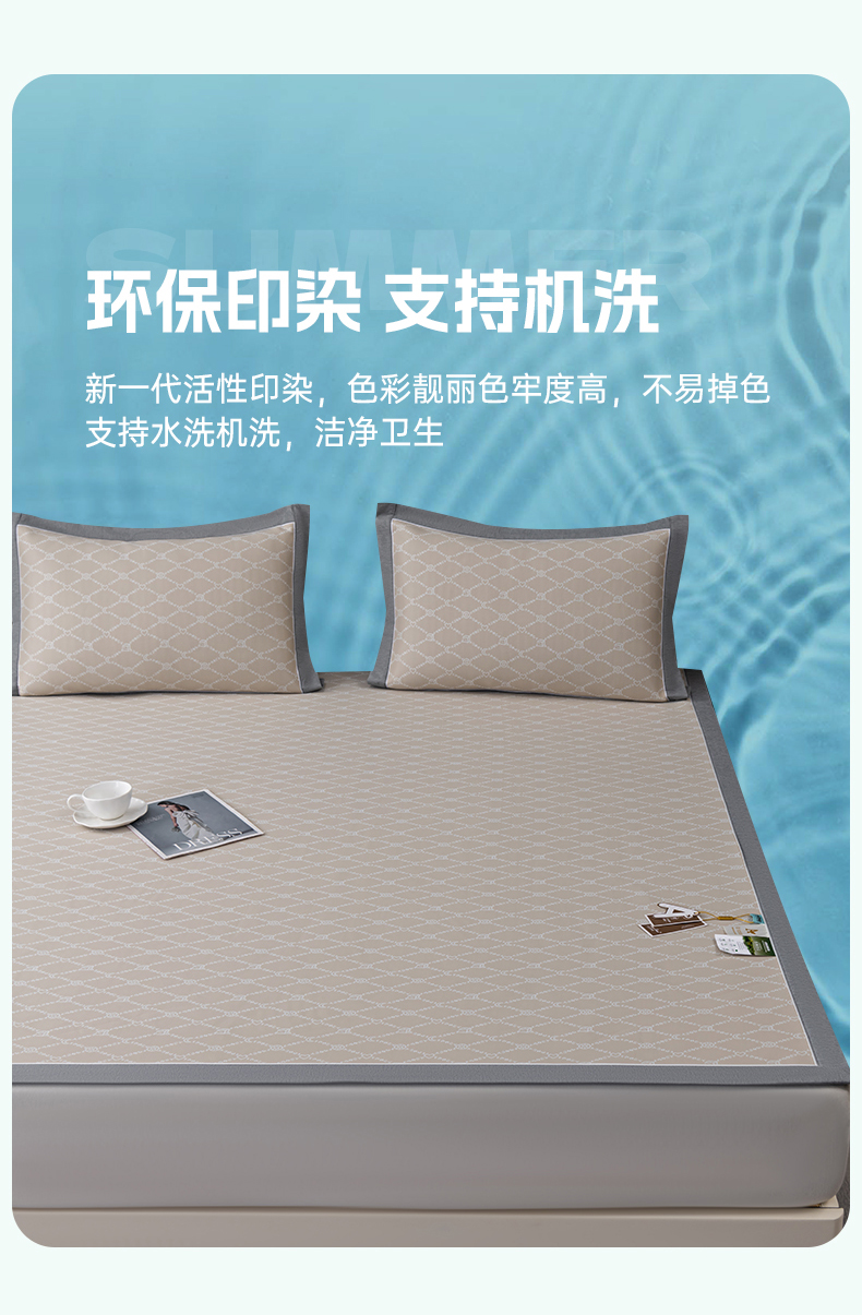 (总)2023新款超精密冰丝席-小斜纹系列-床笠款藤席凉席竹席,粉色,蓝色,绿色,银灰