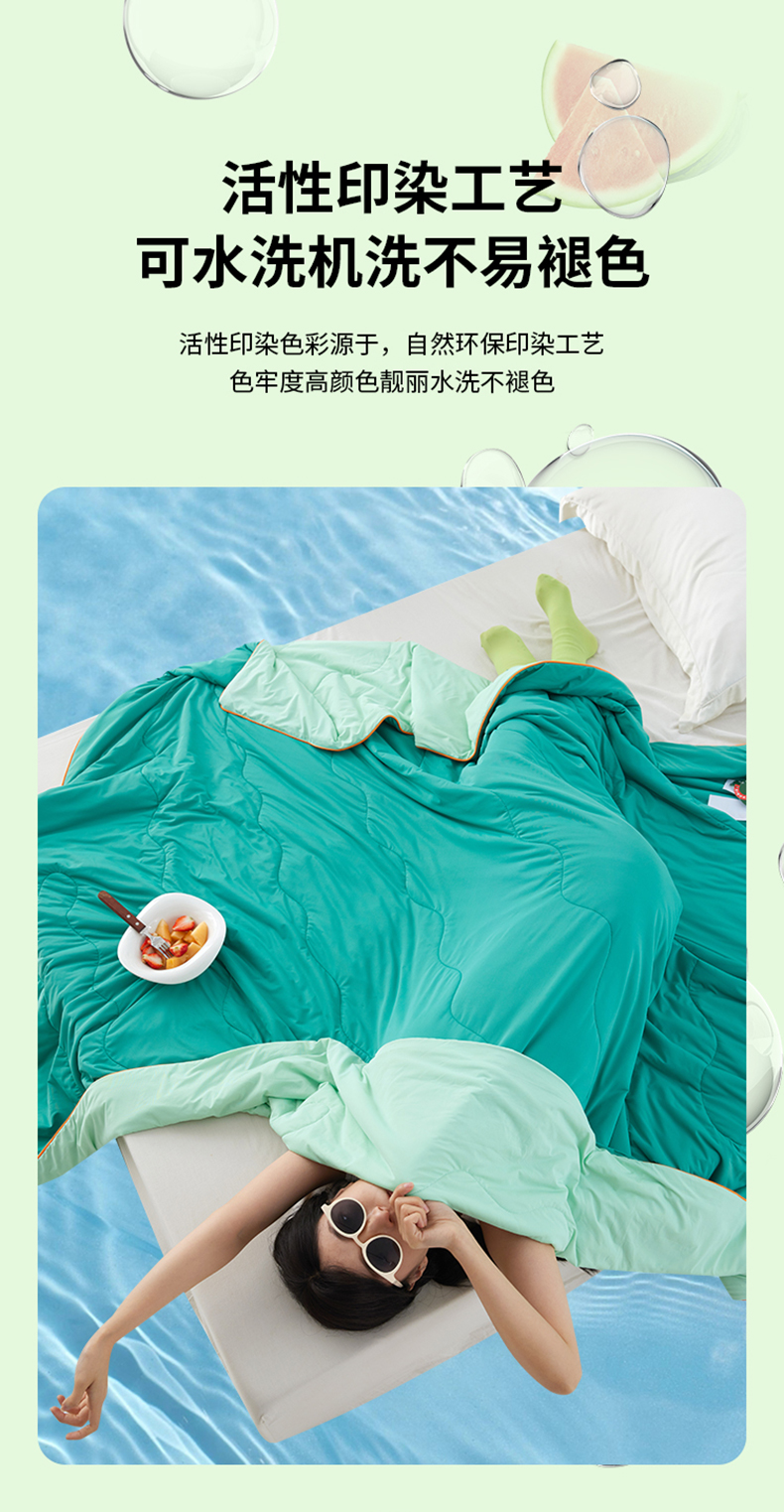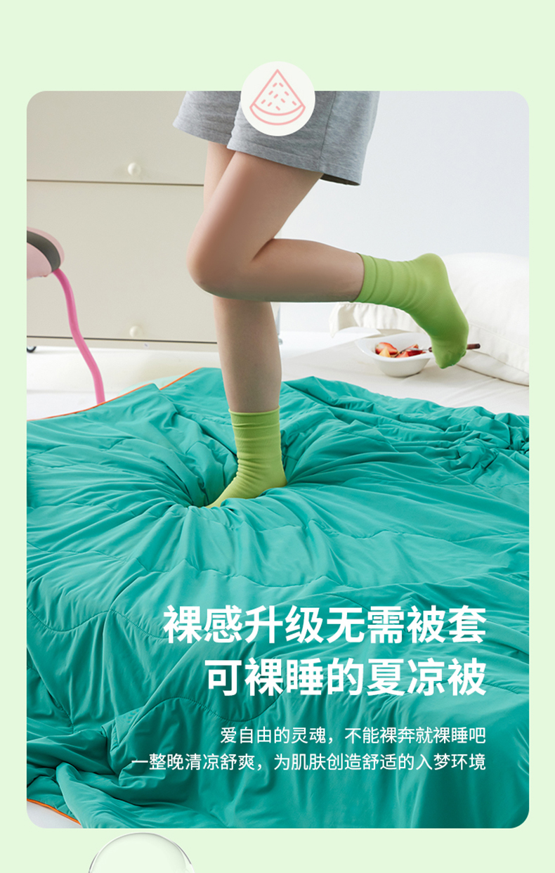 商品名称:2025春夏新款A类母婴级西瓜啵啵凉感被锦氨夏凉被空调被 西瓜绿+青柠绿