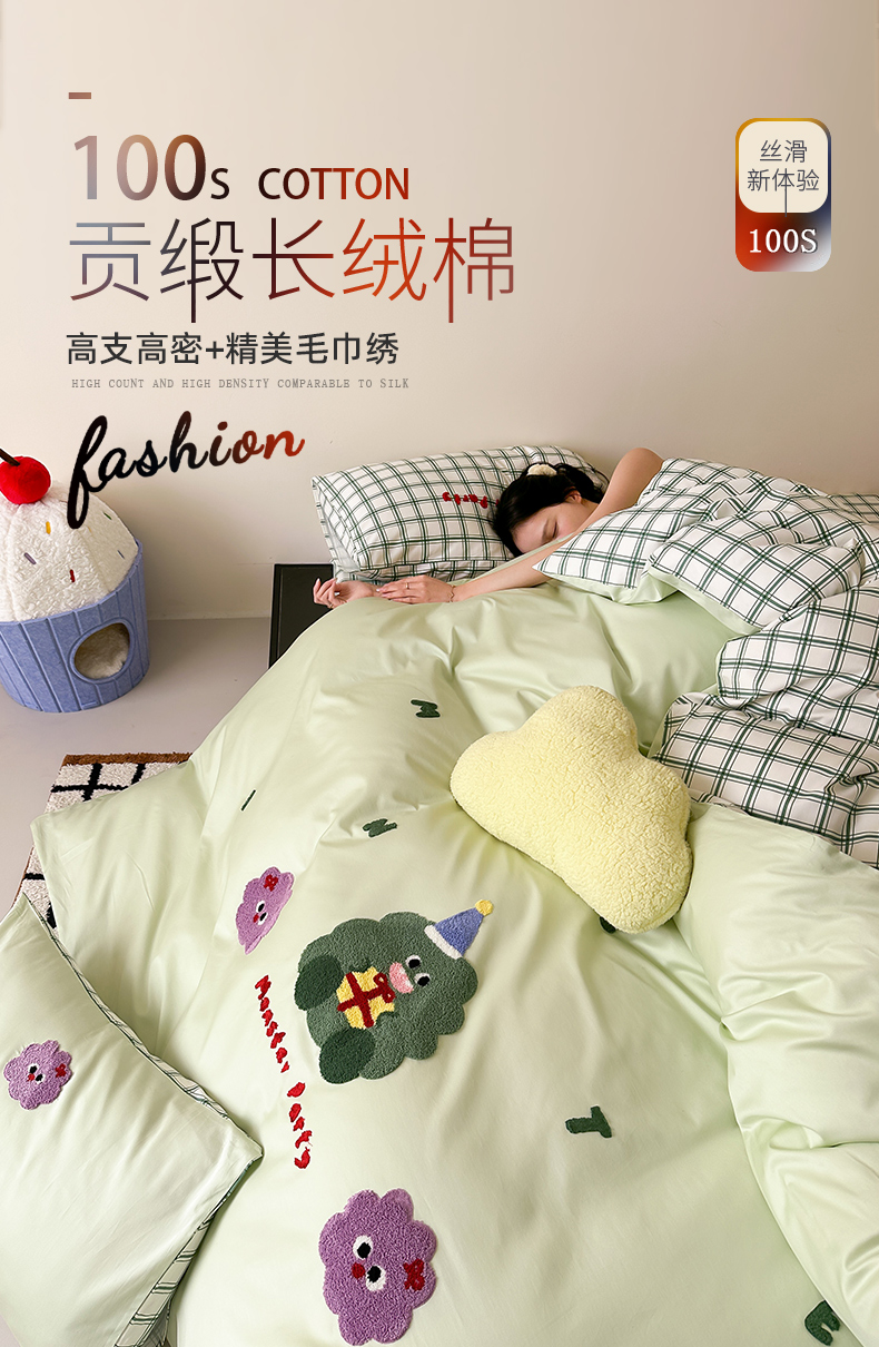当前位置: 91家纺网 > 商品网购 > 床品套件 > 四件套 > 其它四件套 > 时光里 2025新款100S卡通风贡缎毛巾绣四件套 许愿树