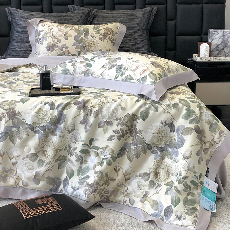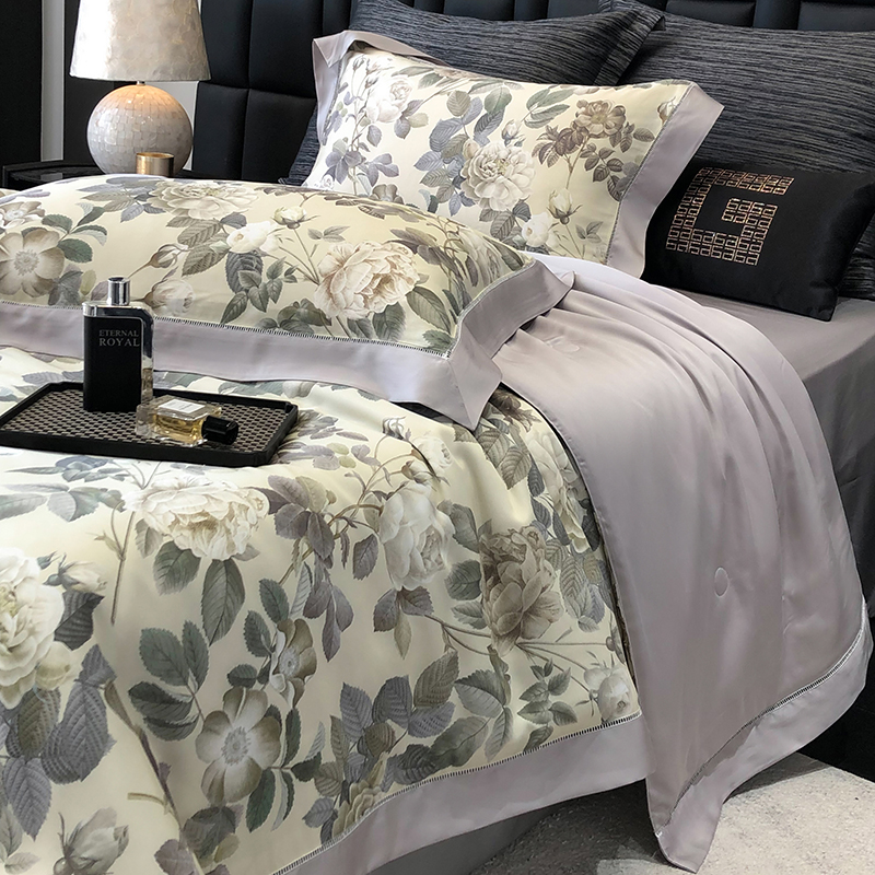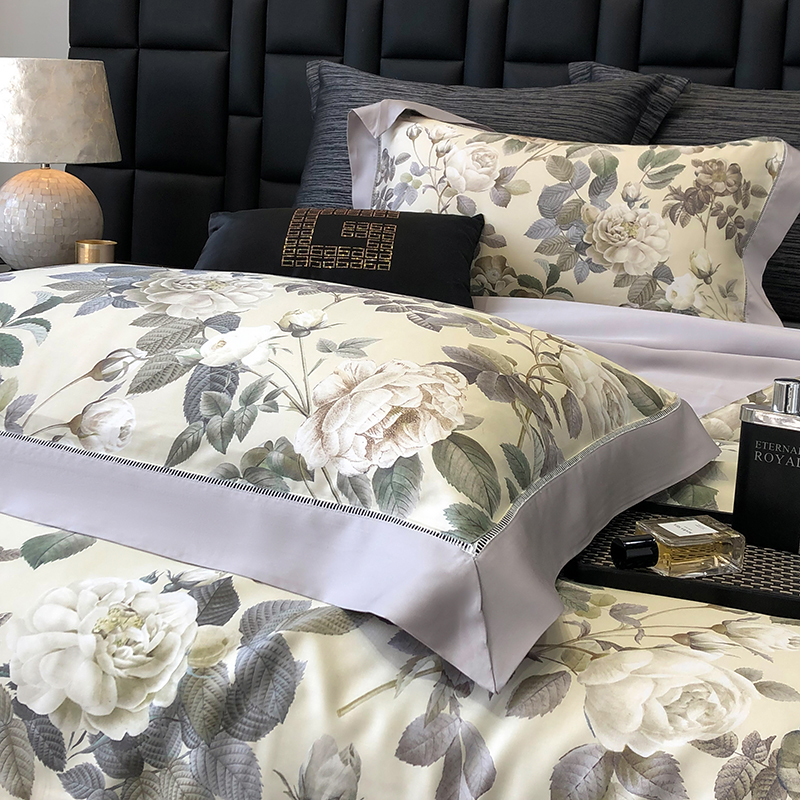 (总)若未家居 LOVEWE HOUSE 2026新款100S数码印花轻奢风四件套-波澜,波澜 爵士灰,波澜 公主粉,波澜 贝拉橘