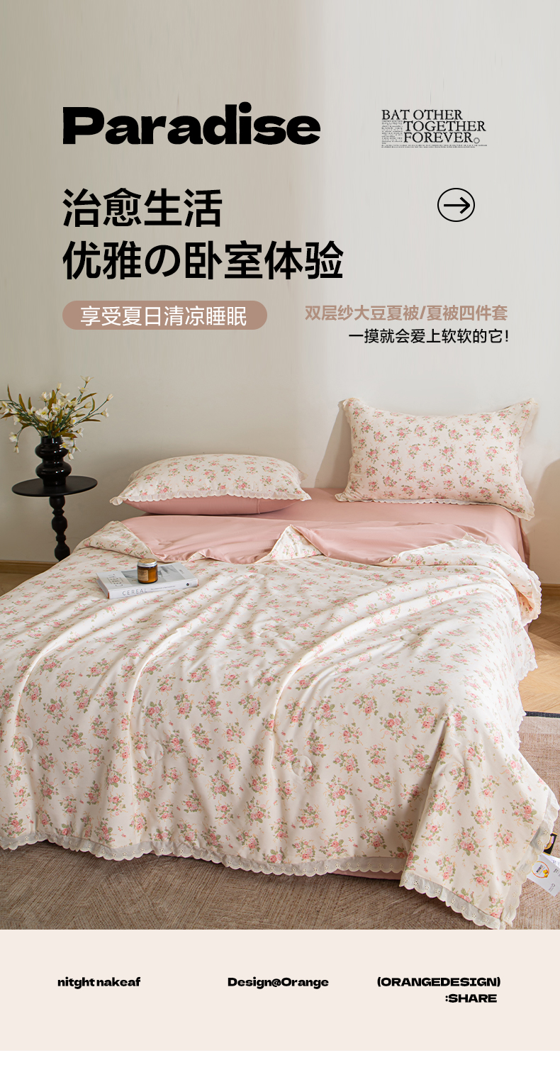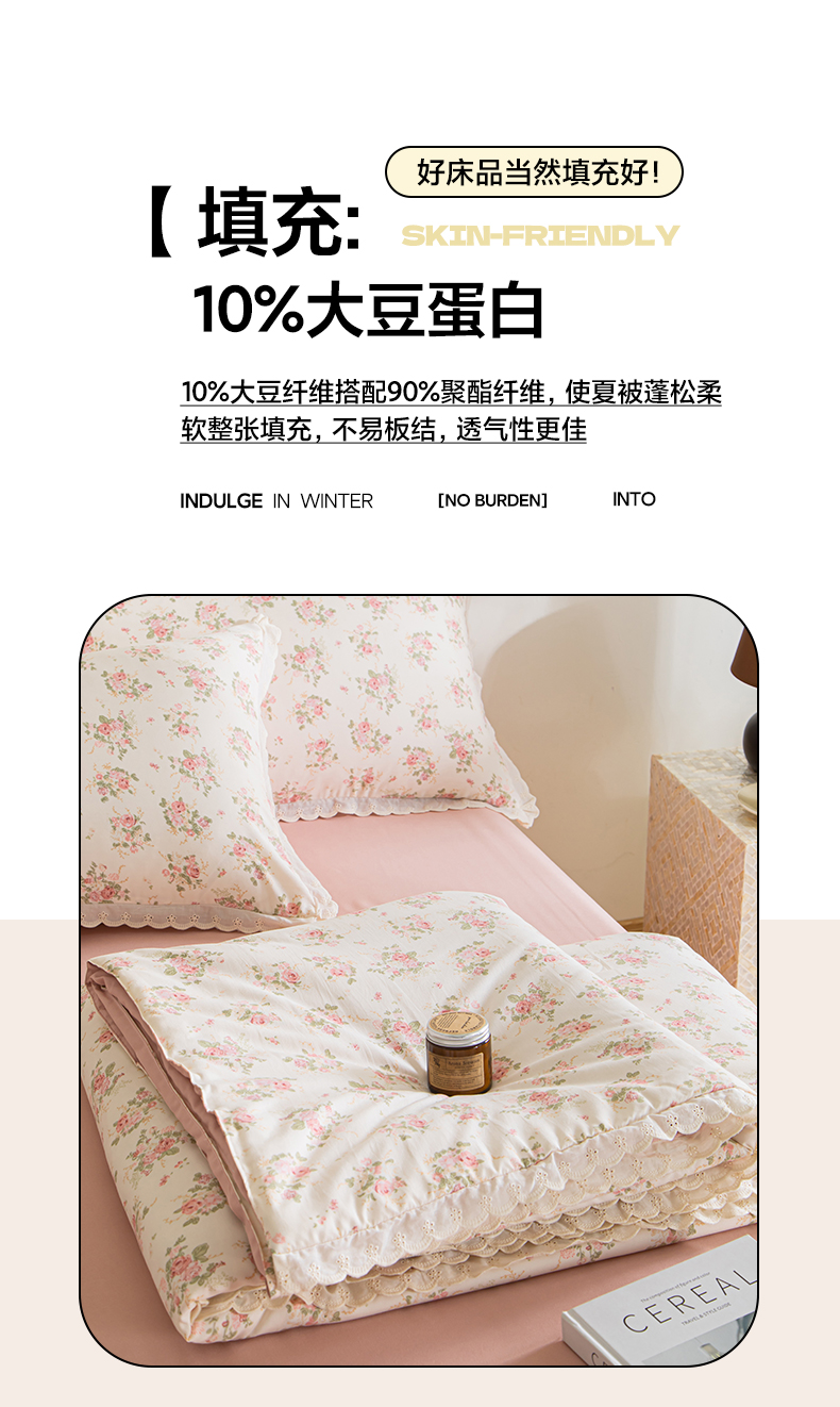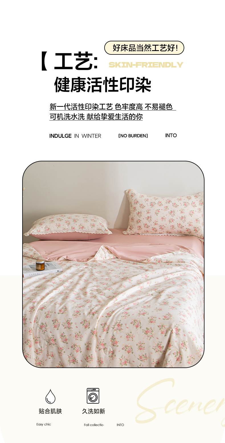 商品名称:玛德琳 2025新款双层纱大豆夏凉被空调被夏被四件套 艾莉花园