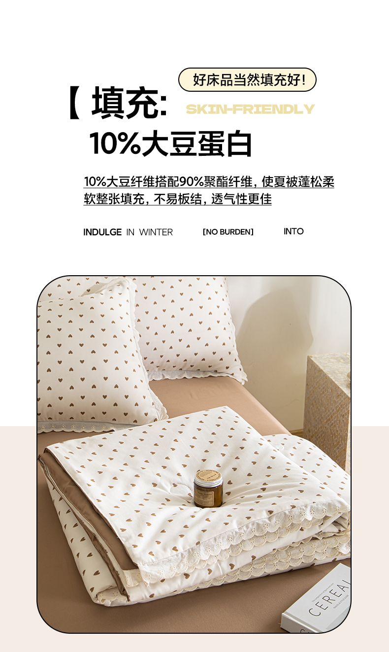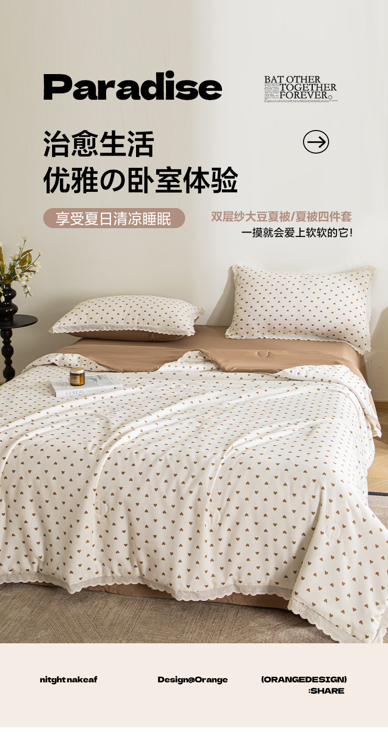 商品名称:玛德琳 2025新款双层纱大豆夏凉被空调被夏被四件套 小心情