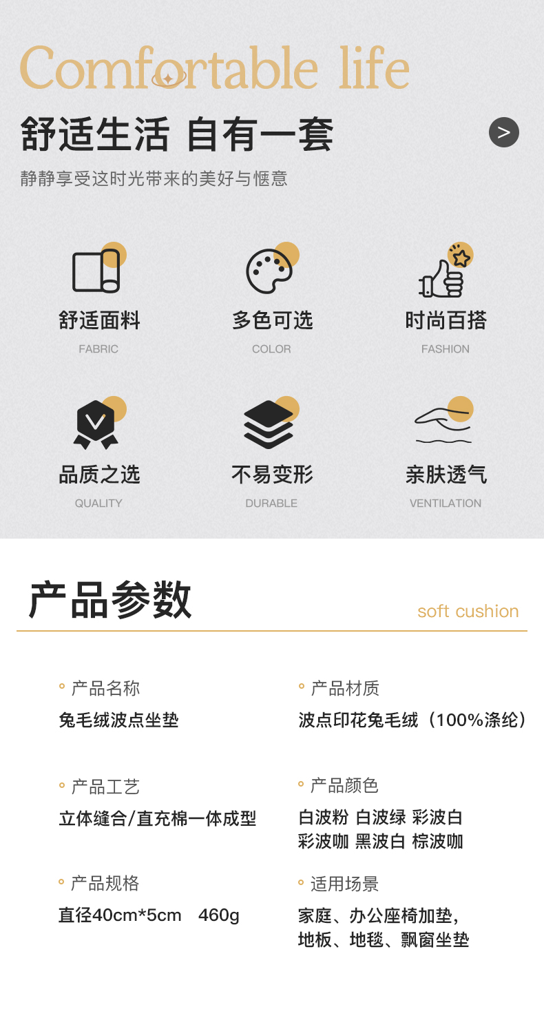 商品名称:美茉家居 2025新款兔毛绒波点坐垫 棕波咖