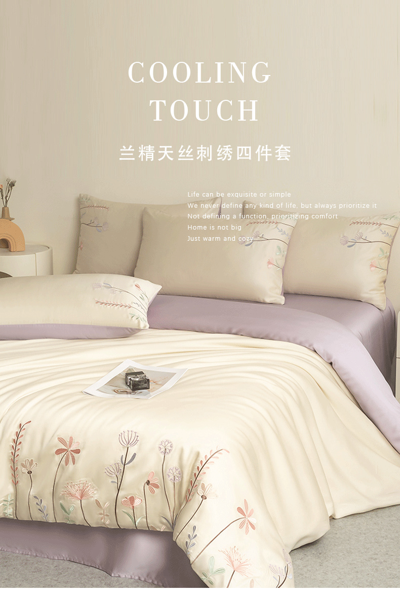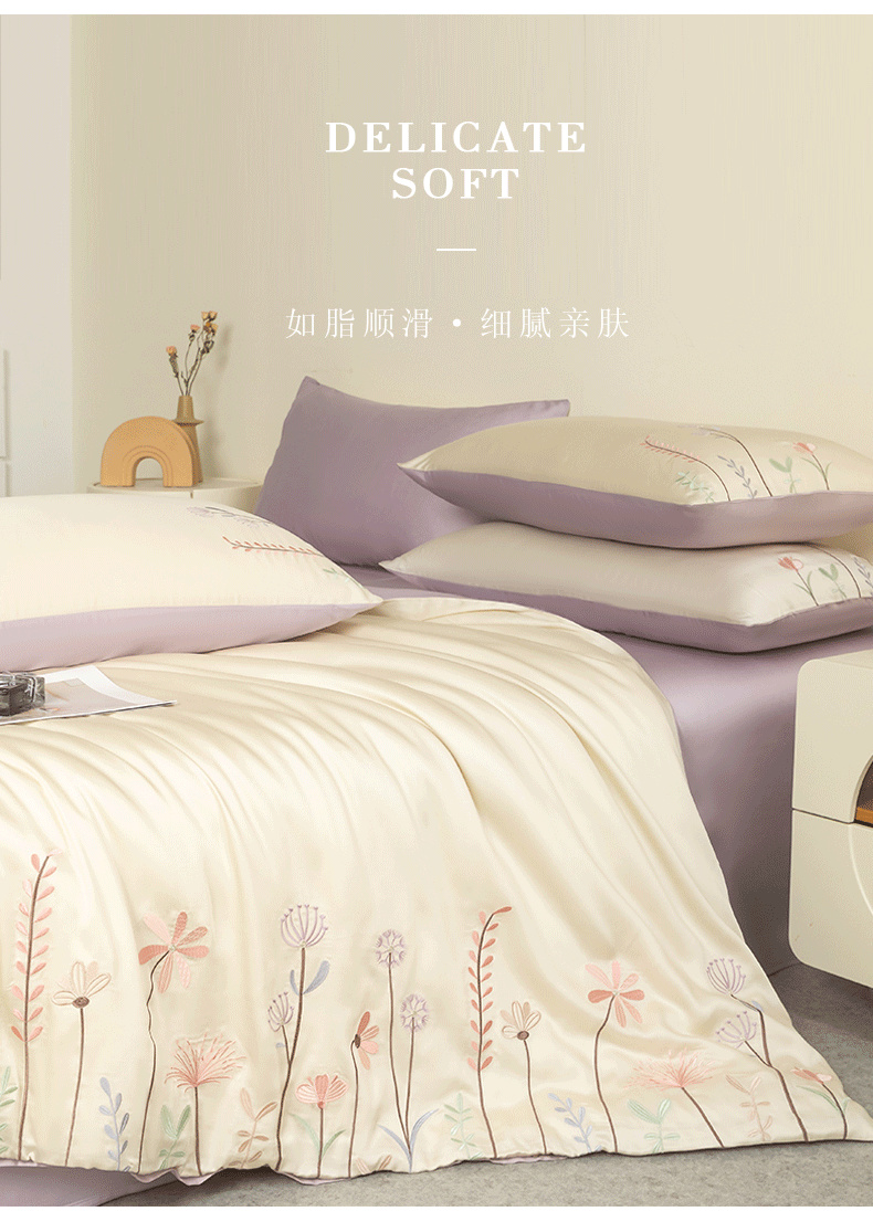 当前位置: 91家纺网 > 商品网购 > 床品套件 > 四件套 > 莱赛尔四件套 > (总)618家纺 2025新款60S100支进口兰精天丝四件套-初夏