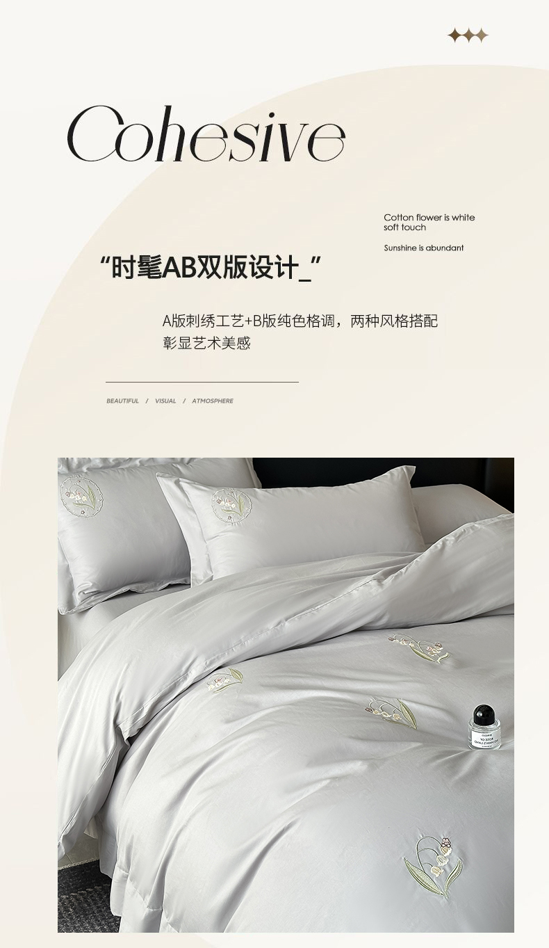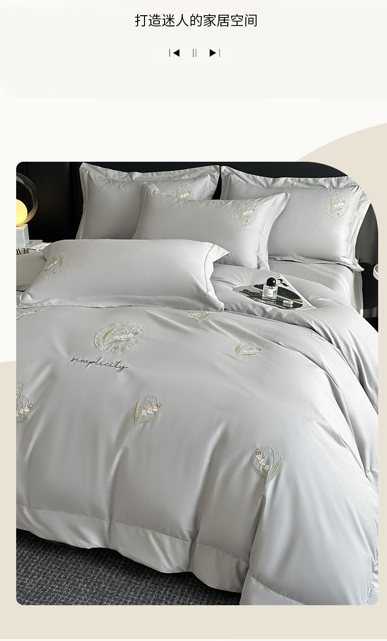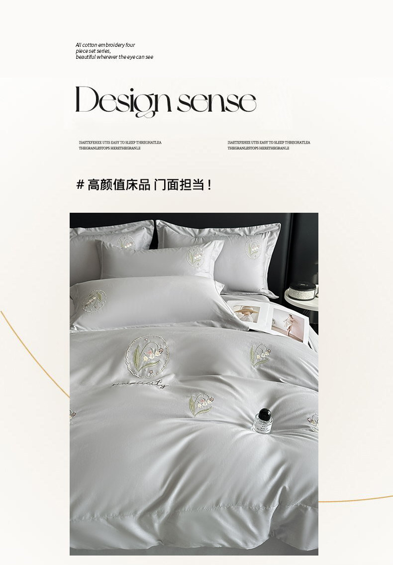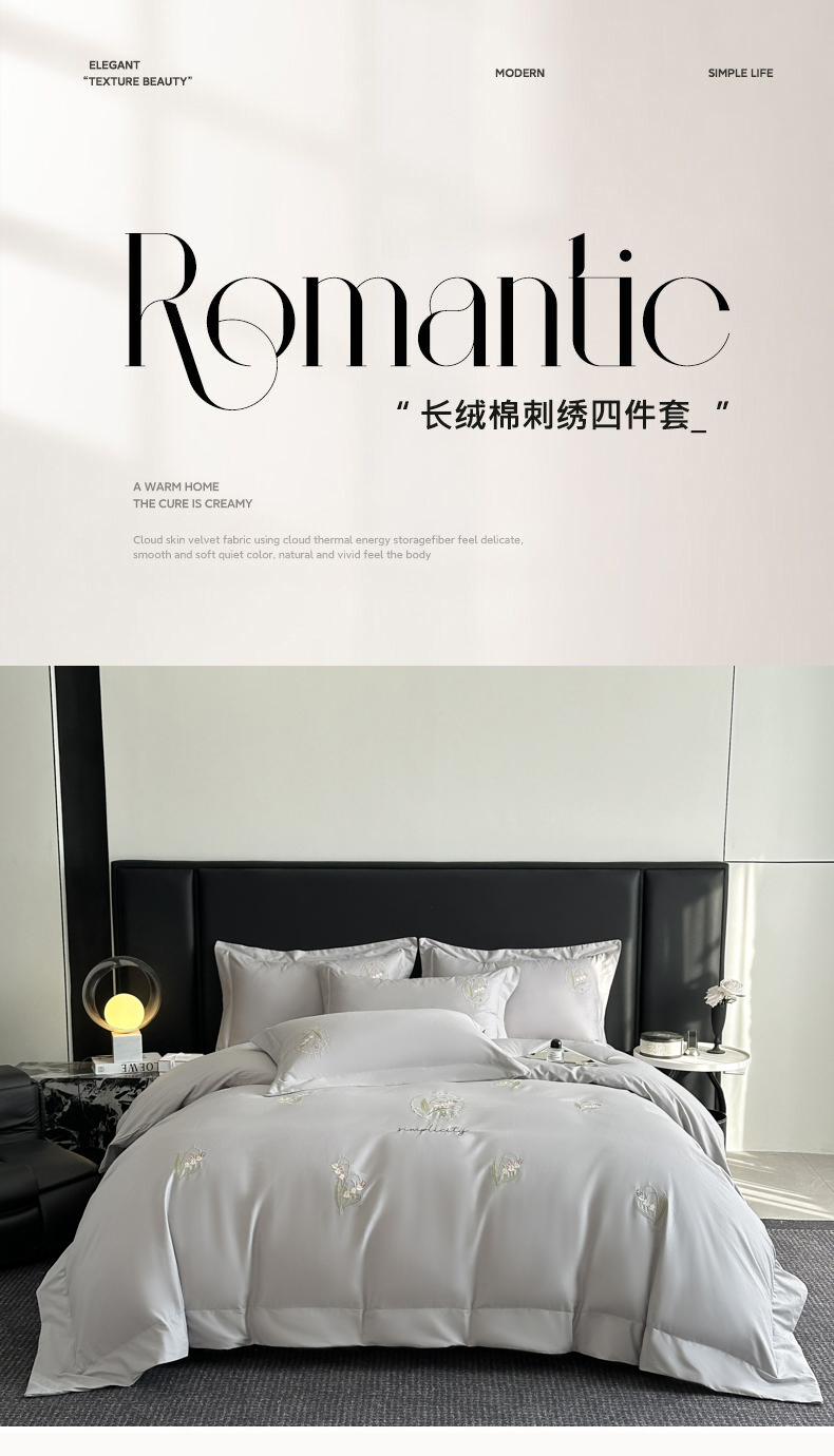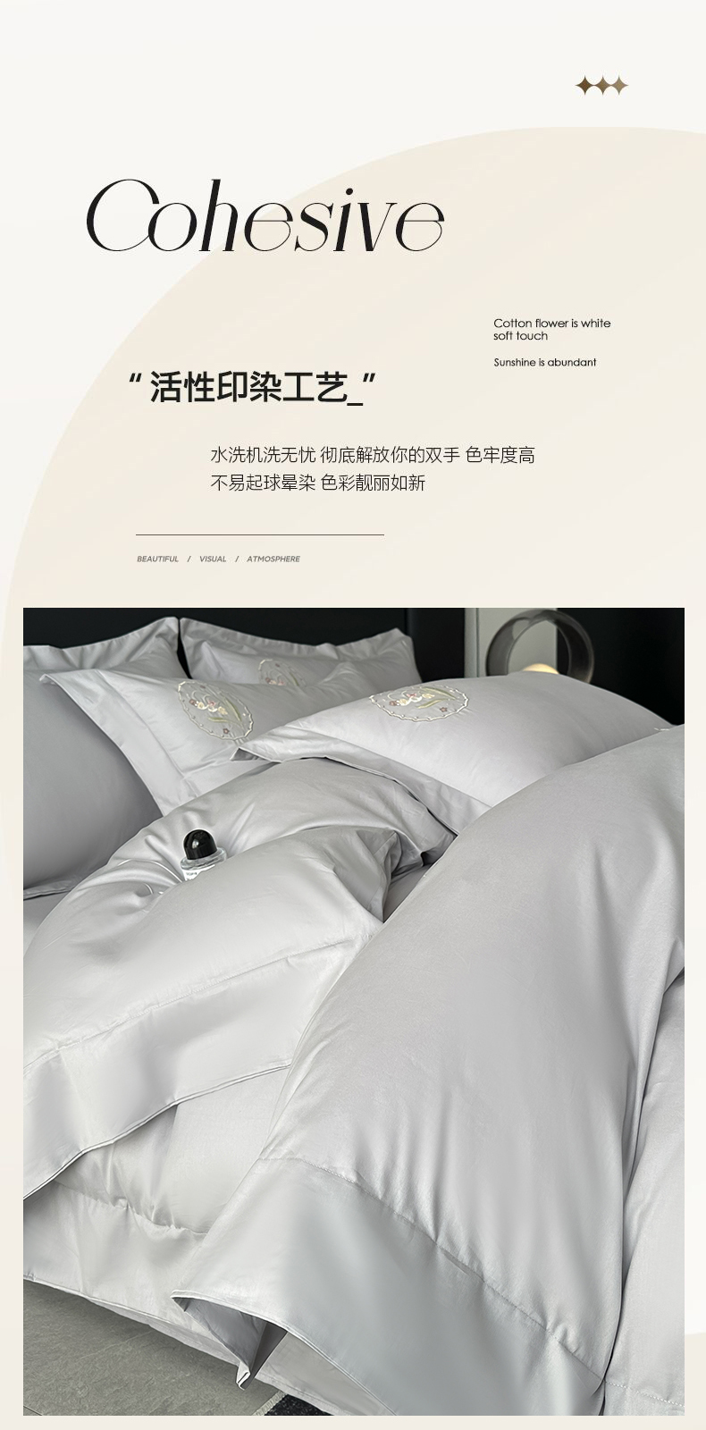 (总)【控价】新方向 2025新款刺绣全棉100s贡缎长绒棉四件套-往事,往事-爵士灰,往事-香槟