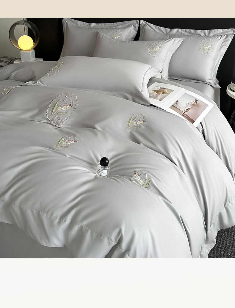 商品名称:(总)(控价)2025新款 专版花型 高克重A类 全棉长绒棉满屏重工刺绣四件套-铃兰物语