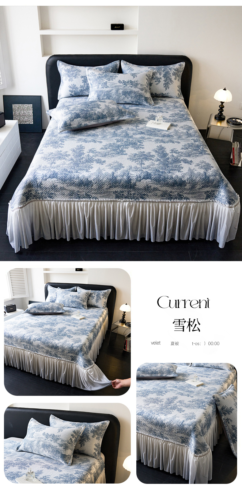 商品名称:2025新款5D提花全凉感中分子凉席 冰感床裙款凉席三件套-提花系列 雪松